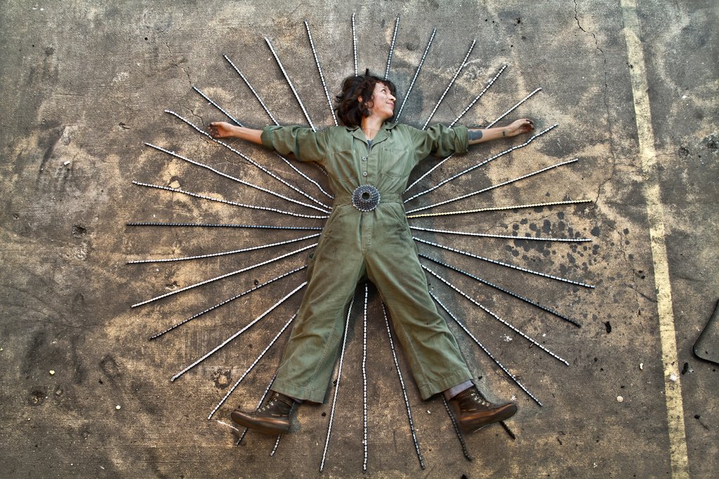 She rummages for bike rims in junkyards and buys up used chains and gears from 50-plus LA bike shops eager for her to take the obsolete metal off of their hands.