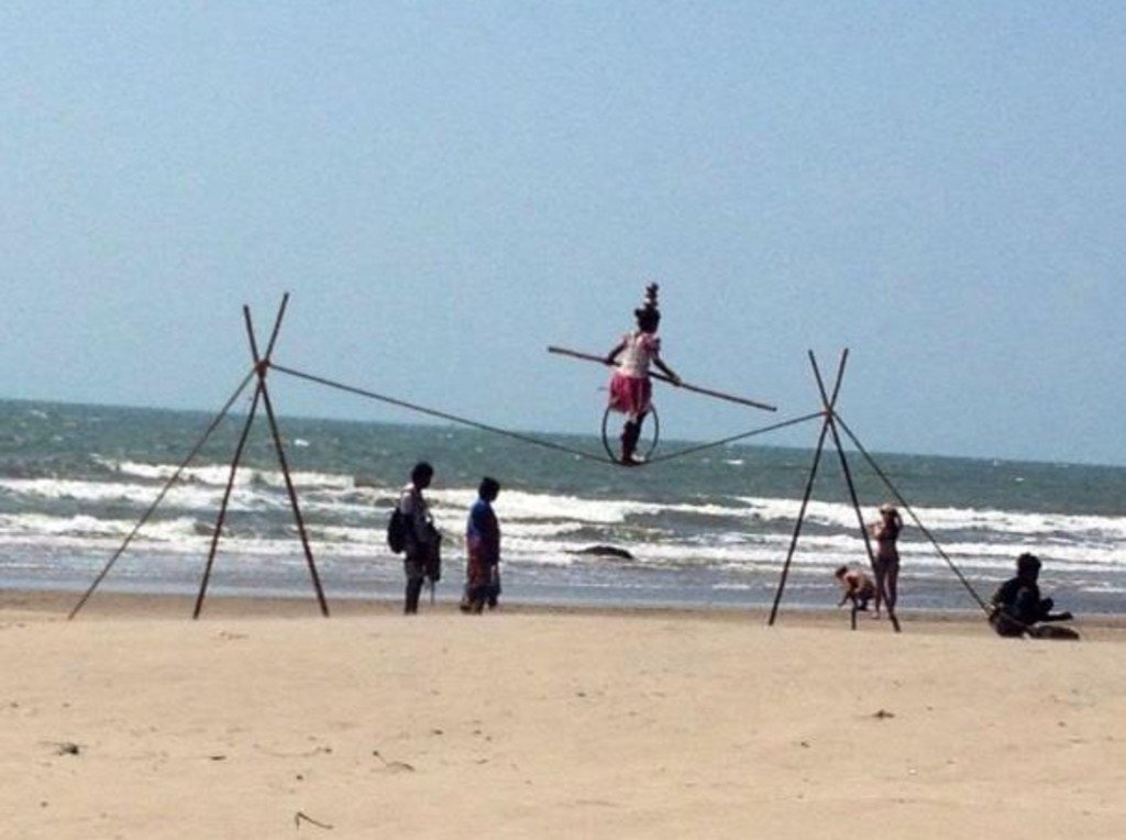 The walk to the beach requires skillfully navigating a miniature maze through brightly colored Indian homes with low roofs, ducking under lines of hanging laundry and smiling hello to several naked brown babies and leathery, shriveled old grandmas sitting on stoops. Feeling like an intruder of sorts, traipsing half naked through narrow alleyways that lead (to the beach) through private homes, no one seems to mind. People smile and wave and give you the ambiguous Indian head waggle, but no one is put out or offended by your presence in their space. Once you complete level one of the get-to-the-beach labyrinth, you must cross the trash strewn ankle deep, boiling hot mashed potato sand stage of the beach. Only weeks ago, the Indian government came in and aggressively bulldozed down tons of bamboo beach huts that weren’t compliant with “zoning permits” (“paying off the cops”). This makes for a landscape littered with debris and tarps and crap that were formerly guest houses. Quite an eyesore, but otherwise a pleasant coconut grove. The “path” is vague but you will ultimately reach the sea.
