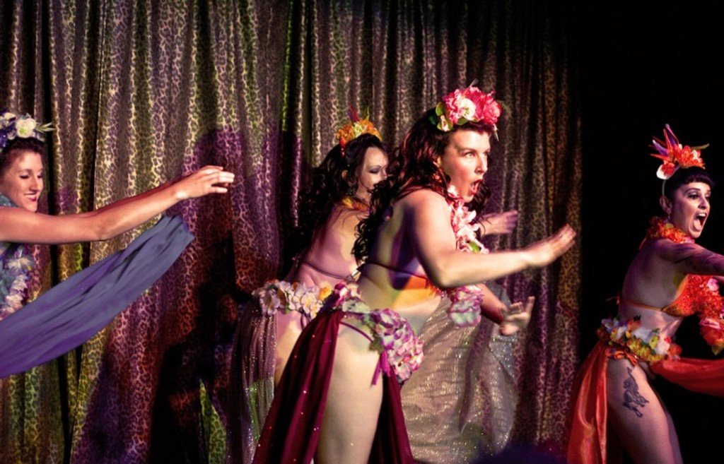 Complete with nostalgic tunes, elaborate costumes, bawdy humor and boobs galore, the show will make you feel as though you’re sitting in a 1950’s burlesque theater. The only thing missing is the cigarette smoke that would have filled the air back then. One thing you wouldn’t have seen back in the day were Cora Vette’s own ‘Hot Rods’, a worthy addition to the show. The sexy boylesque troupe consists of three beautiful young men, who not only know how to take it off in style, but have the dance moves, stage presence, and the right blend of gymnastics to hold anyone’s interest. Of course their smiles and their abs alone could steal your heart. Another 21st century twist is the ‘stage butler’ instead of the ‘stage kitten’ who appears between acts, to retrieve the sequined and feathered costumes and other sparkly bits and carry them off on a silver tray. Ms. Vette is obviously not a stickler for convention, thank goodness.