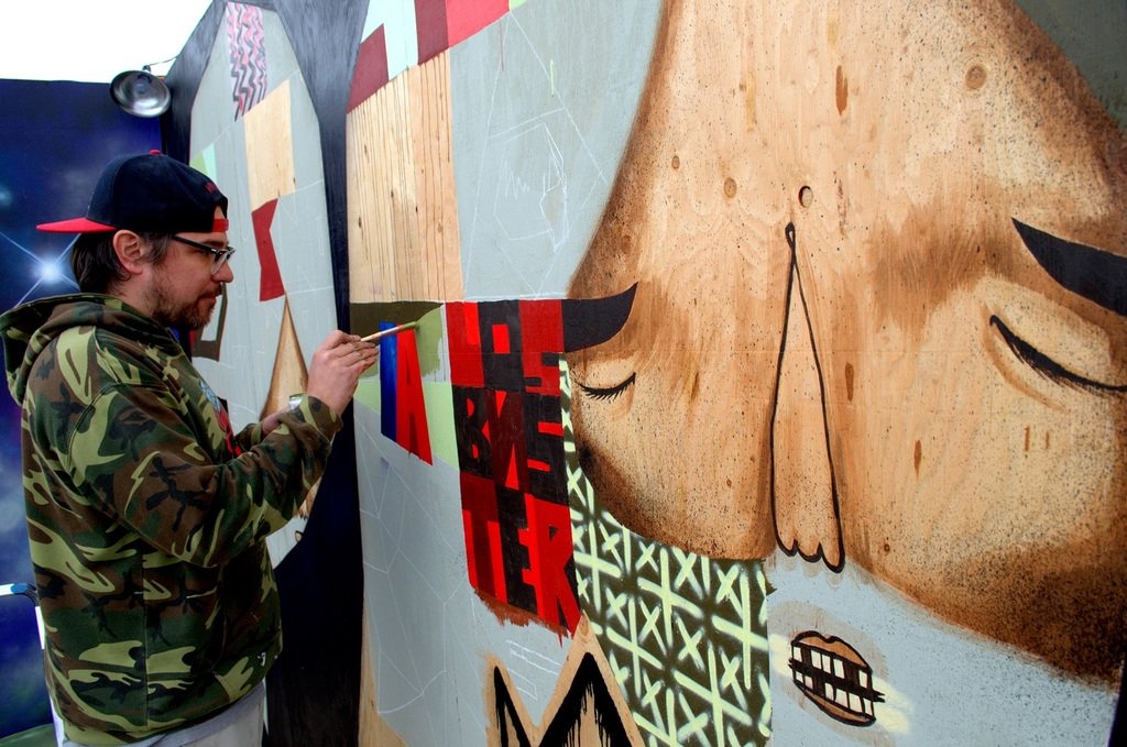 Daniel Chavez, much like the rest of the 22 talented artists, absolutely killed it at Snowball 2014. He is another amazing Denver portraitist who incorporates elements of the surreal. Chavez is known for blending the lines between what is real and what is fantasy. There were many festival passers-by who were tripping out (hopefully not literally) to the surrealist and fast movement in his portrait. Absolutely killer. Check out Daniel Chavez’s murals in town and on 303 Magazine to get your Denver artist fix.