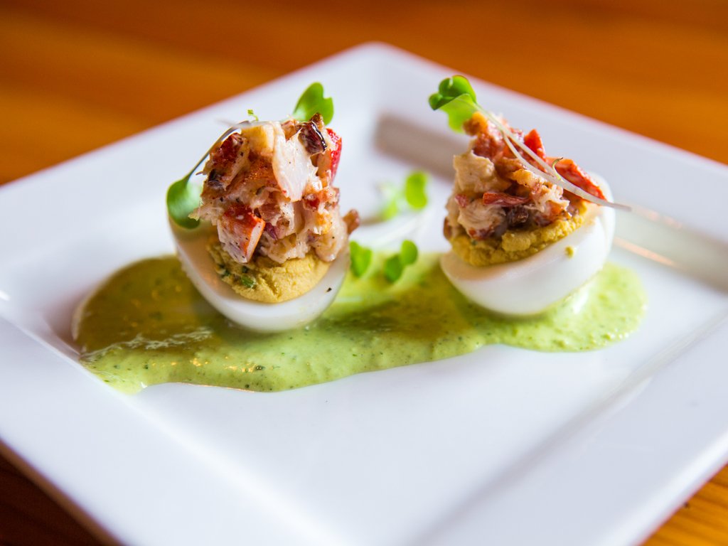 The Pumpkin & Chipotle Bread ($4) with cream cheese frosting and agave butter likewise lift spirits by way of the tastebuds. It is a recommended preamble to Lola’s entrees, as are the Lobster Deviled Eggs ($10). I wrote in a previous article, and have now discovered to be universally true, that an added meat texture works wonders, to me, on the otherwise unappetizing dish of deviled eggs. At Lola, the appetizer combines crispy bacon, serrano aioli and lobster with the hard-boiled egg.
