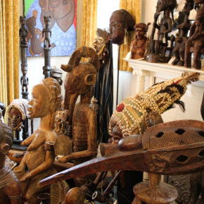 Seeing the collection in person makes for a unique experience, unique because of different discoveries every time you enter a room. Dr. Hamilton has been collecting African Art since the 1960s and increased the activity in the ’80s after meeting dealer, collector and appraiser Peter Natan. The more than 900 piece collection fills Hamilton’s Five Points three-story house, filling every nook and surface with Yoruba Ibejis, Toma masks, Nkisis, oracles, books, photos and much more.