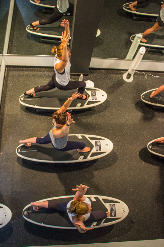 As a native to the mile high who has never stepped foot onto a surfboard, I can attest to the unique challenges posed to this workout. But Plum instructed us with patience and encouragement. Just like learning to snowboard in the mountains, the first time I tried to stand up on the board, I nearly fell on my face, but after a few tries and modifications, I was able to get the hang of it. I left feeling thoroughly sweaty and accomplished.