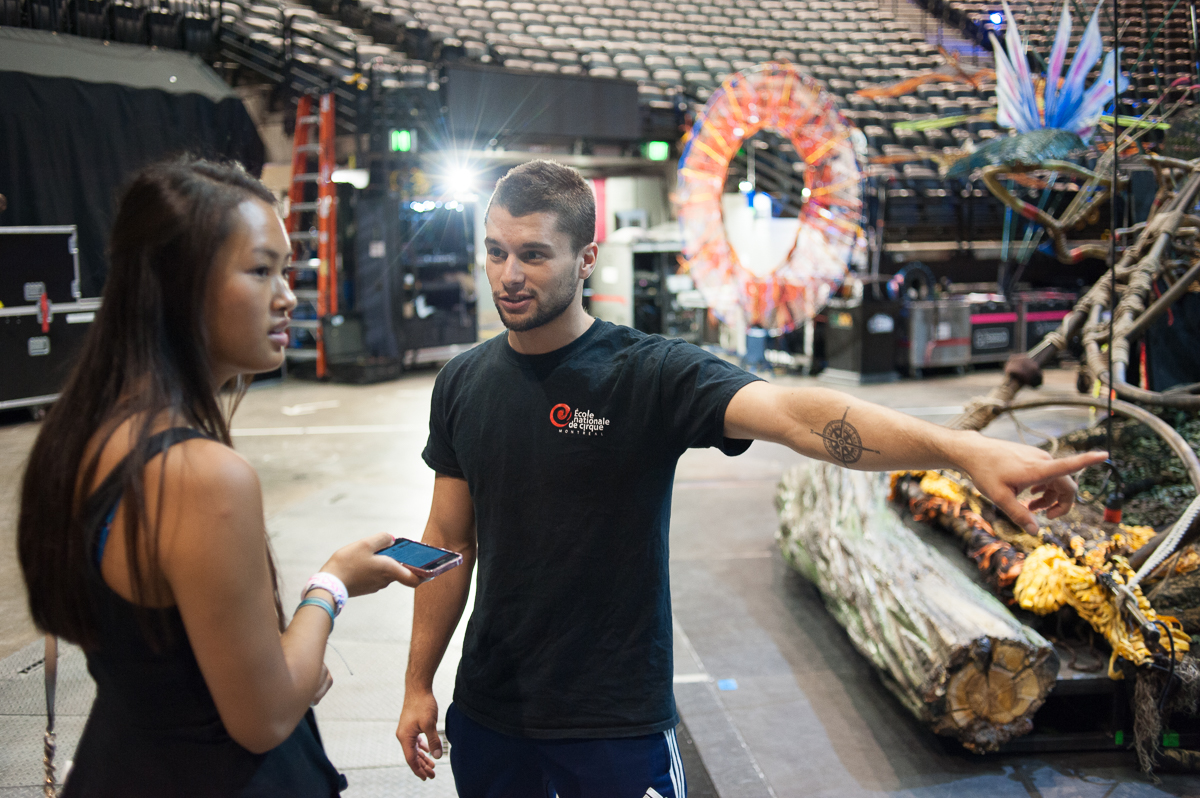 “I workout every day to keep in shape. Musculation, flexibility and my speciality is rope but it’s a rope with a loop, it’s my speciality act I do in the show. It’s a lot of cardio for this show, the Na’vi they run a lot but for this huge stage we need a lot of cardio to be strong. Here in Denver because the air is different, we needed to come one day earlier to just train before so we don’t go on stage and become really exhausted.” said Paquin.