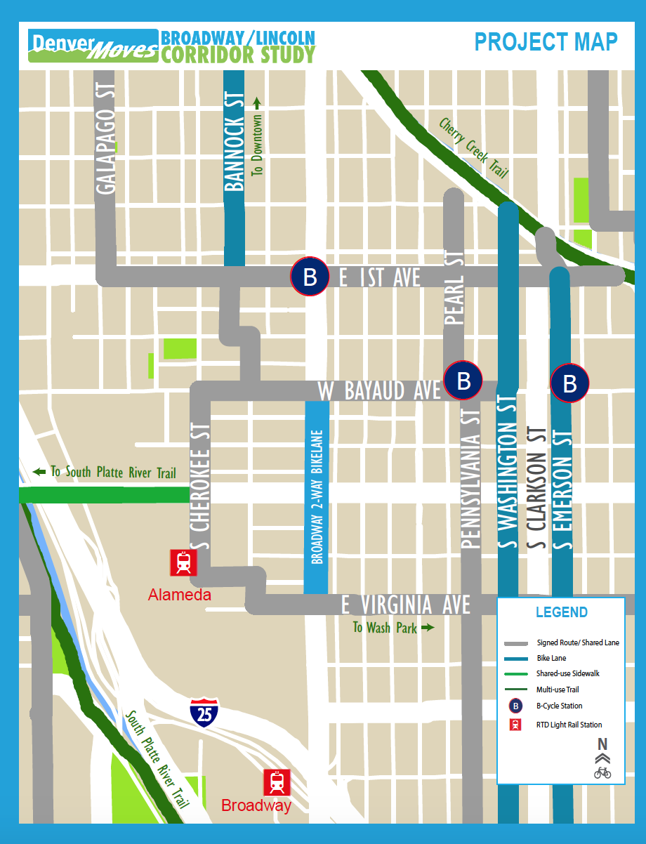 “We hosted two public workshops to understand community interests and visions for the Broadway-Lincoln corridor and through this community-driven process, we arrived at the bikeway design that we are going to study,” said Nancy Kuhn, communications director for Denver Public Works.