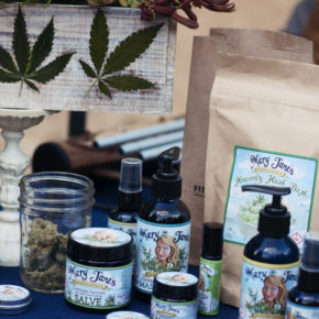 Our first pit stop was at Headquarters Cannabis Company in Longmont to pick up our “goodie bags.” Because of Colorado’s ban on public consumption, Mason Jar requires guests to buy pairings offsite at a licensed facility, and to further comply with state and local laws, none of the food is cannabis-infused. In addition to our pairings — two strains of bud and a 10 mg serving of BlueKudu’s Alpine Glacier mint-flavored chocolate edible — the bag contained designer-quality paraphernalia and products from companies like Mary Jane’s Medicinals, purveyors of Lip Bong lip balm and Heavenly Hash Bath, a bath product whose side effects include “tingling, mild euphoria, and a renewed sense that world peace is possible.”