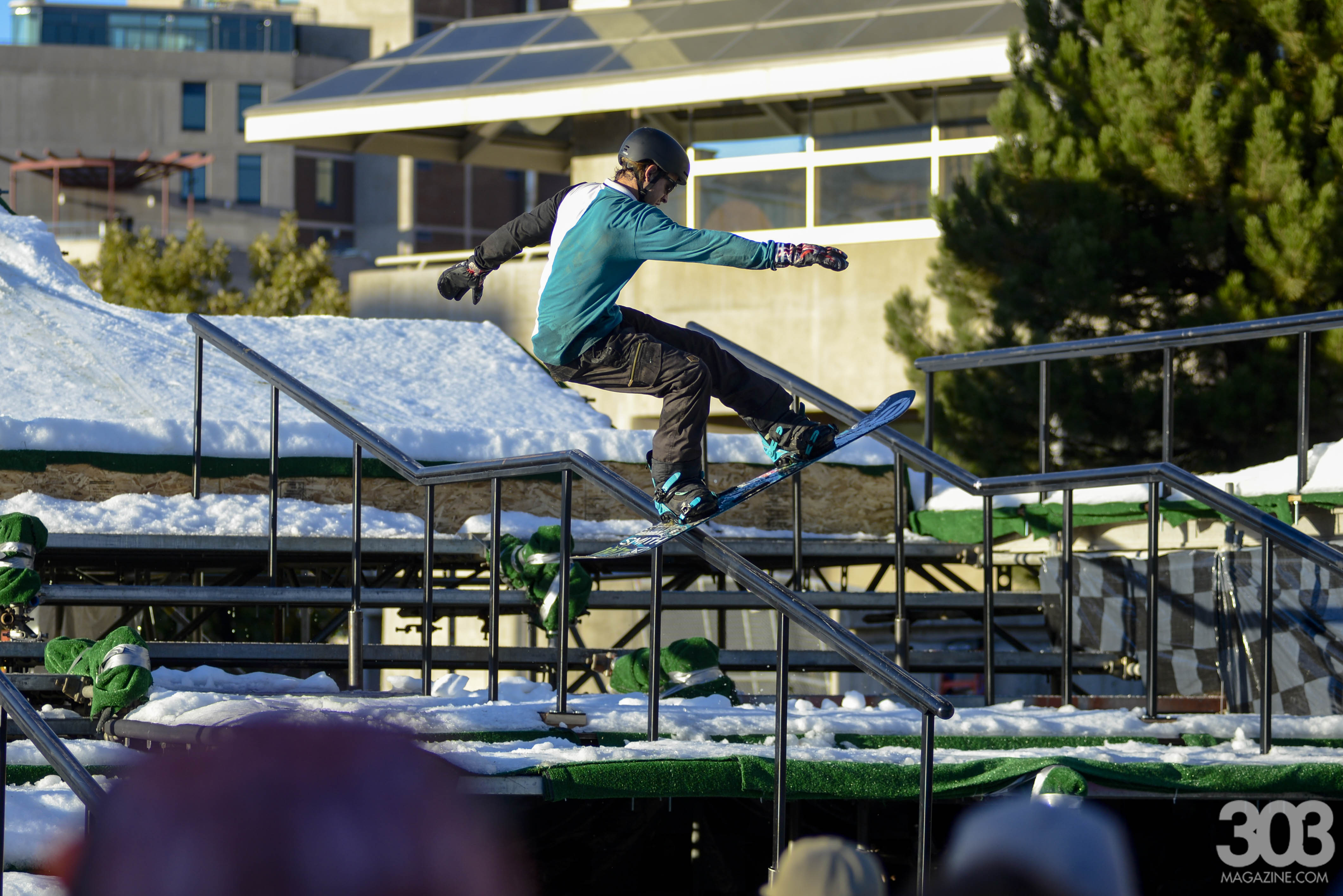 Twelve professional snowboarders took flight for an hour from 5–6 p.m. to compete in the Pro Rail Jam 2016. Defending local champ Dylan Alito was not able to hold his title this year– finishing behind Jesse Paul of Utah who took home the trophy with a clean bluntslide 270 degree out on the kink rail. Alito put up a fight and gave it his all in the last five minutes–taking a fall after attempting a back lipslide–twisting his arm and losing his glasses.