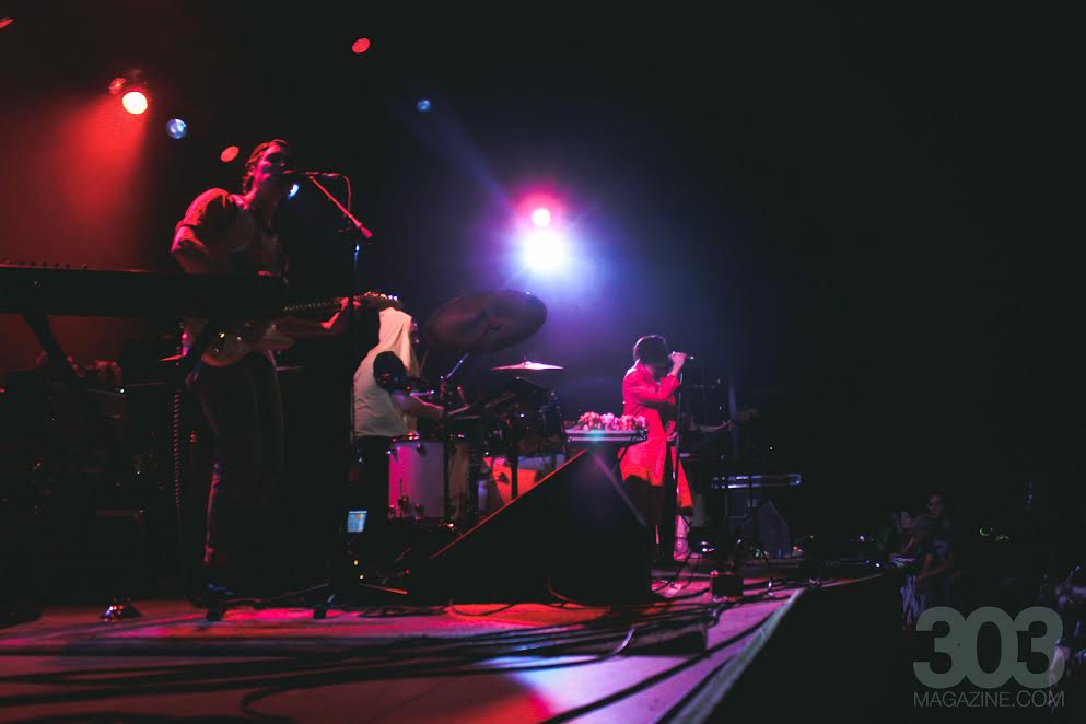 Super-opener Chain Gang of 1974 promoted themselves as being from Denver, the lead singer at one point boasted, “I lived here for 12 years…I started this band here.” The band was not wearing matching old school prison costumes, which seemed like a missed opportunity, but that did not prevent cohesiveness in their sound. All the band members seemed to be enjoying themselves, especially lead singer Kamtin Mohager. Mohager danced like a man possessed and pulled the mic in aggressively to sing in a smoky and smooth voice then thrashed about wildly, leaving himself out of breath in between songs. There was something difficult to diagnose about Chain Gang’s music, they had all the working pieces of an enjoyable listening experience but at the same time, there was something missing. The band felt a bit prepackaged, inherently good as an opener but without that fresh sound that puts you center stage in your own tour.