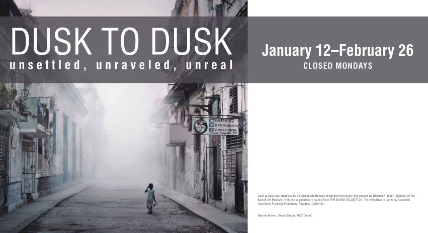 The Lowdown: Dusk to Dusk focuses on the artistic representation of “examining individual isolation, political repression and collective ennui in the decline of the industrial age.” Through painting, photography, sculpture and video, this one-of-a-kind exhibit explores the ever-changing and ever-evolving concept of “contemporary familiarity with collective darkness.” It features the work of artists such as Louise Bourgeois, Marcel Dzama, Tony Cragg, Gilbert & George and Richard Long, among others. This exhibit is made possible by the Samek Art Museum at Bucknell University, curated by Museum Director Richard Rinehart and toured by Curatorial Assistance Traveling Exhibitions from Pasadena, California. Come and enjoy this introspective and extrospective art that deals with and unveils the ideals of returning to the land, spiritual transcendence and the shared affection for a new hybrid of our alienated selves.
