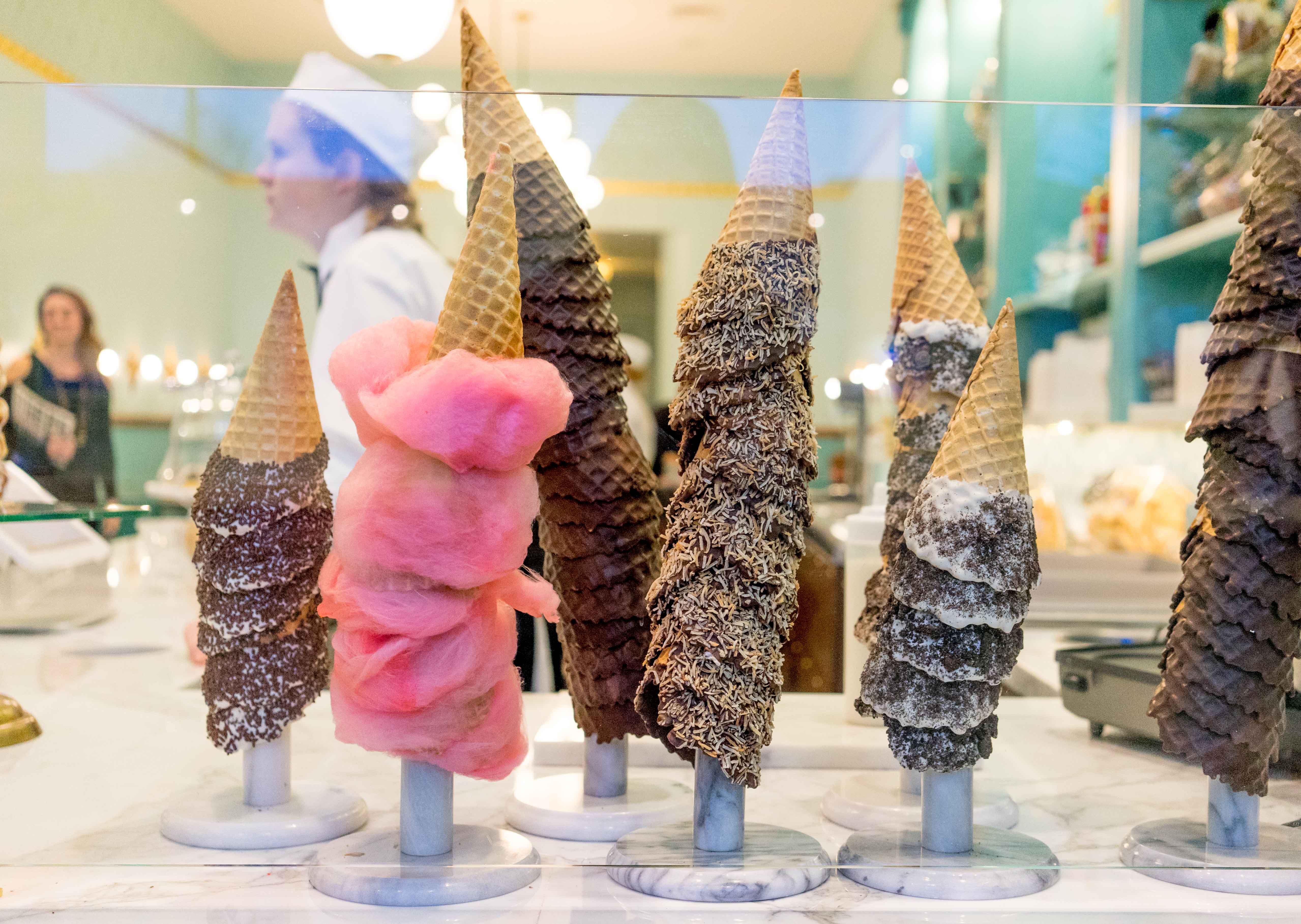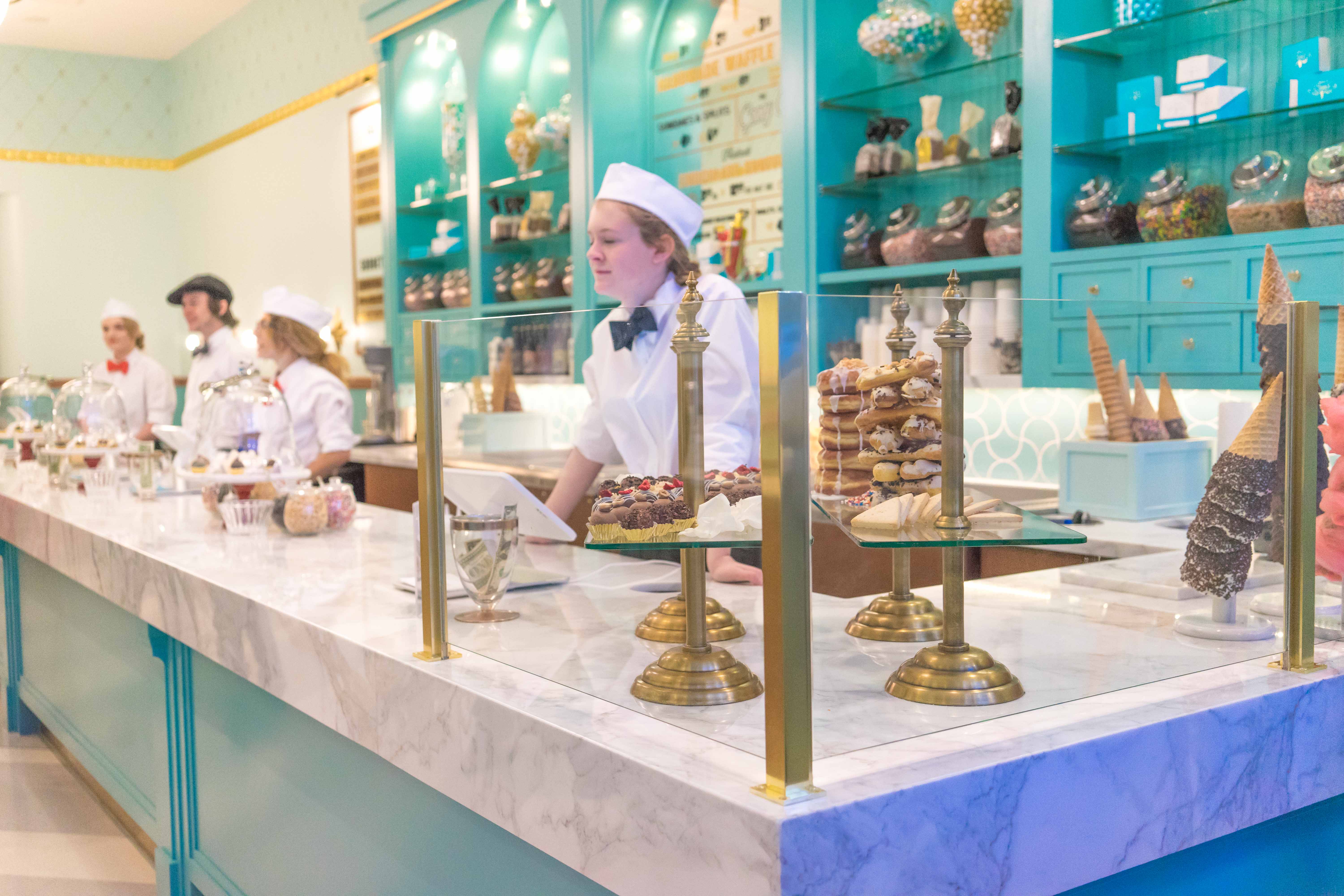 Among the flavors of these silver-lined scoops are its famous salted oreo, as well as eight (sometimes 10) new flavors just for this location. Sorbets and sherbets made with fresh squeezed juices are the highlight of the new menu along with handmade chocolates, freshly baked brioches and eclairs. There’s even a new offering that combines its ice cream with a brioche bun for a toasted ice cream sandwich called the Gooey Cooie ($5).