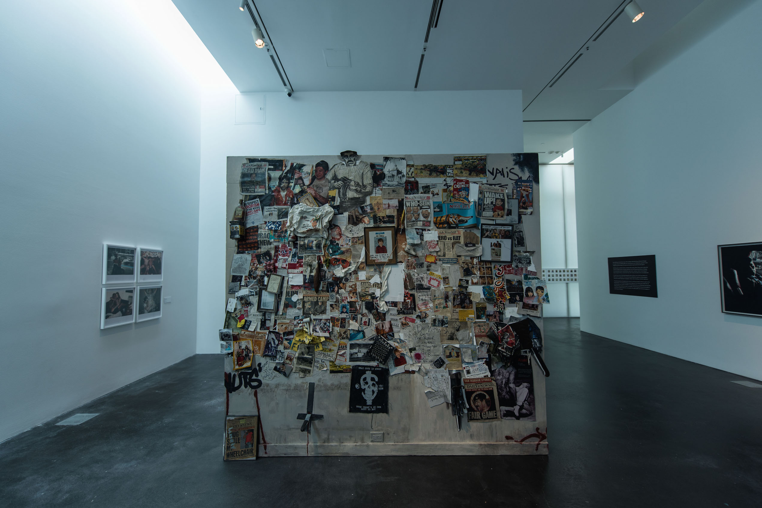 Two of his closest friends and the subjects of many of McGinley’s photos are Dash Snow and Dan Colen, who have been featured at the end of the exhibit with a few pieces of their own. The freestanding wall in the final room is a replica of an actual wall that existed in one of their apartments. If you take a moment to look at the headlines for some of the newspaper clippings, it will probably surprise you how apropos they still are—that the complaints and critiques from these degenerates still persist today (even if the degenerates themselves don’t).