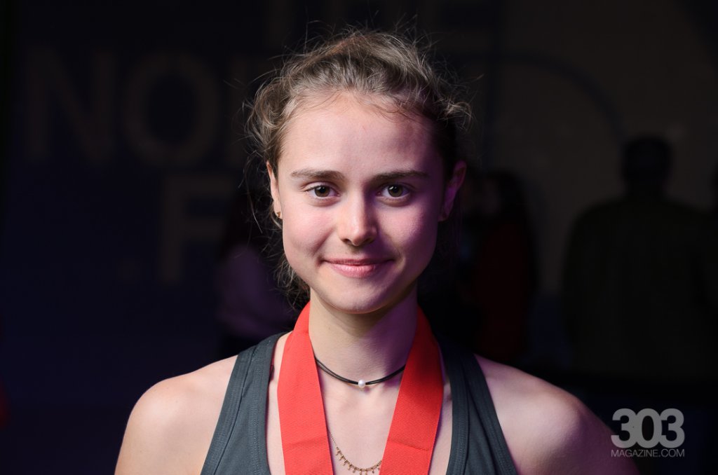 A Boulder native, Margo Hayes is Colorado’s climbing sweetheart, but don’t be fooled — this young lady is a beast. In February, at only 19, she climbed a 131-foot line up the El Pati wall in Siurana, Spain — making her the first woman ever to climb a 5.15a route. As last year’s National Sport Climbing Champion, Hayes took second place this year. But she earned thundering applause as the audience held their breath when she became the first competitor in the finals competition to top the female route.