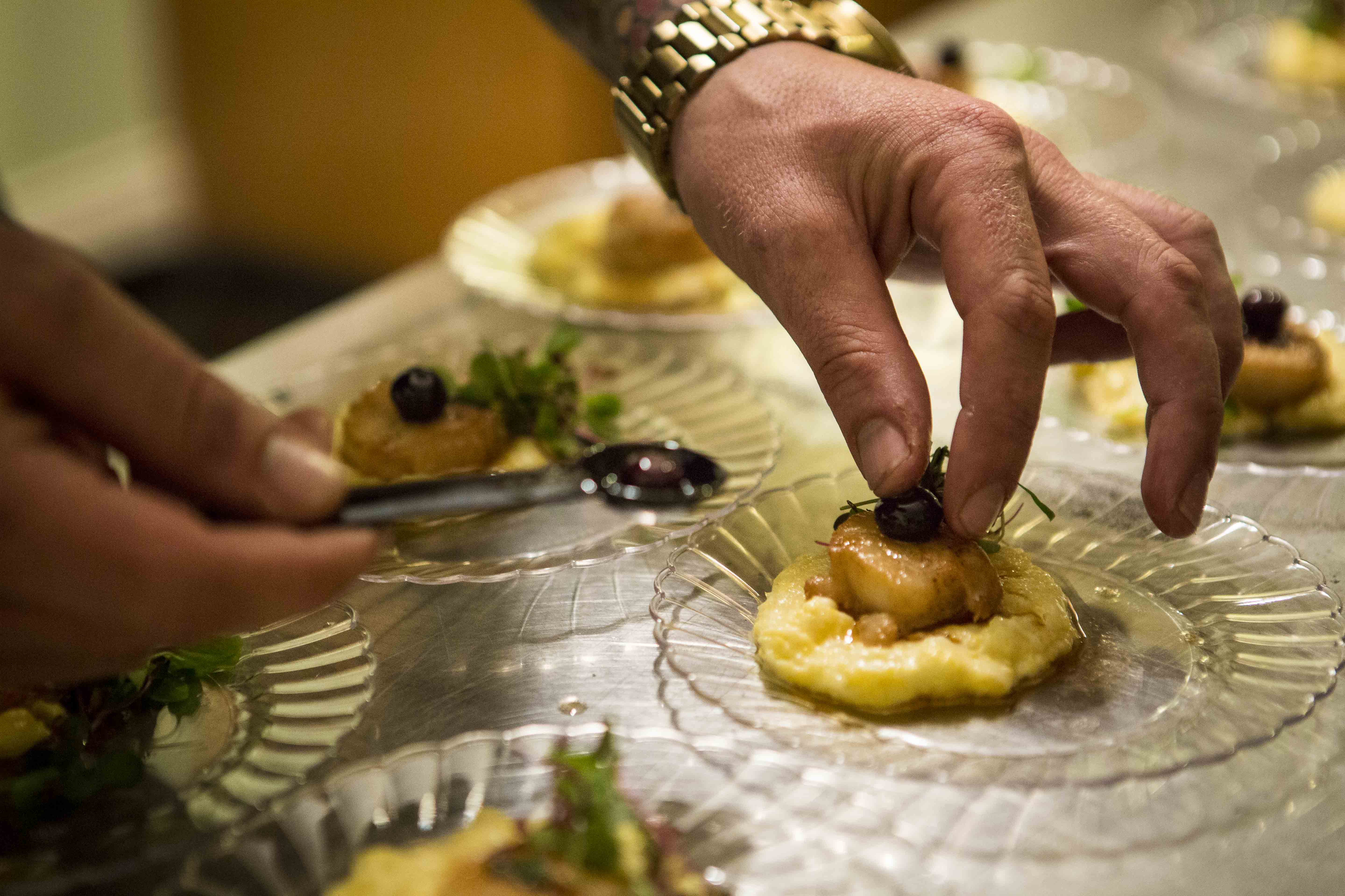 Once inside the designated space, a hosted bar and bartender met us with a featured cocktail for the evening. In this case, it was a muddled Bulleit old fashioned. We sipped as legalities are taken care of, with a quick signature acknowledging we are aware that we will be ingesting marijuana throughout the evening in various infused foods, sauces and toppings.