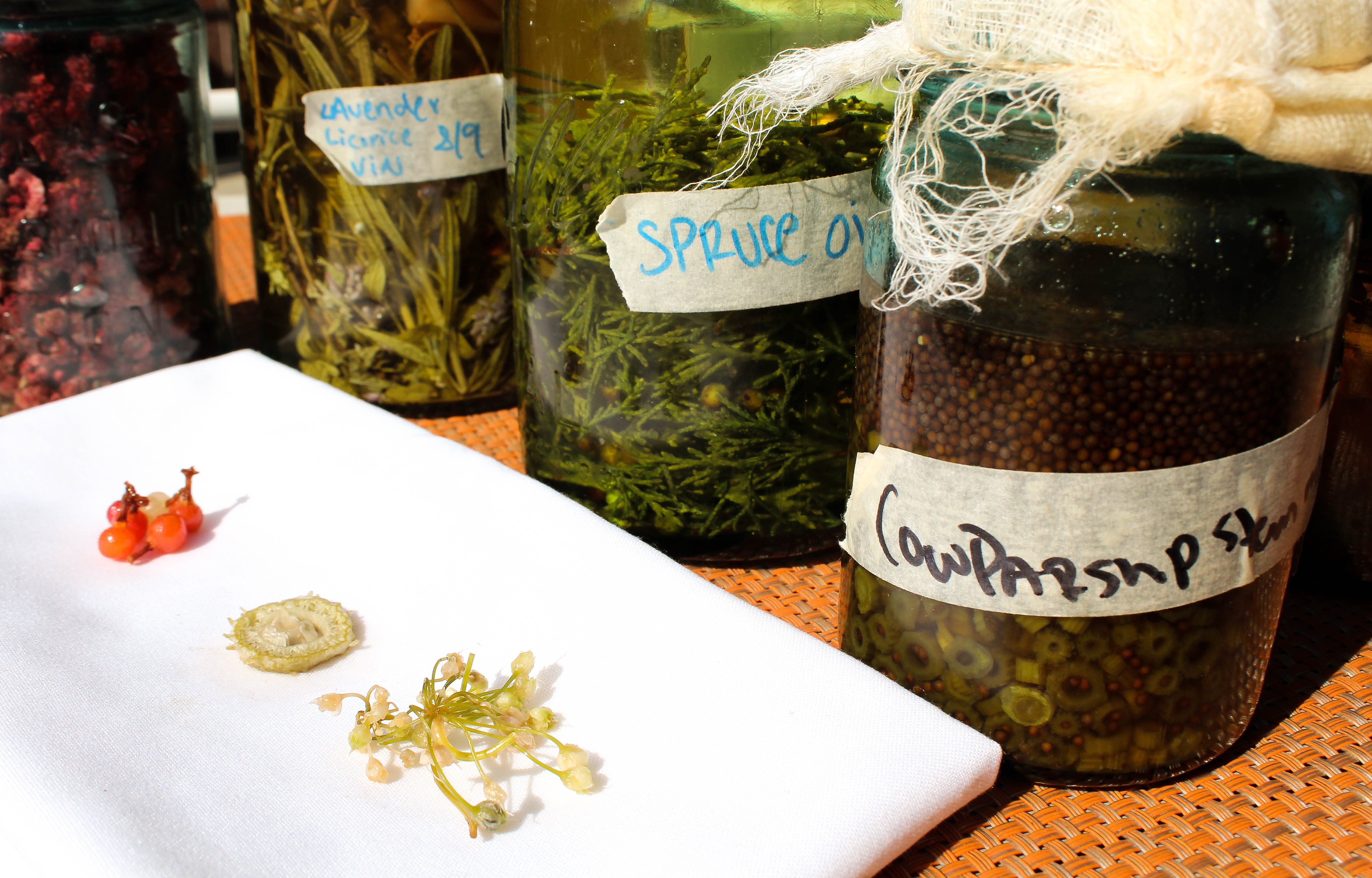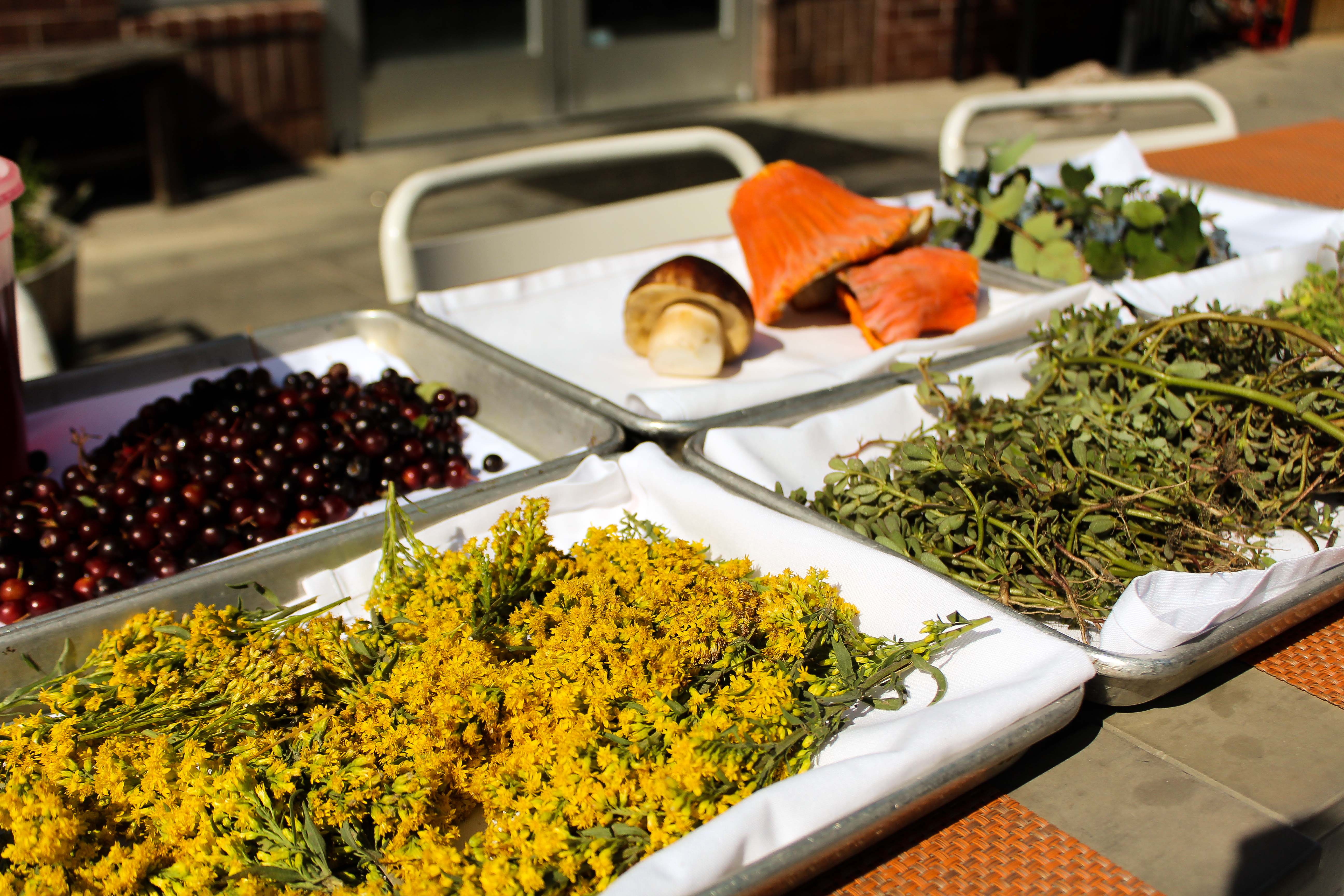 The staff makes routine visits to the hills to forage more than a dozen ingredients right out of the wilderness — including herbs, weeds and mushrooms. Golden rod, choke cherry, perslaine, wood sorrel, milkweed bud and nodding onion tops are just a few ready and available edible plants foraged from around the Denver and great plains area. Each of these greens offers a flavor profile unique to our city. The kitchen currently has porcini and lobster mushrooms on the menu — these high-altitude, Front Range mushrooms are umami to the maximum and truly something special to stumble upon in the wild. These local ingredients are used in a multitude of applications on the menu including pickling juices, sauces, gelees, wines, dehydrated and as raw colorful garnishes.