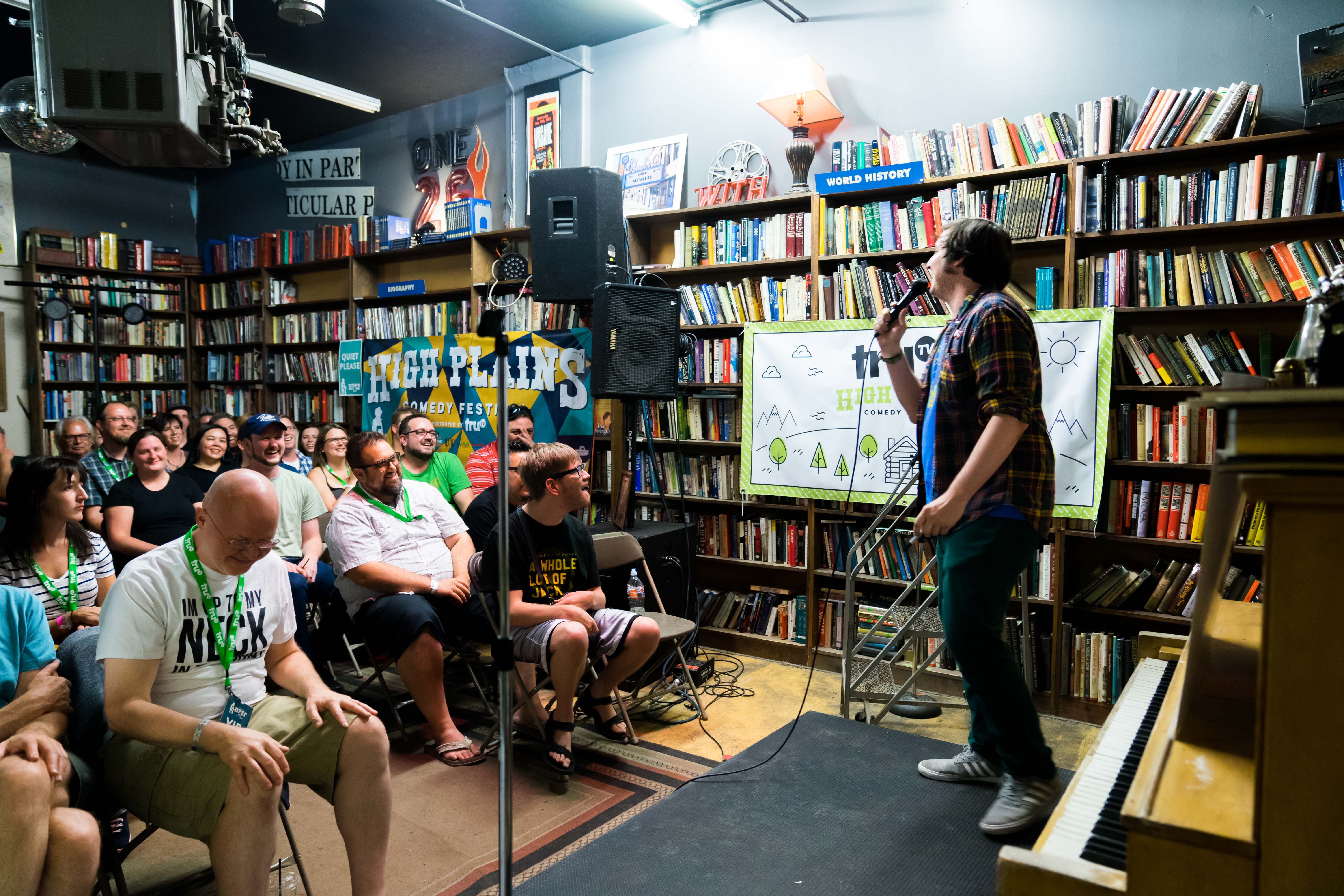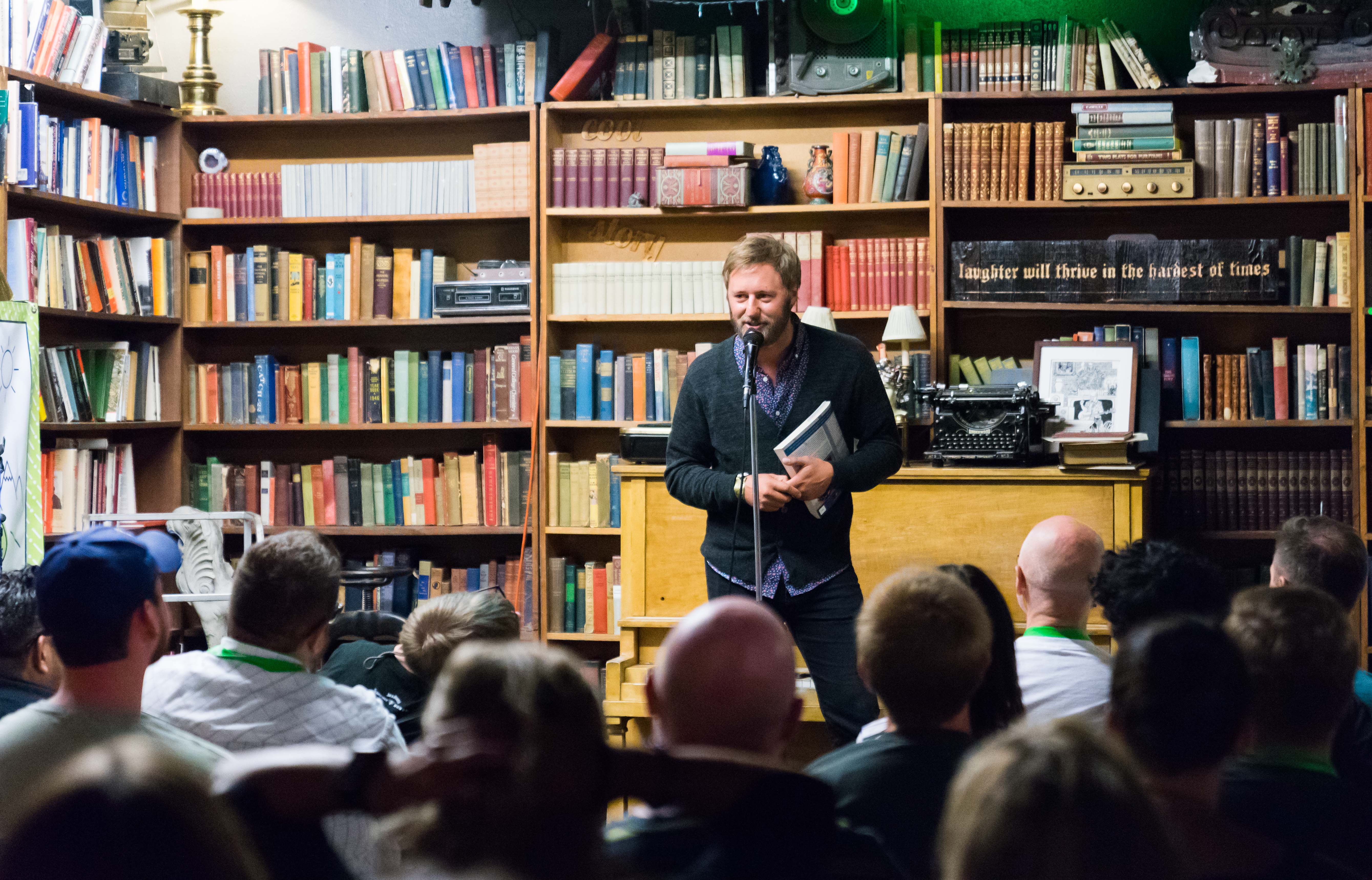 Mutiny Information Café might have been a small venue, but audience members still squeezed inside the record and bookstore. For surprise party, people lined up through the bookshelves to listen to headlining act Rory Scovel and surprise guest Adam Cayton-Holland of The Grawlix. The crowd also got a kick out of Tyler Jackson of Late Late Breakfast’s giant poster board of joke topics the audience was allowed to select for him to tell (some examples were Hot Topic, La Croix and almond milk). It might have been a little hot inside, but Surprise Party earned its name.