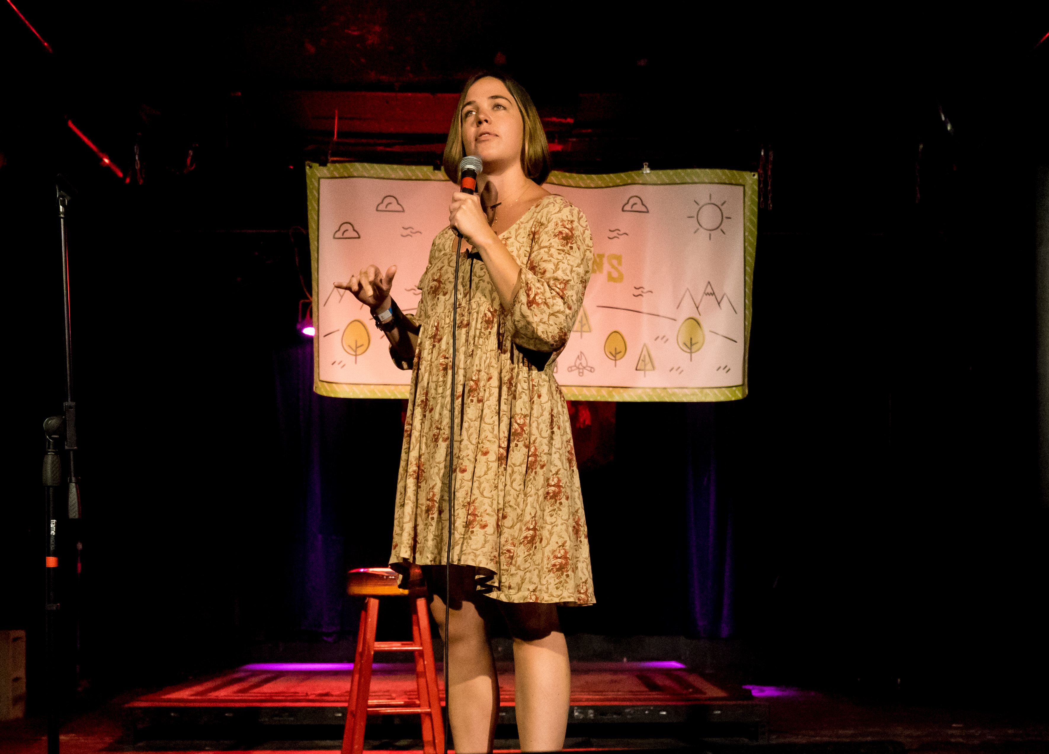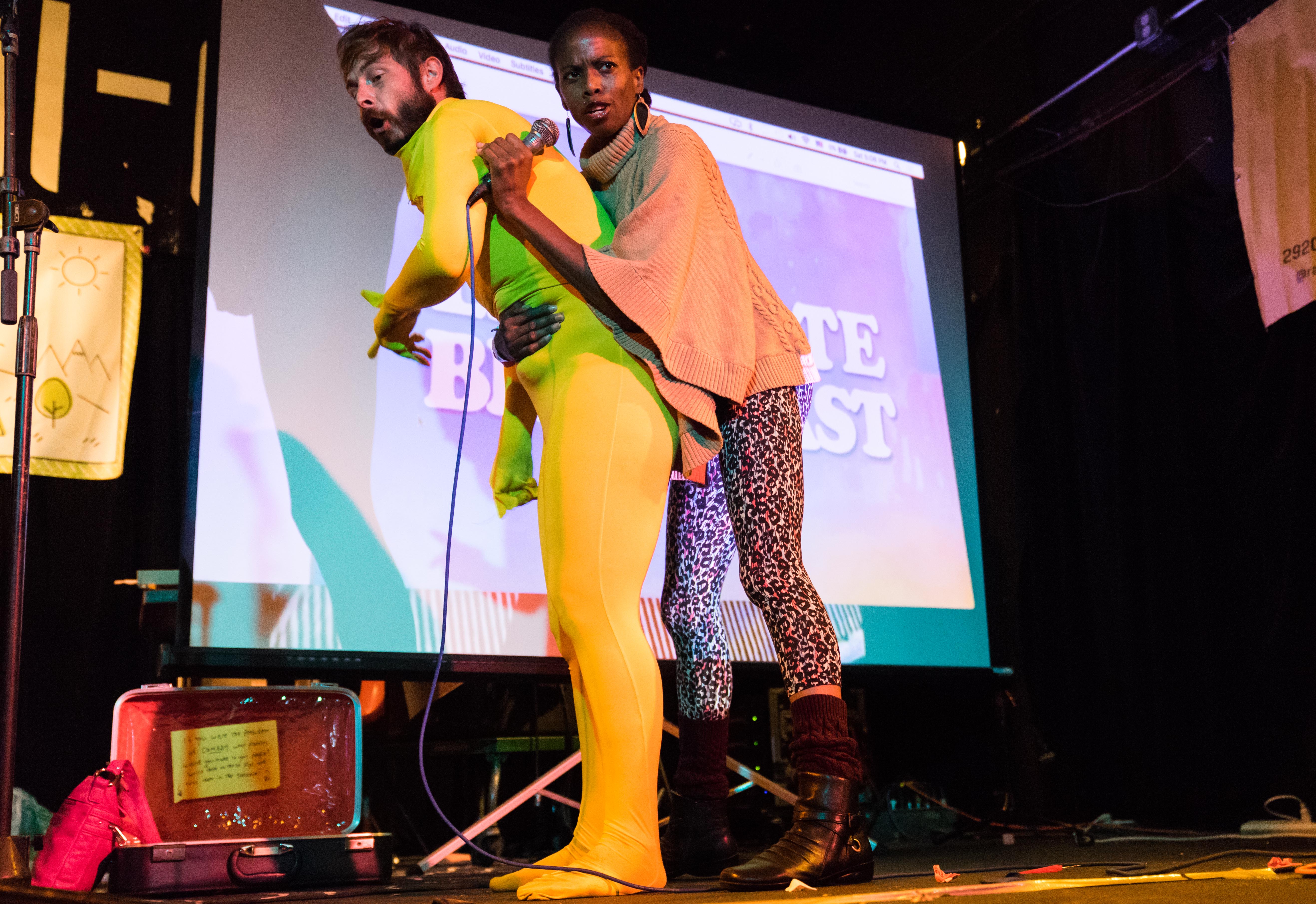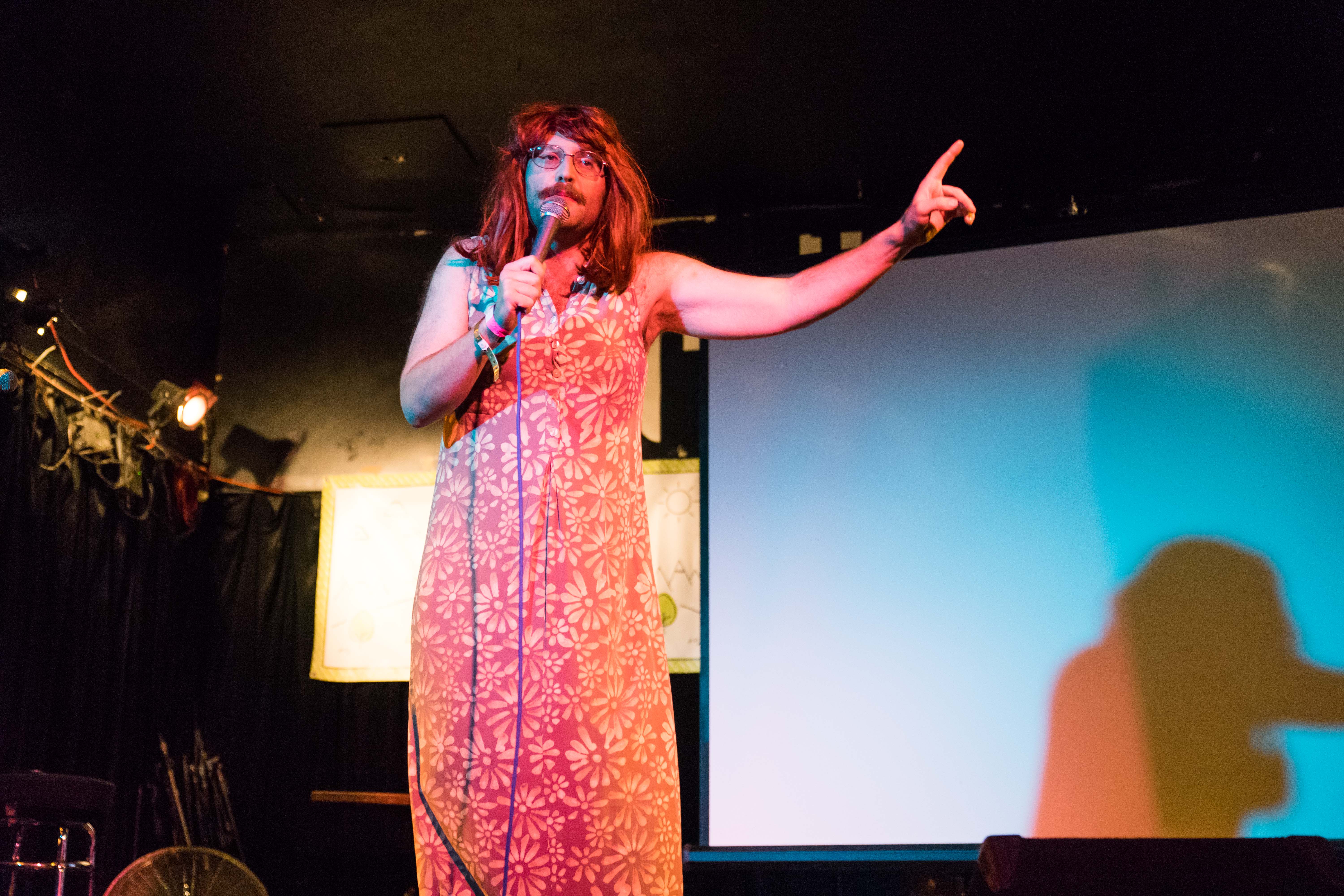 Fans of the sassy Puterbaugh Sisters at their earlier appearance at Arguments & Grievances were in for a treat when this dynamo sister duo hosted their famous stand-up show Entertaining Julia. The Hi-Dive was overpacked with many audience members standing on the sideline to watch a wide range of talent from near and far. This included former Denver comedian Mara Wiles who commented on her recent move to New York City and Comedy Works favorite Alabaster Cain who dressed up in a white suit and brought out a card game of excuses he made called “Trump Cards.” Marcella Arguello was a class act with her hilarious Mariah Carey impression and audience members even got to see Kilgariff of My Favorite Murder make an appearance after her show at Paramount and play her guitar while singing songs about online dating.