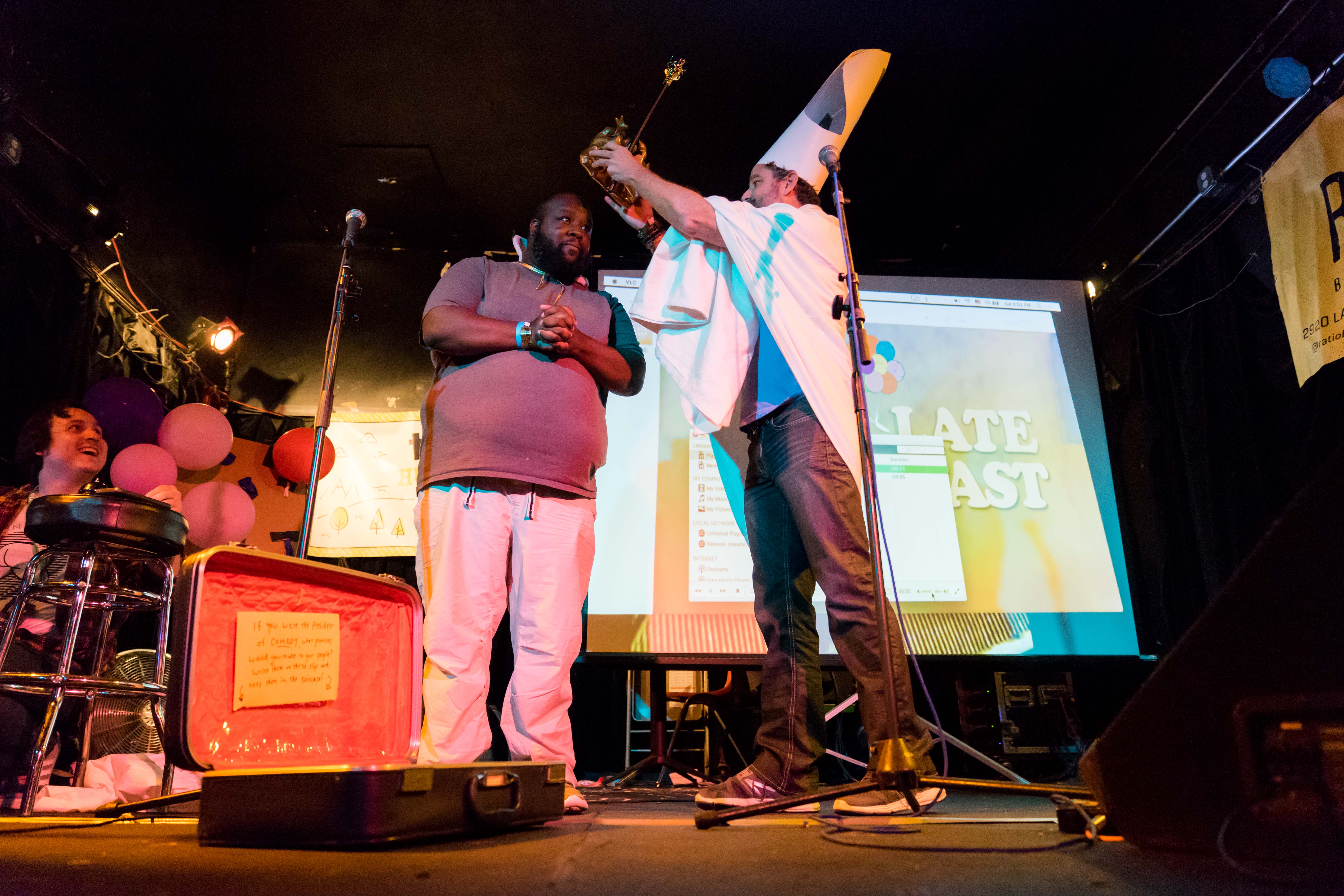 As the very first show of the festival, King’s Cup at 3 Kings Tavern was super low-key and featured local comedians such as Harris Alterman and out-of-towners like Caleb Synan to get the crowd going for the later shows. Featuring stand-up in a natural setting, each performer got to showcase his or her best jokes and do their thing without any themes or distractions. From Langston Kerman’s funny commentary on witnessing white people washing windows in Canada to Todd Glass messing around with the stage lighting and confessing he’s terrified of large moths, King’s Cup got the festival off to an amazing start.