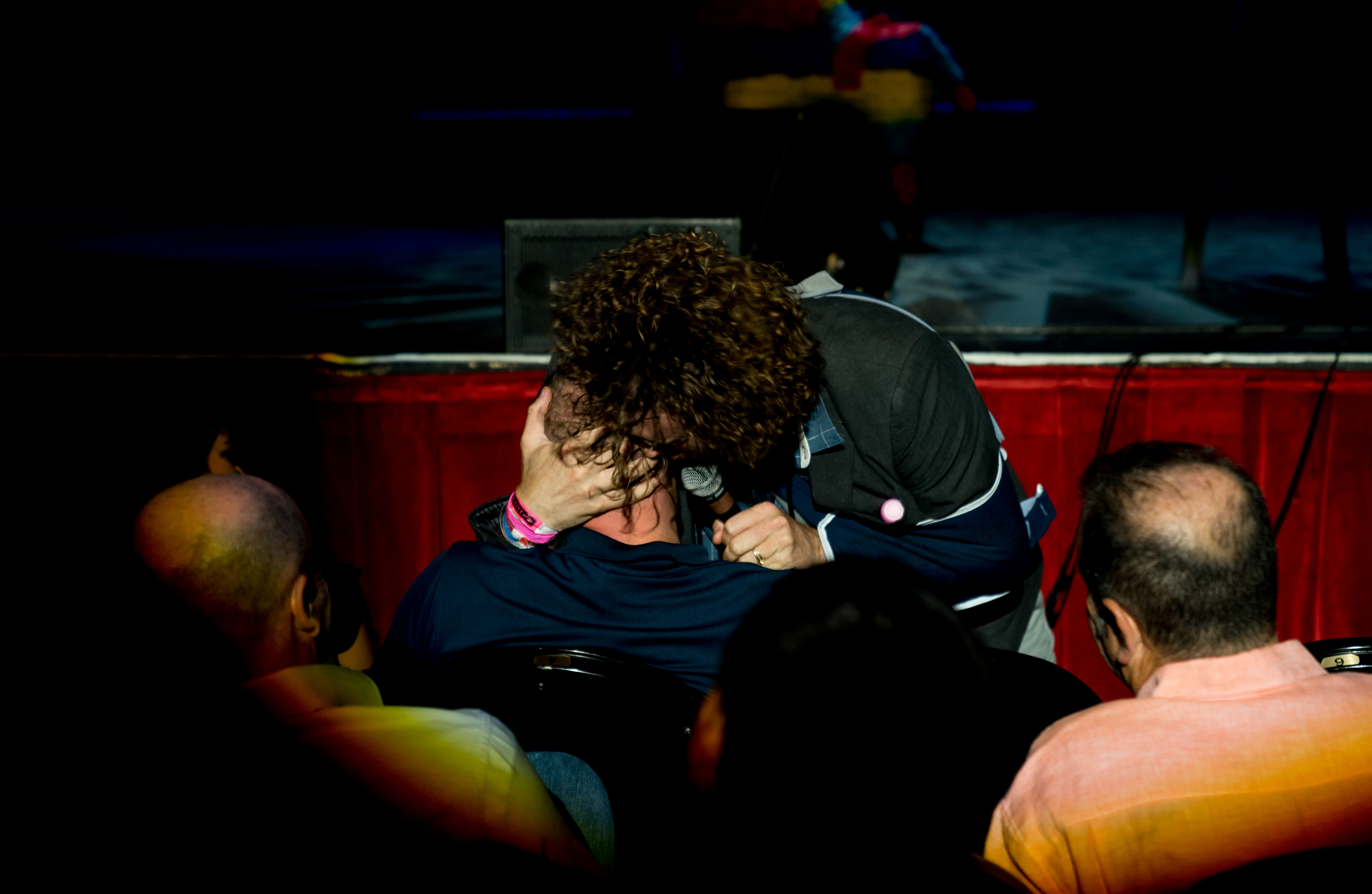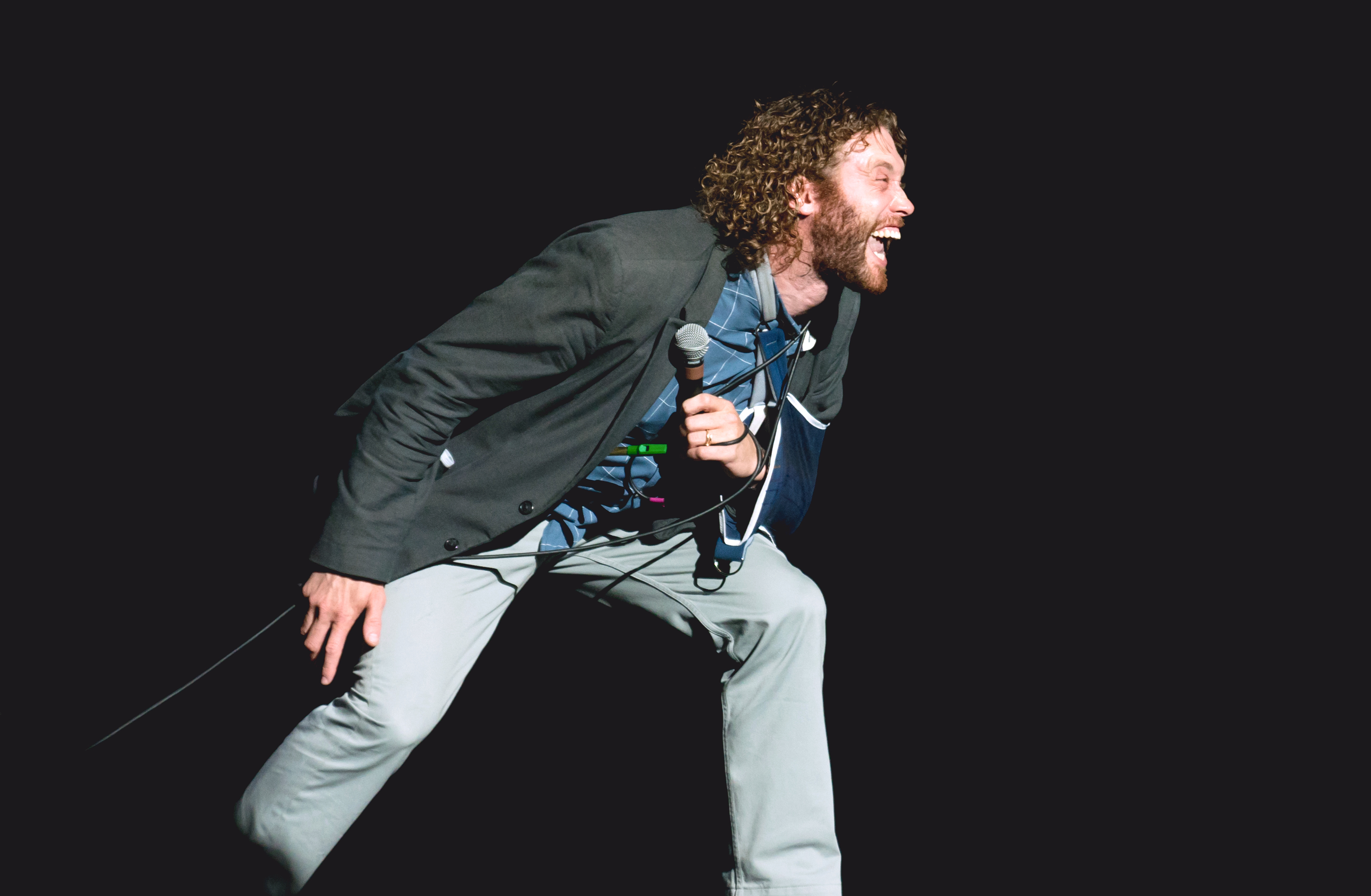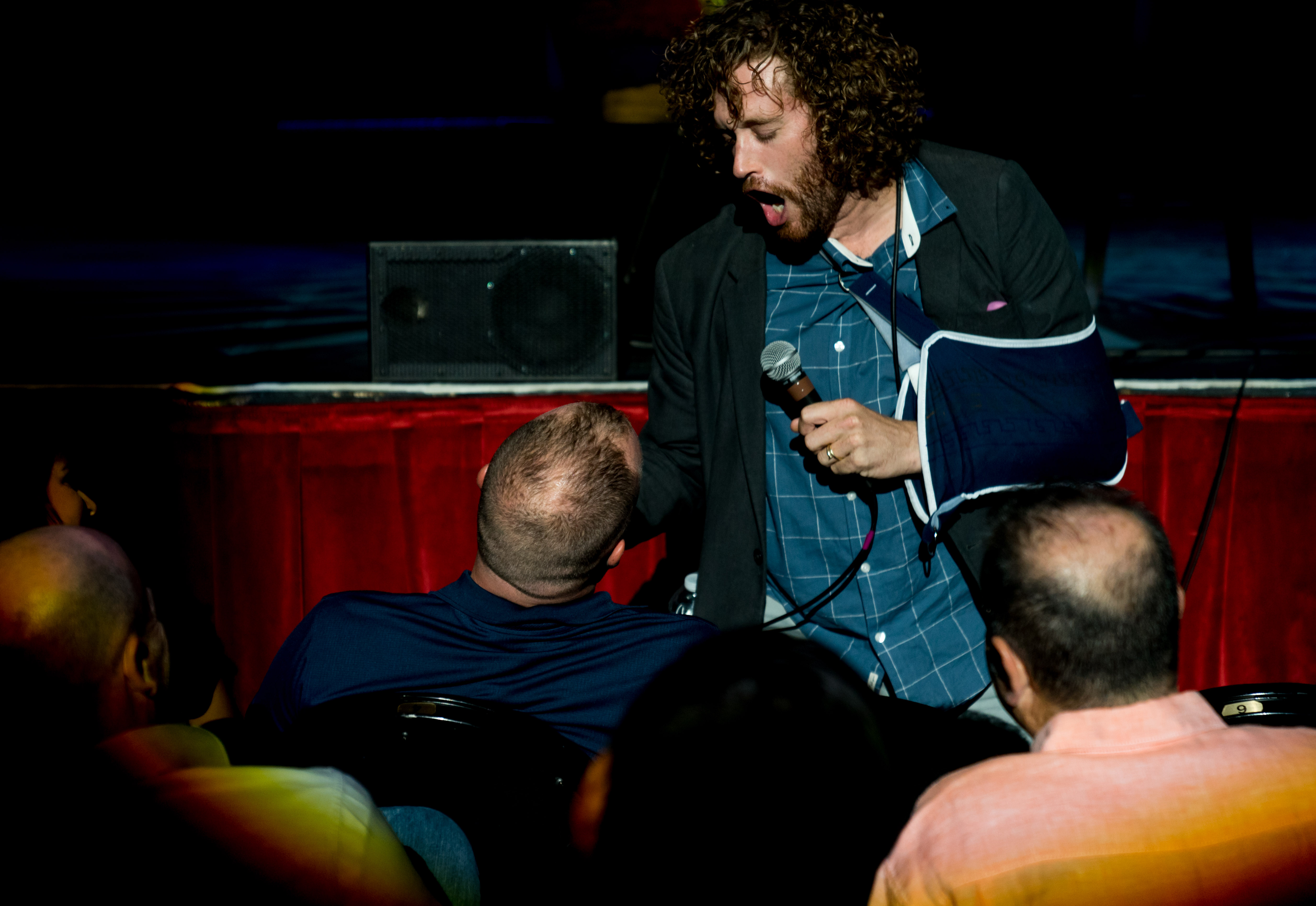 “I can’t tell if it’s more distracting if I use this hand,” he said in regards to the arm in a sling. Miller implied that a feud with his wife might have been the cause of the injury, but later the audience learned that it actually was a former infection gone wrong, and he’s still trying to navigate the medical terminology surrounding his wound. Miller, who grew up in Capitol Hill, made references to his former alma mater — East High School. He told a story about a senior prank he and his friends played that wasn’t funny and how he used to make up fake announcements as “Head Boy” before he was disbarred. Miller was as expected — a little crazy with a lot of movement around the stage. From tangling himself up in his own mic to jumping off the stage to kiss the head of a man in the front row, Miller was uncensored and pumped to riff about how much he loves Denver and how much he hates Texans. At one point, he seriously hissed at the audience, which he said his wife told him not to do. Miller even invited Governor John Hickenlooper’s son Teddy onstage to publicly thank his father in the audience and prank call one of his (Teddy’s) friends.