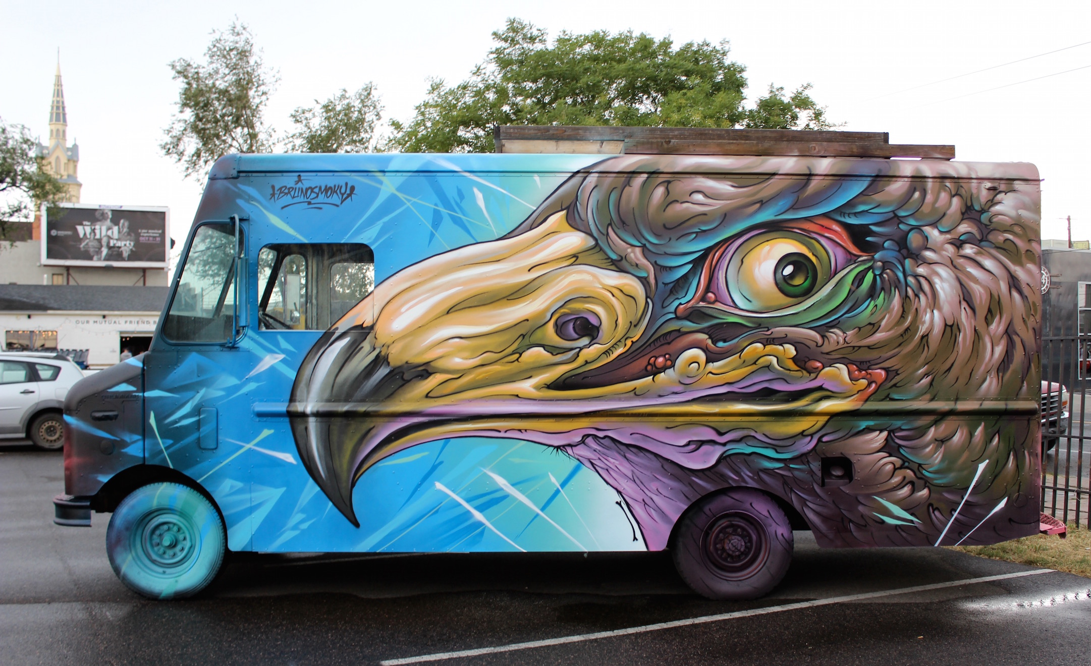 Bruno Smoky & Shalak Attack – The first and second pictures show both sides of a truck that was painted by two different artists. Each side represents a different animal — one that commands the sky and the other the ground — and both run wild with color.