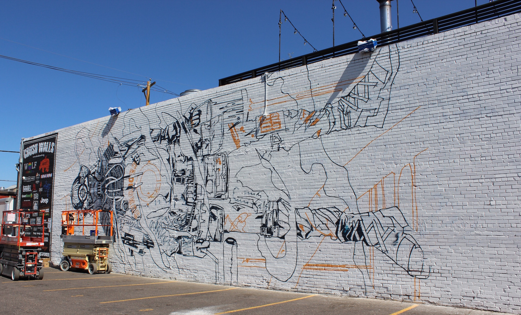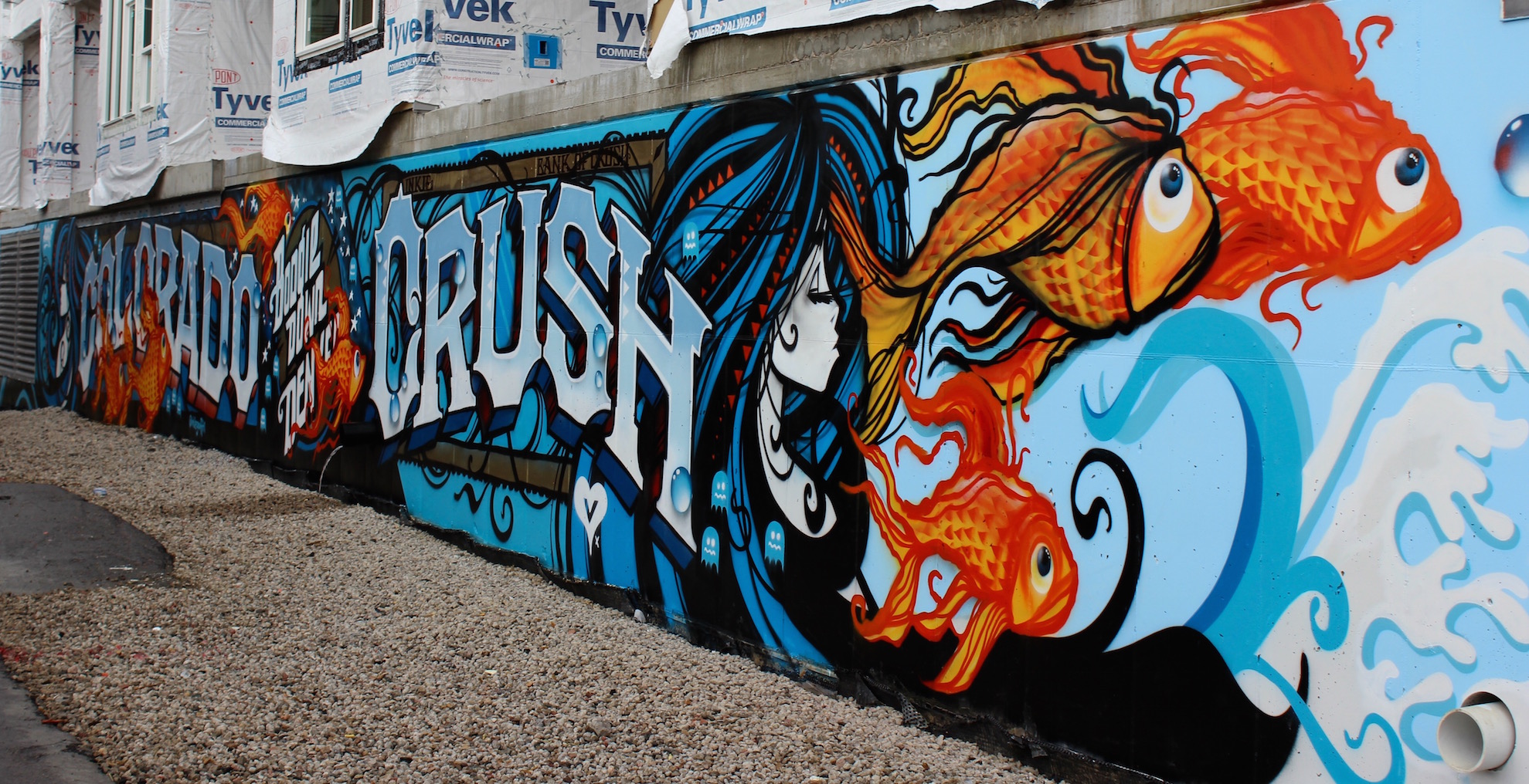 Lauren Napolitano – A traveling artist who now calls Denver home, Napolitano has been slowly but surely making her distinctive mark around the city. See her other work at Bar Fausto, on the Cherry Creek bike path, and now in the alley behind the main CRUSH parking lot.