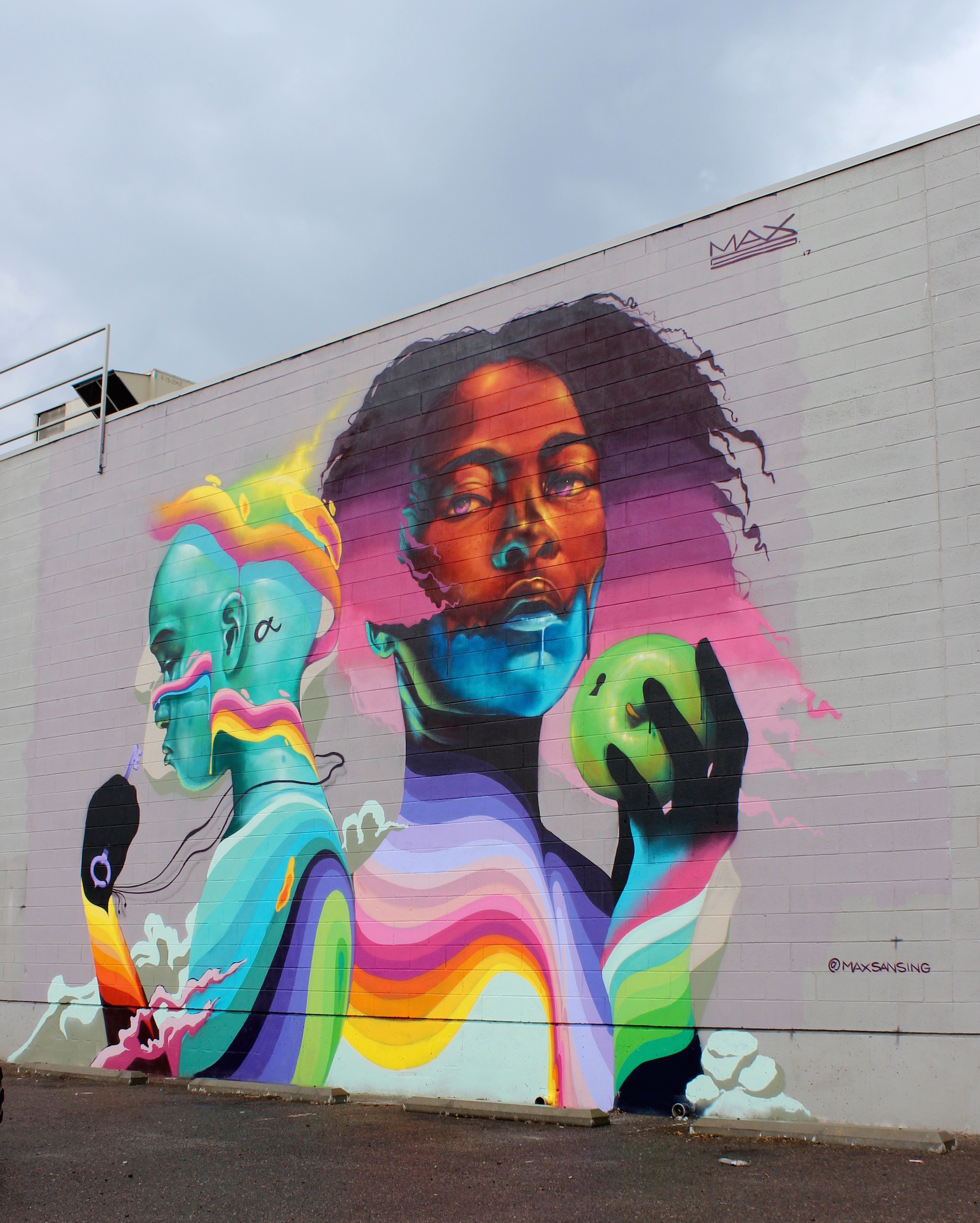 Max Sansing – Recently making the transition to a full-time artist after running his own artist space for years, Sansing should be happy he made the move. His work is bright and fun while also intense. Try a staring contest with the lady holding an apple and you’ll see what we mean.