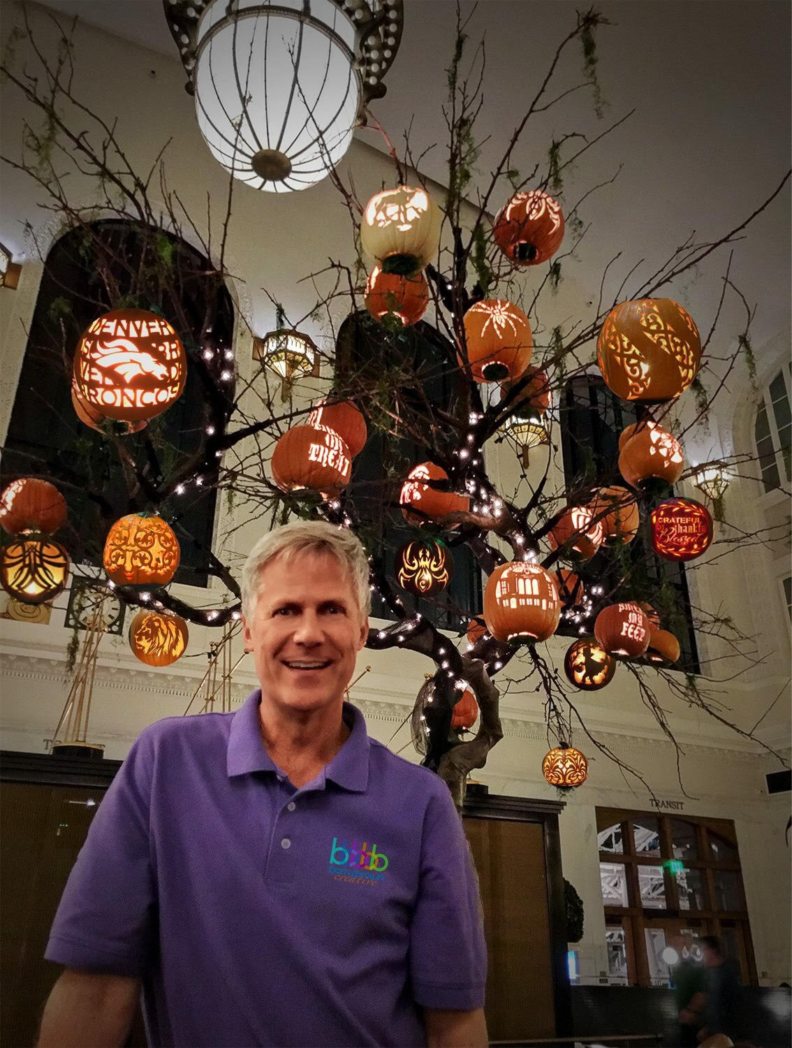 Pumpkins are every bit a part of fall as masks are to Halloween, but for Barry Brown, Denver’s own master pumpkin carver, pumpkins are the canvas in which he can display his unique work of art. Brown’s carved pumpkins have appeared in the beloved children’s film Hocus Pocus, on the tv show Roseanne, Good Morning America and The Today Show. Locally, you might have seen Brown’s work at the Union Station, the Denver Botanic Gardens, the Broncos Bunch Kids Club, and now a tree with 30 carved pumpkins hanging from the branches at Denver Place off 18th & Curtis. Here, he talks to 303 Magazine about how he found his calling and life reflections we can learn from pumpkin carving.