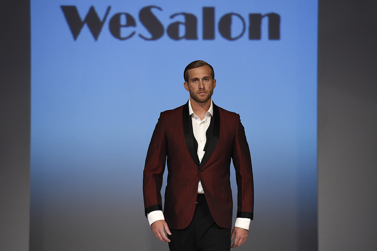 WeSalon’s Kim Herman put together a vintage-inspired show that had a raw, undone quality. Bold lips and exaggerated, crimped beehives balanced polished attire. “I wanted to do something with ’50s and ’60s glam,” she explained. “Today’s world doesn’t seem to have as much time for glamour, so we brought that back for this show.” The end result was reminiscent of the 2005 W Magazine photo spread by Steven Klein featuring Brad Pitt and Angelina Jolie as a married couple in the 1950s—elegant perfection on the outside with dark, brooding secrets underneath.
