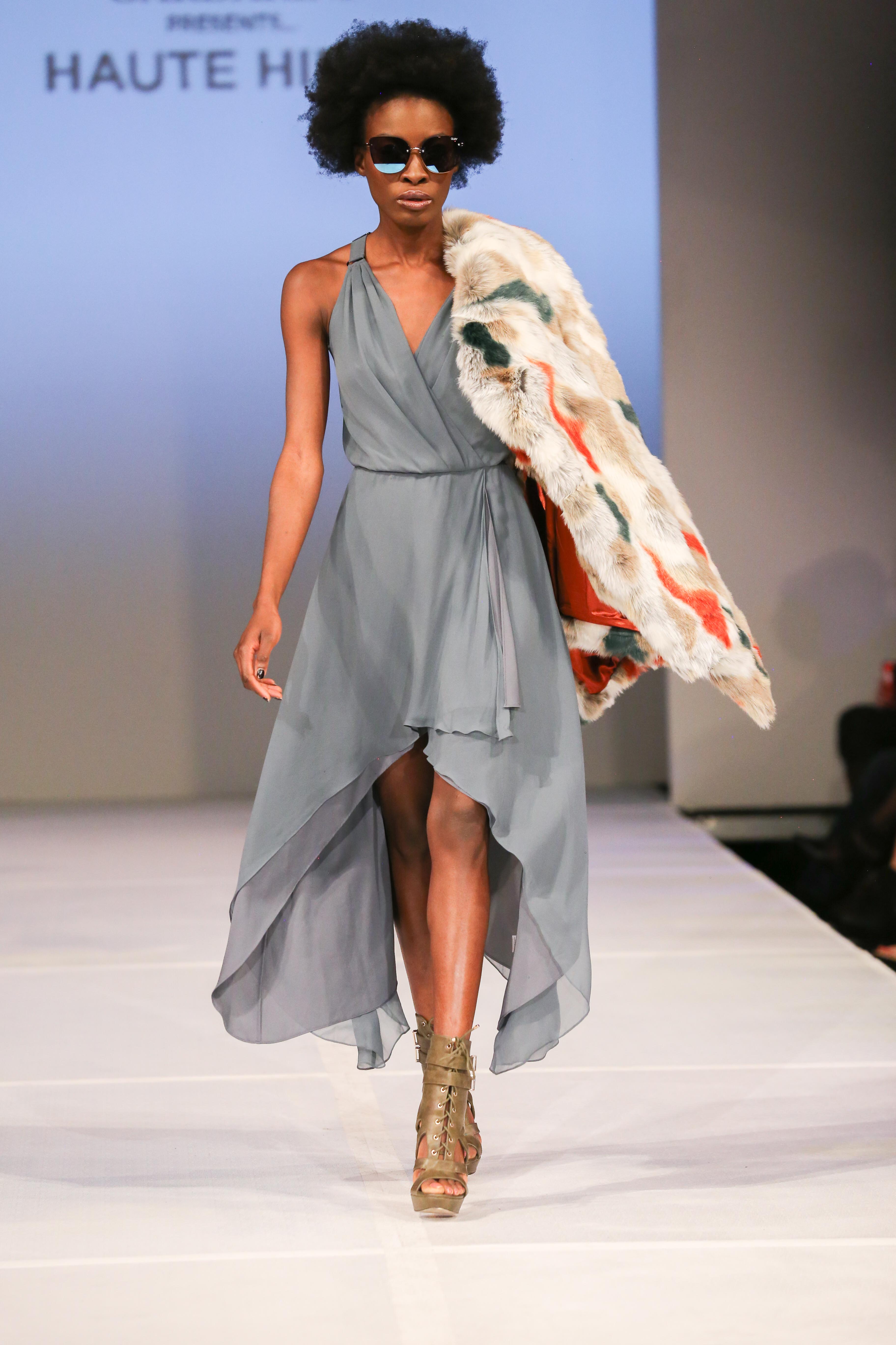 Next up, Royal Outerwear maintained the strong attitude of Mathes’ work, but took it to street level. The local designer, whose shop is just blocks away from the event, used a neutral palette mixed with eclectic patterns to give us an urban luxe line. Nuorikko then softened the scene with custom wedding gowns. The local shop utilized non-traditional bridal silhouettes, capes and separates for sophisticated yet modern looks. Velvet Wolf, a Denver boutique, took a similar route as Royal Outwear and featured more casual apparel that came with a bite: Leather, fur and denim mirrored popular trends in modern streetwear with an undertone of punk.