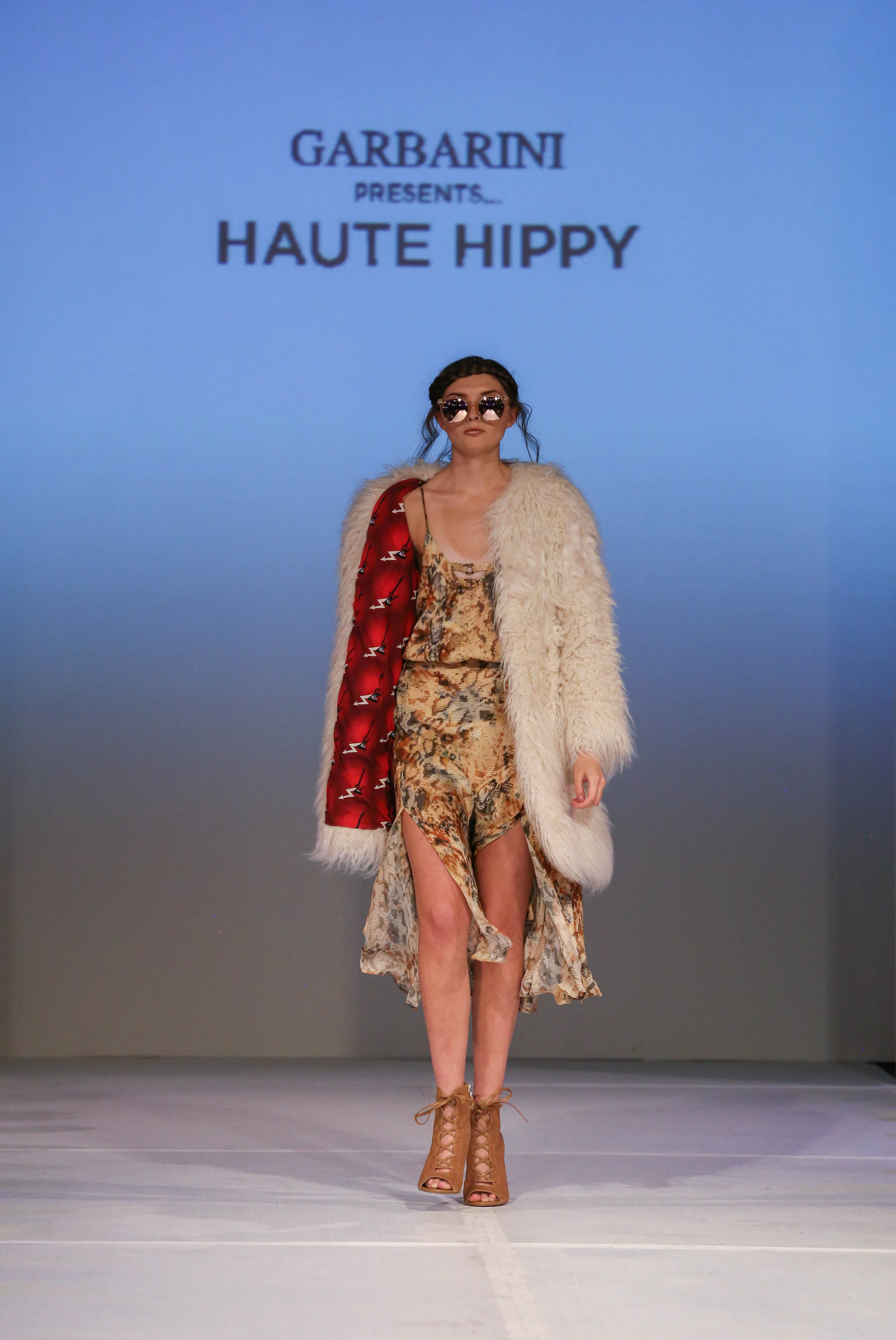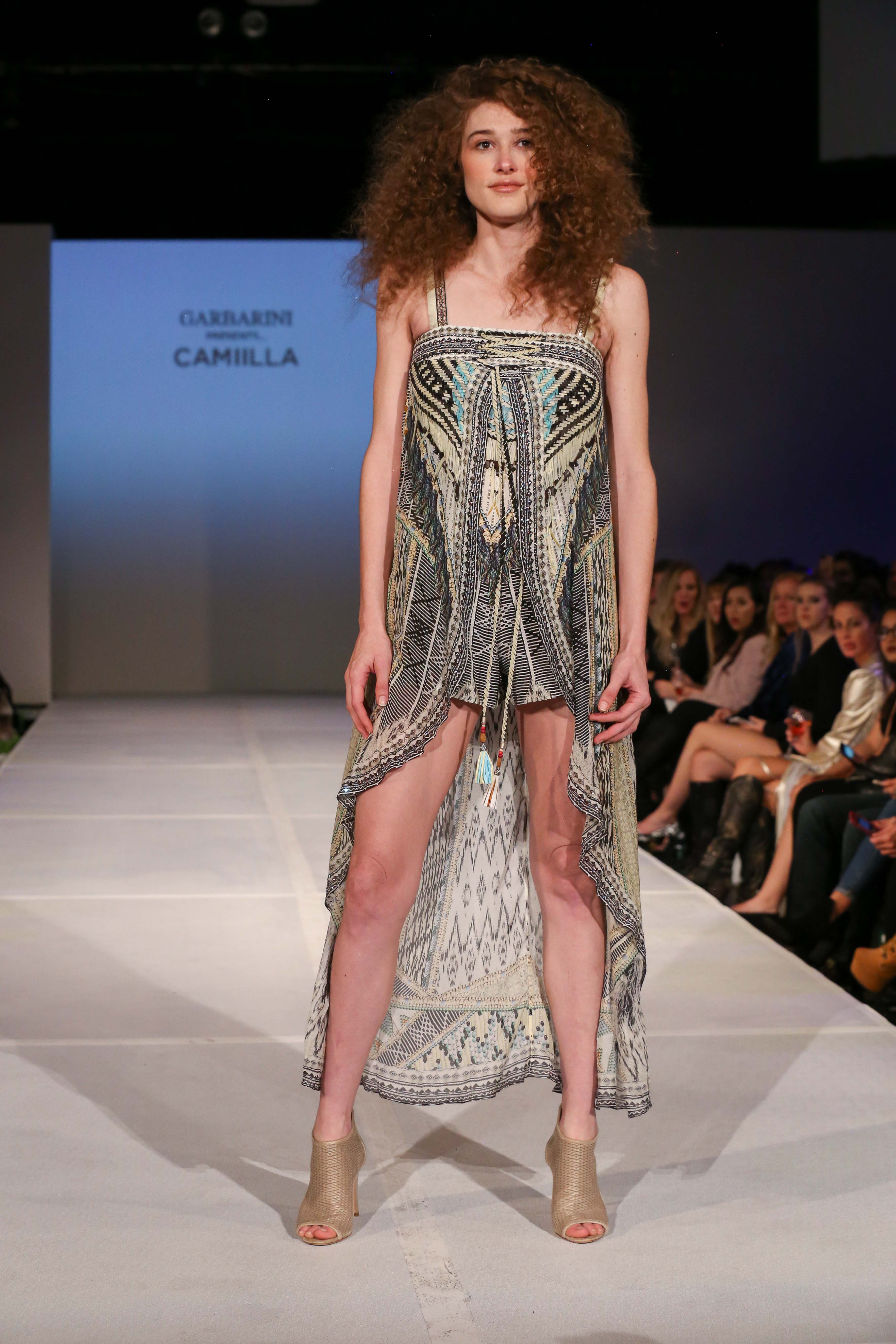 The pageantry hit a high note when Camilla entered the runway to close the show. As the quintessential disco-era song, “I Feel Love” by Donna Summer played, models commanded the runway in flowy, bohemian dresses, rompers and kaftans. Haute Hippie also played on a ‘60s theme with billowy boho dresses showing that the summer of love still inspires today.