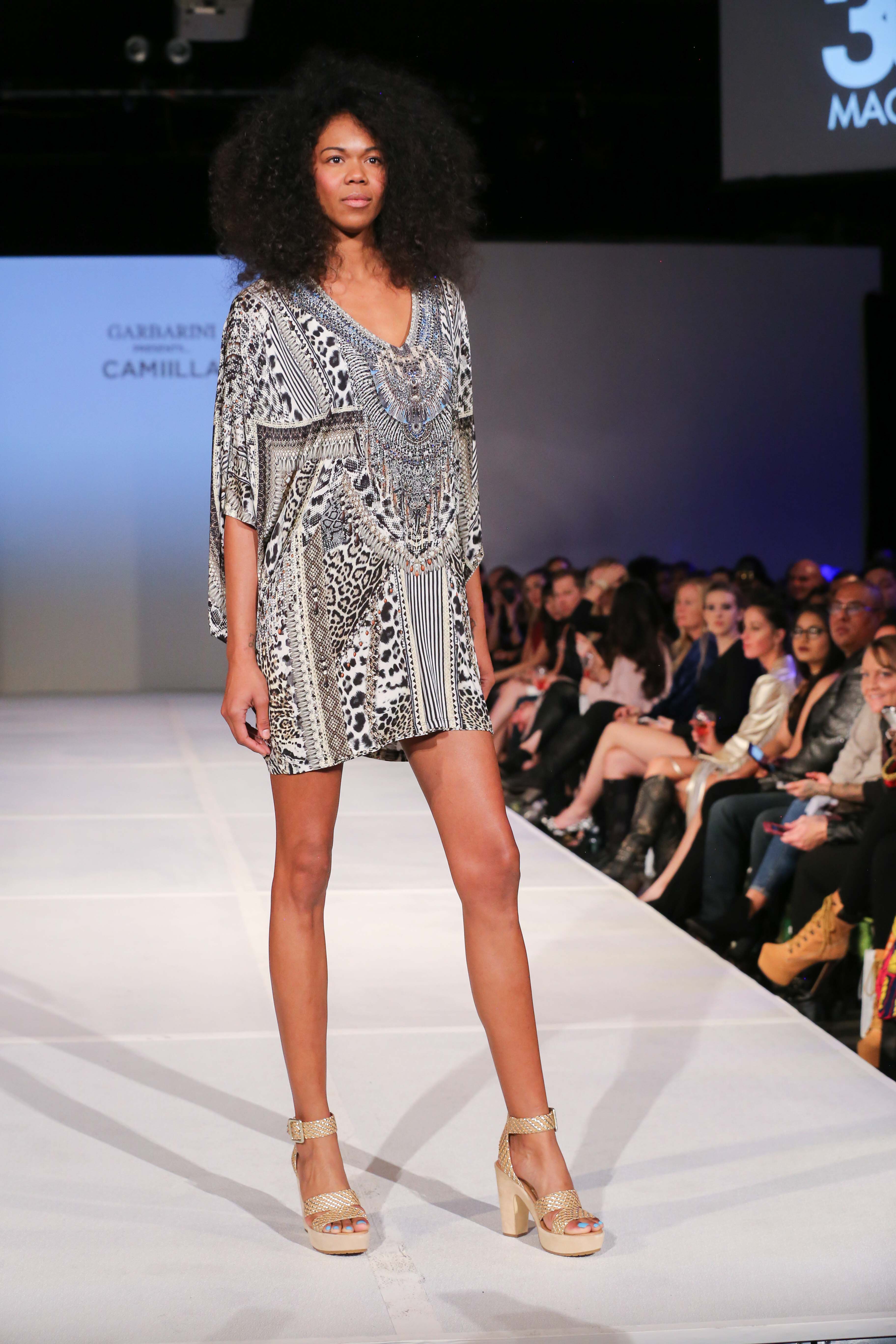 Night Two combined the magnetism of haute couture with the relatability of ready-to-wear, as local boutique, Garbarini took over the runway. “Garbarini is where women have always gone to feel beautiful and high fashion without trying too hard,” said Price. “This show is about confidence and glamour presented in a very consumer-friendly way, because people can go to Garbarini and buy anything they see here tonight.” In total, 10 designers from all over the world—including the legendary Diane von Fürstenberg—took the audience on a journey, each presenting five looks that ranged from edgy to elegant.