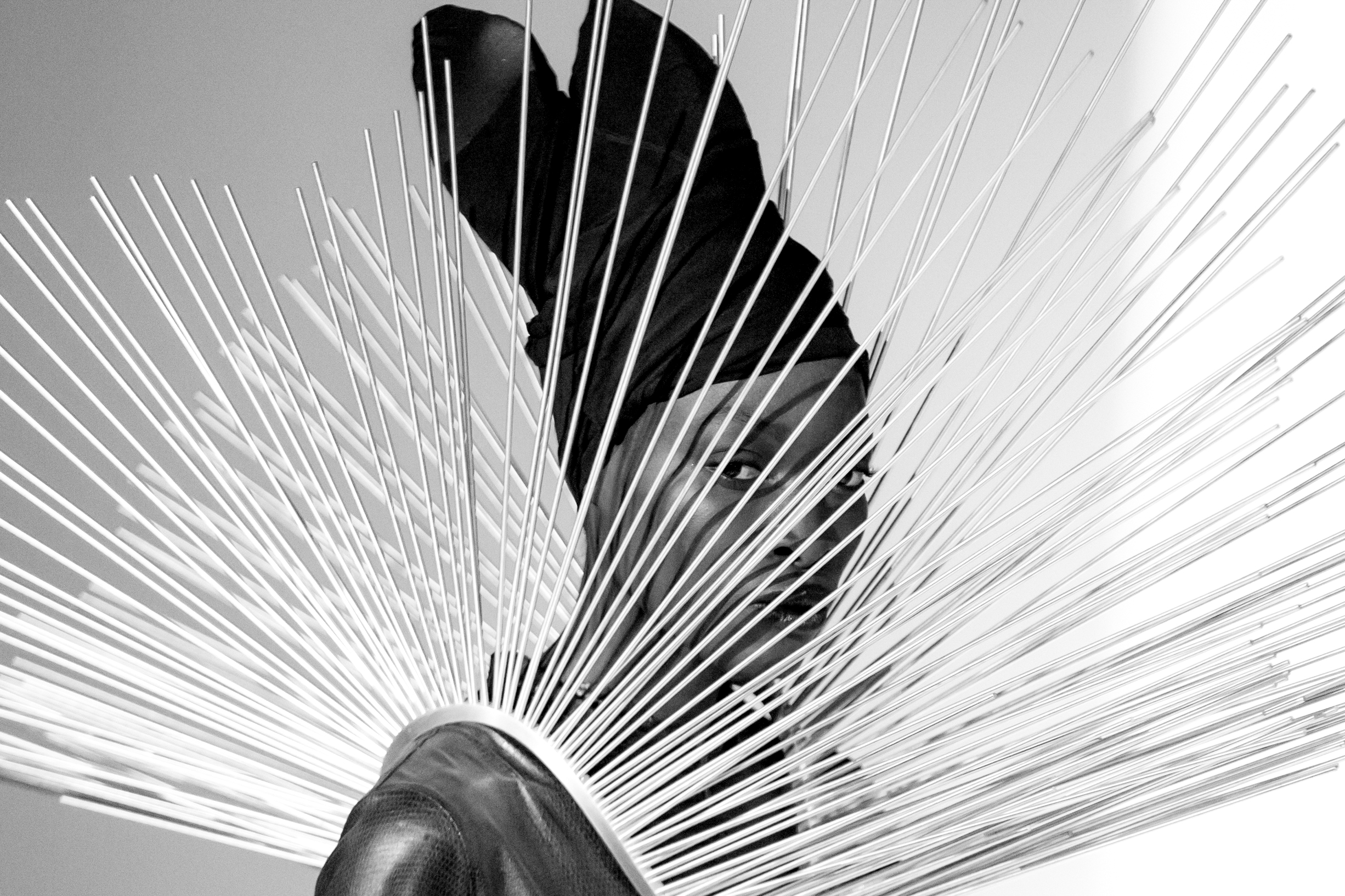 The night began with Denver’s Jesse Mathes. She set the bar high for the rest of the weekend with her intricate metalwork that elaborately encased her models with rods of aluminum, copper and brass. Instead of evoking a sense of entrapment, the designs imbued them with power and strength. Many of her pieces came from her “Territorial Defense” collection which is inspired by aggressive interactions with men and the need for personal boundaries. According to Mathes, her collection was influenced by Queen Elizabeth I of England, whose “gowns and jewelry enlarged her presence physically and asserted her dominance over her subjects — including the many men who wished to usurp her power.”