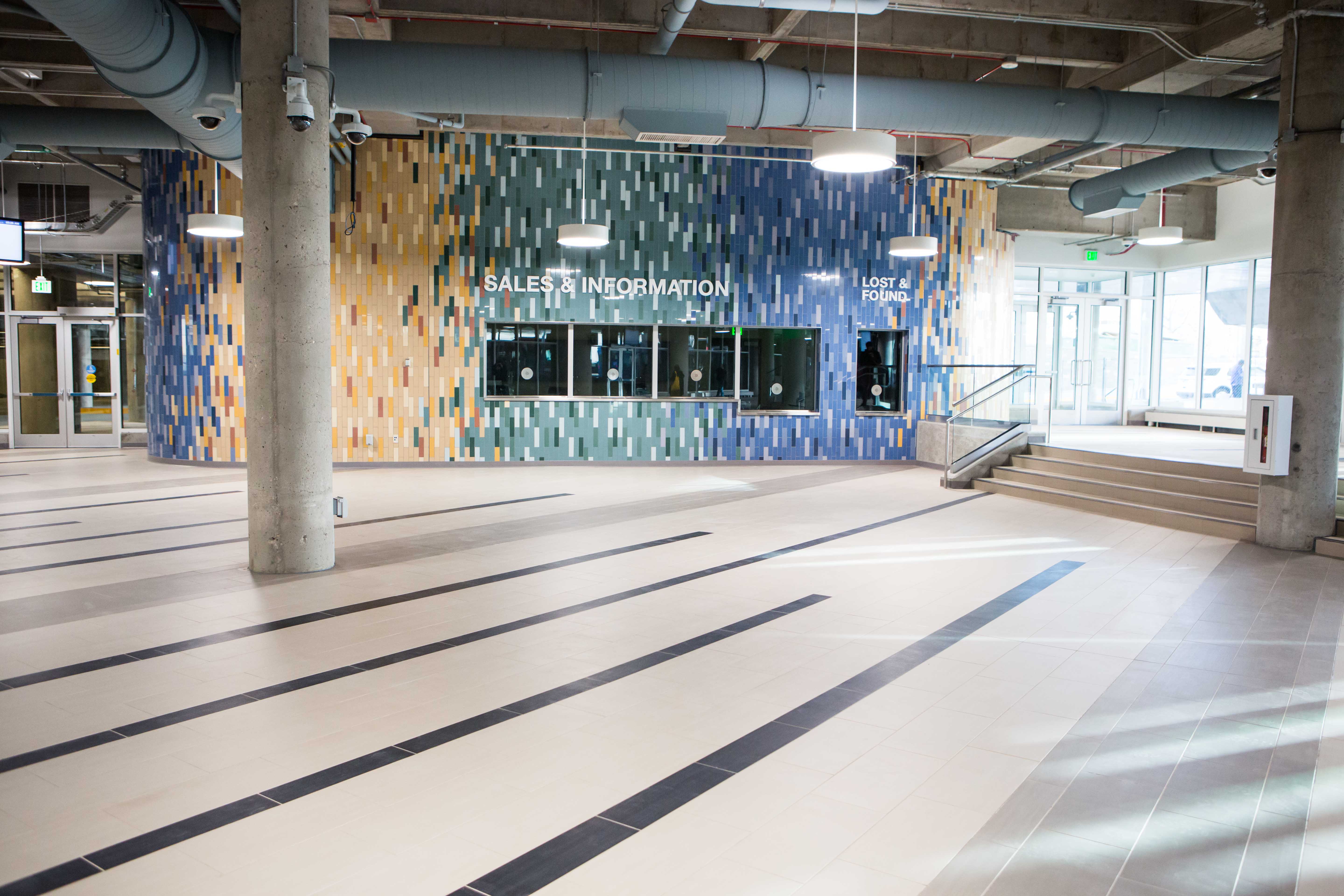 This weekend, Civic Center will officially have a new hub with the opening of the $31 million transit station. Closed for construction since summer of last year, the Civic Center Station does not have all the bells and whistles you’d find at other transit areas such as Union Station or your average Light Rail stop. Most noticeably, the space is void of retail options and new public art (although there are colored tiles and a rededicated oversized-size chess pieces that double as tables and benches). According to Richard Rost, manager of facilities engineering, the utilitarian hub is meant to be a place in motion rather than that of gathering. That may be due to the expected 15,000 passengers a day and 18 routes the station will service — making it one of the busiest transit areas in the city.