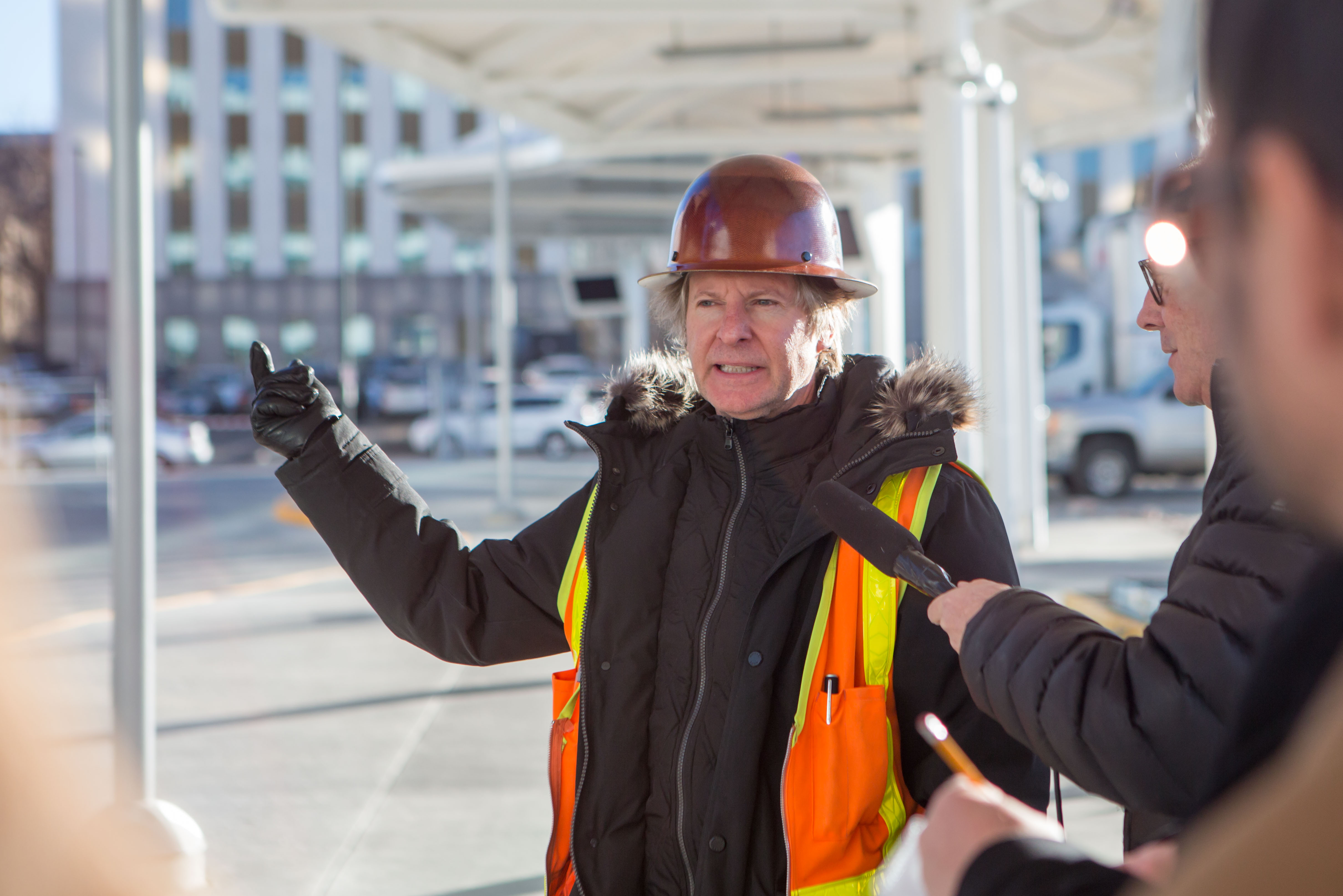 But what it lacks in amenities, it makes up for in security and efficiency. First off, the entire station was shifted so it could be diagonal with Cheyenne — a side street. Rost explained this will allow buses to exit the station even when Colfax is closed — which will be particularly useful during the many Civic Center events. Second, the station has over 120 security cameras, which are present at almost every turn. The space itself is also more transparent with large windows lining the interior of the station — resulting in a well lit and safer atmosphere. Outside, the station mirrors this openness with sparse design — save for the boomerang-shaped canopy. Similar to what you’d see at Denver International Airport and Union Station, the canopy was mirrored off of organic shapes and will light up at night. Other noteworthy design features include 1,900 isolation rubber cushion, similar to giant hockey pucks, placed under the interior bays to reduce noise and vibration and the use of 170,00 cubic feet of “geofoam” used as a lightweight construction filler.