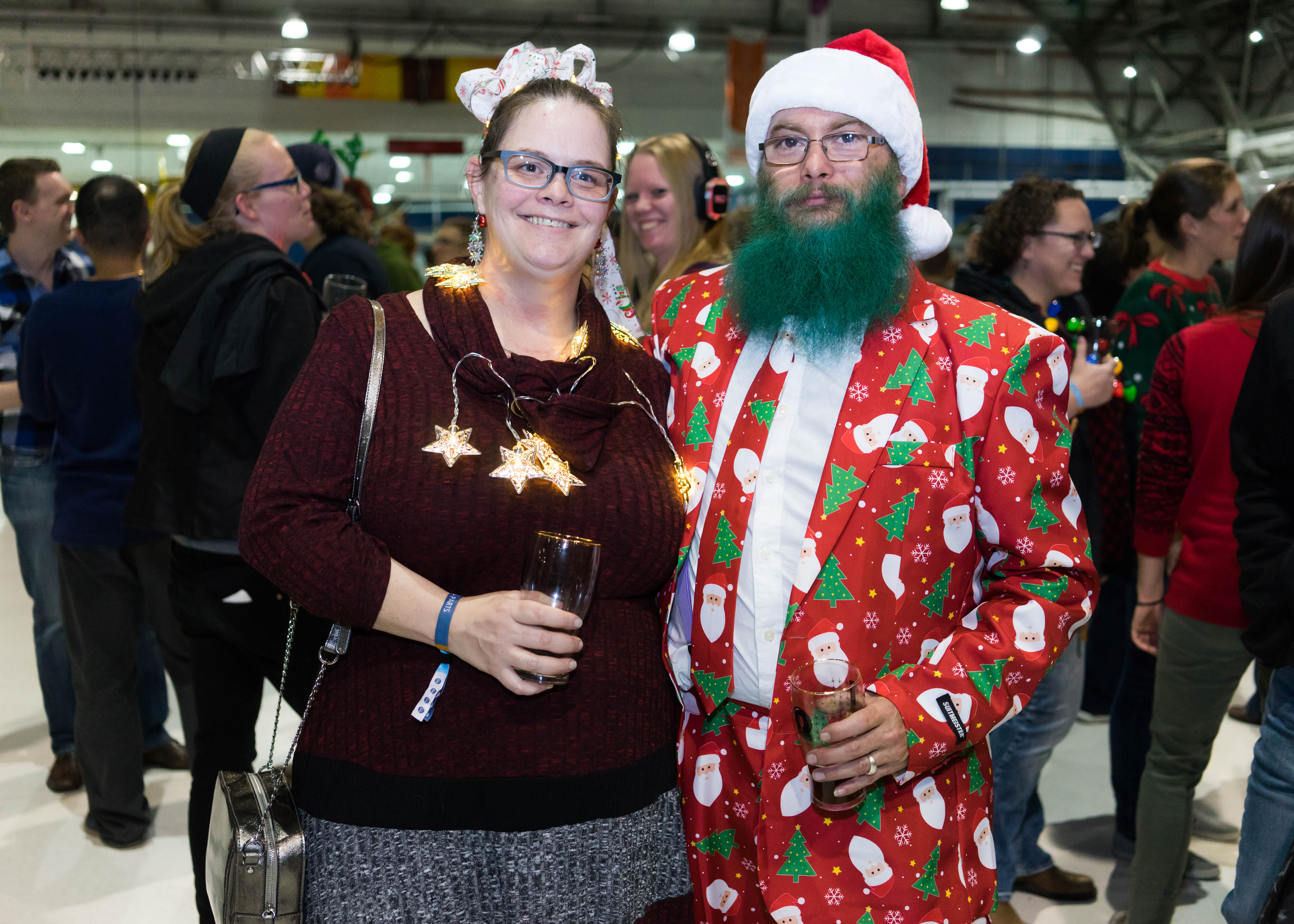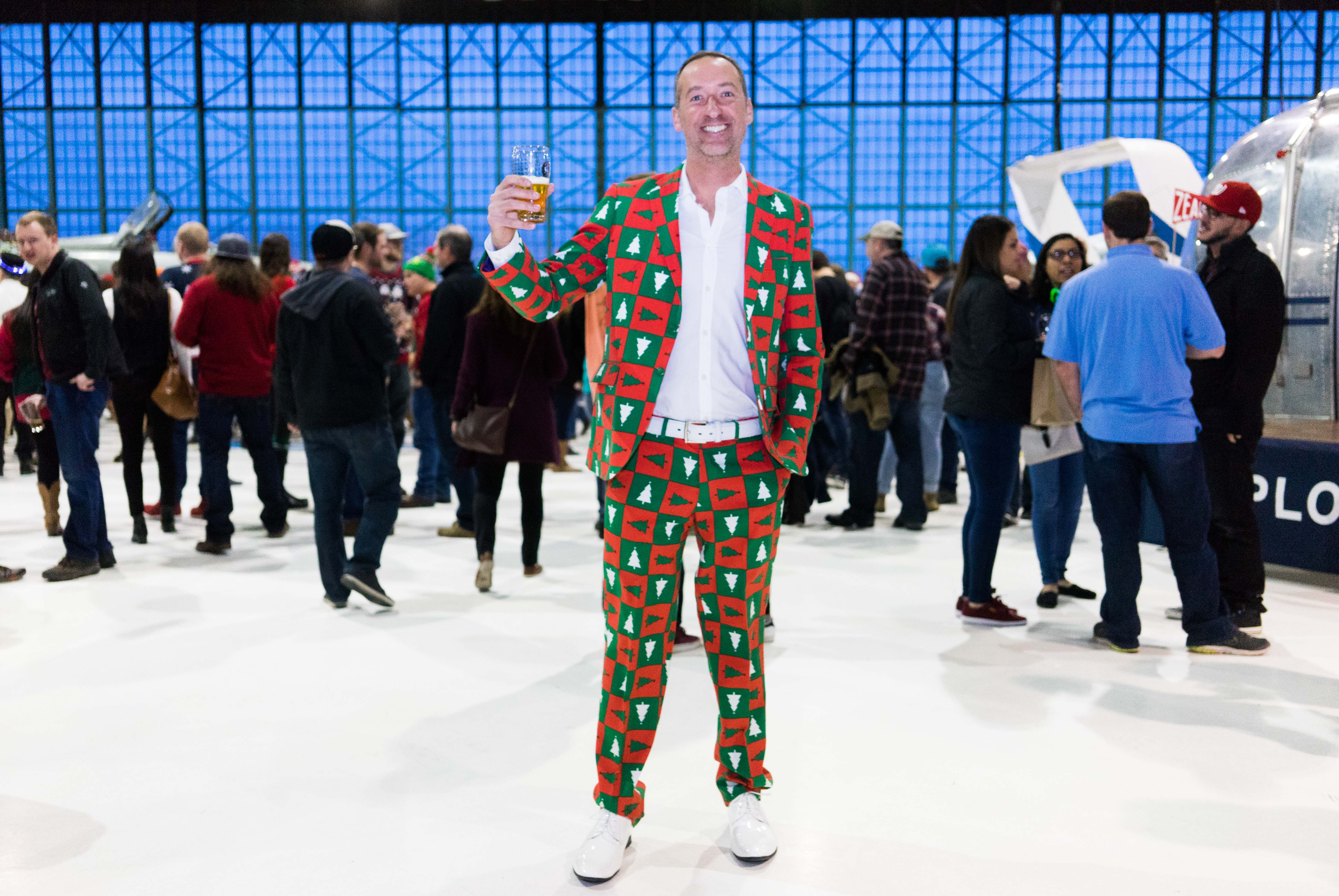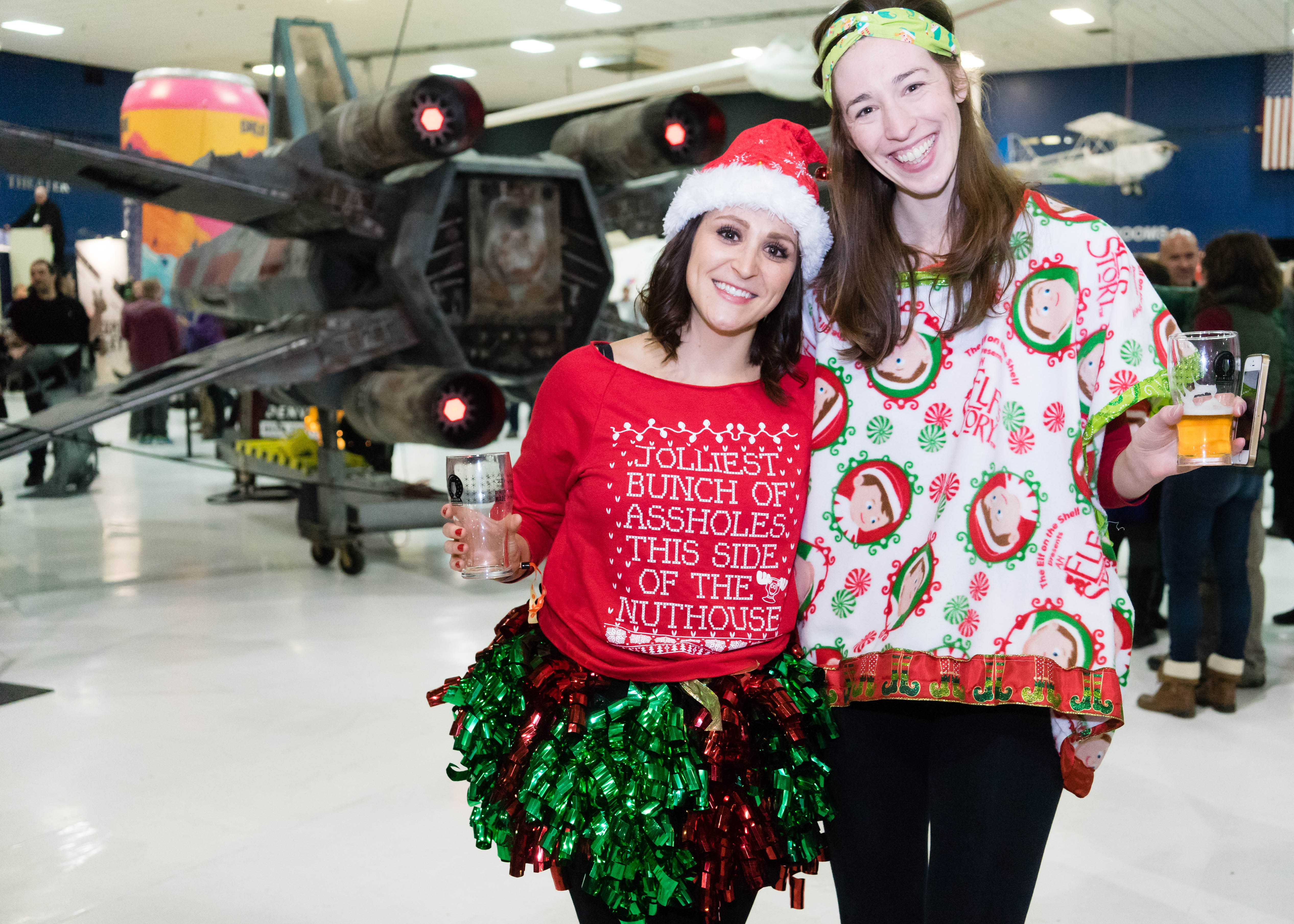 Everyone at the Festivus takes their holiday apparel seriously – it is not an understatement to say there is no greater collection of adult onesies and ugly sweaters at a single event in Denver during the holiday season. While the brews are still the main attraction, there is something special about being lit on your sweater and from your beer as you wander around the airplane hangar museum.
