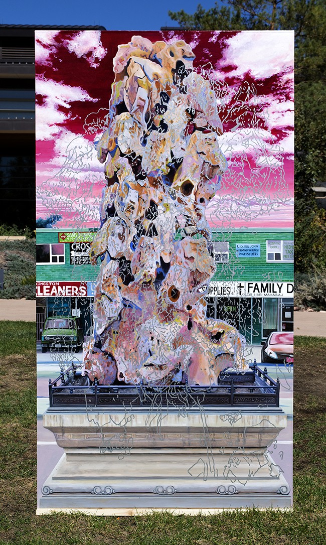 Dmitri Obergfell: After a residency with RedLine starting in 2014, Obergfell saw a busy few years within Colorado and beyond. Just last year he showcased work in L.A and Ohio, created a piece for Black Cube’s Drive-In series, and participated in the Mi Tierra exhibition at the Denver Art Museum. He’s a sculptor in some ways, but he often drafts his concepts and sends the designs to fabricators. Represented full-time at Gildar Gallery, Obergfell’s work approaches two main influences on his life— Latino culture from his father’s side and his own interest in mythology and existentialism. Obergfell will be one of the many artists at RedLine’s 10x 10th Anniversary exhibition beginning February 2 and in March, Obergfell will travel to Brussels for a show. He is also represented by Montoro12— a gallery in Rome.