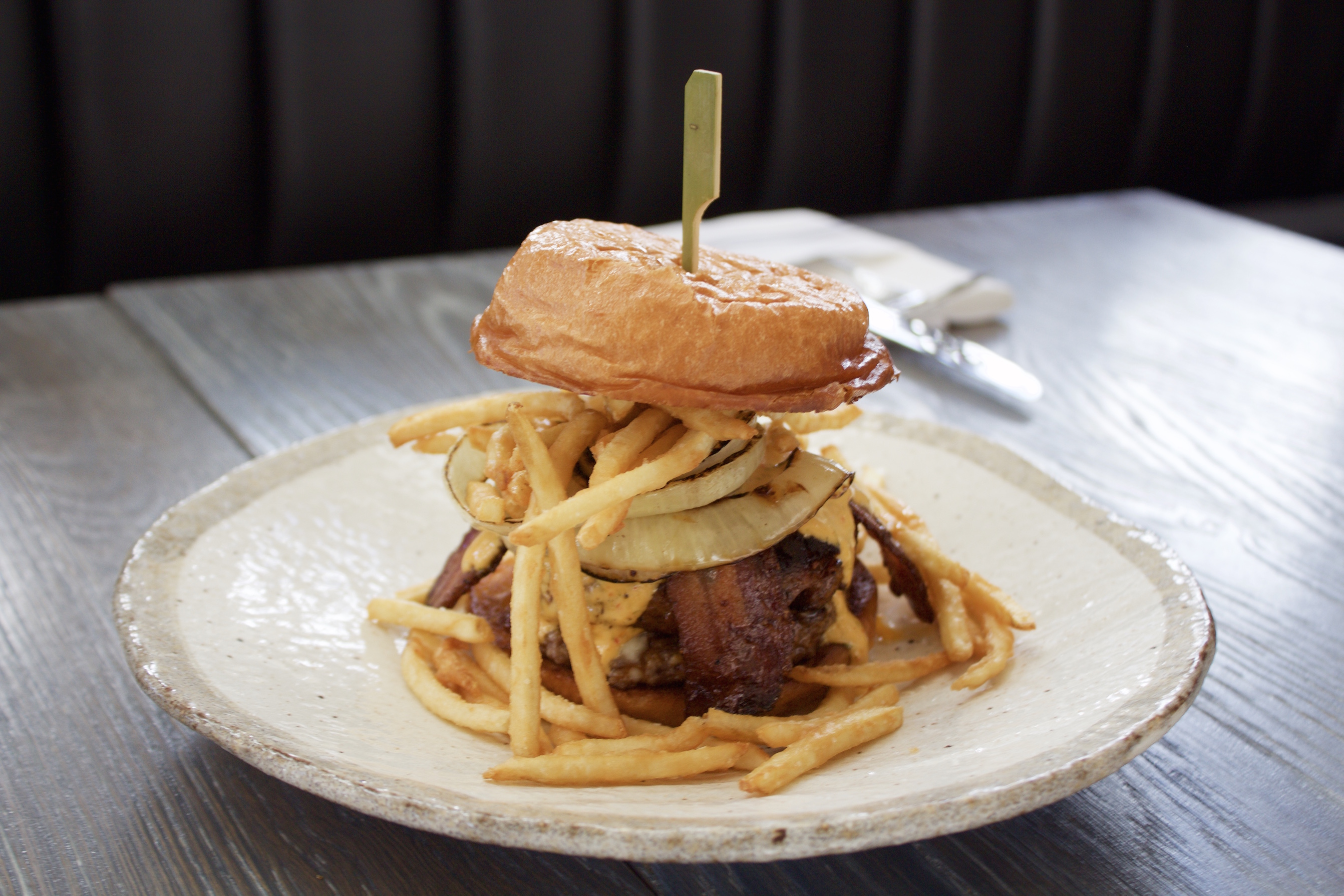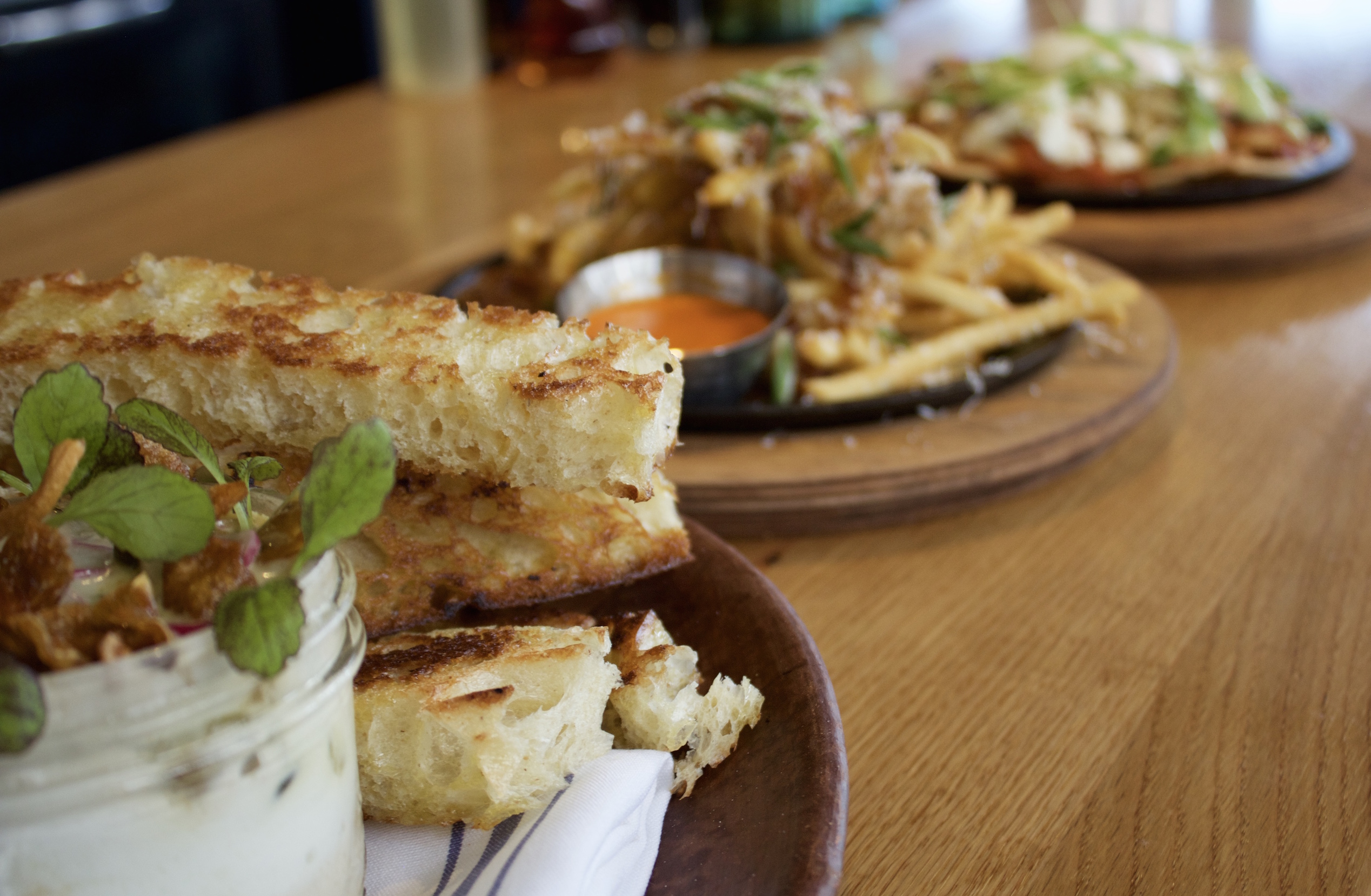 Highlights from the menu include the chicken fried steak ($19), which sits atop a heaping portion of smooth, white corn grits and garnished with pickled chilies and a chimichurri sauce. The dish swings flavor full circle — from classic roadside diner preparation to a one-of-a-kind Latin American-spiced asada. The Coddled Egg ($11) is truly a pot of umami — the egg is slowly steamed to silky, yolky perfection and comes paired with a sweet bacon jam, fried shallot and beautifully placed oyster mushrooms. This is a dish to rip, dip, dunk and share with the entire table. The Frita Cubana Burger ($15) — by far the heaviest offering on the menu — is a sandwich fit to fill a void in the emptiest of hungover souls. This beast features a beef patty, chorizo, bacon, melted muenster cheese and caramelized onions fresh off the grill — the sandwich is finished with a side of golden crisp shoestring fries just like a traditional Frita Cubana. The menu will also include a colorfully fresh vegan açai bowl ($9) and braised pig ear papas fritas ($7).