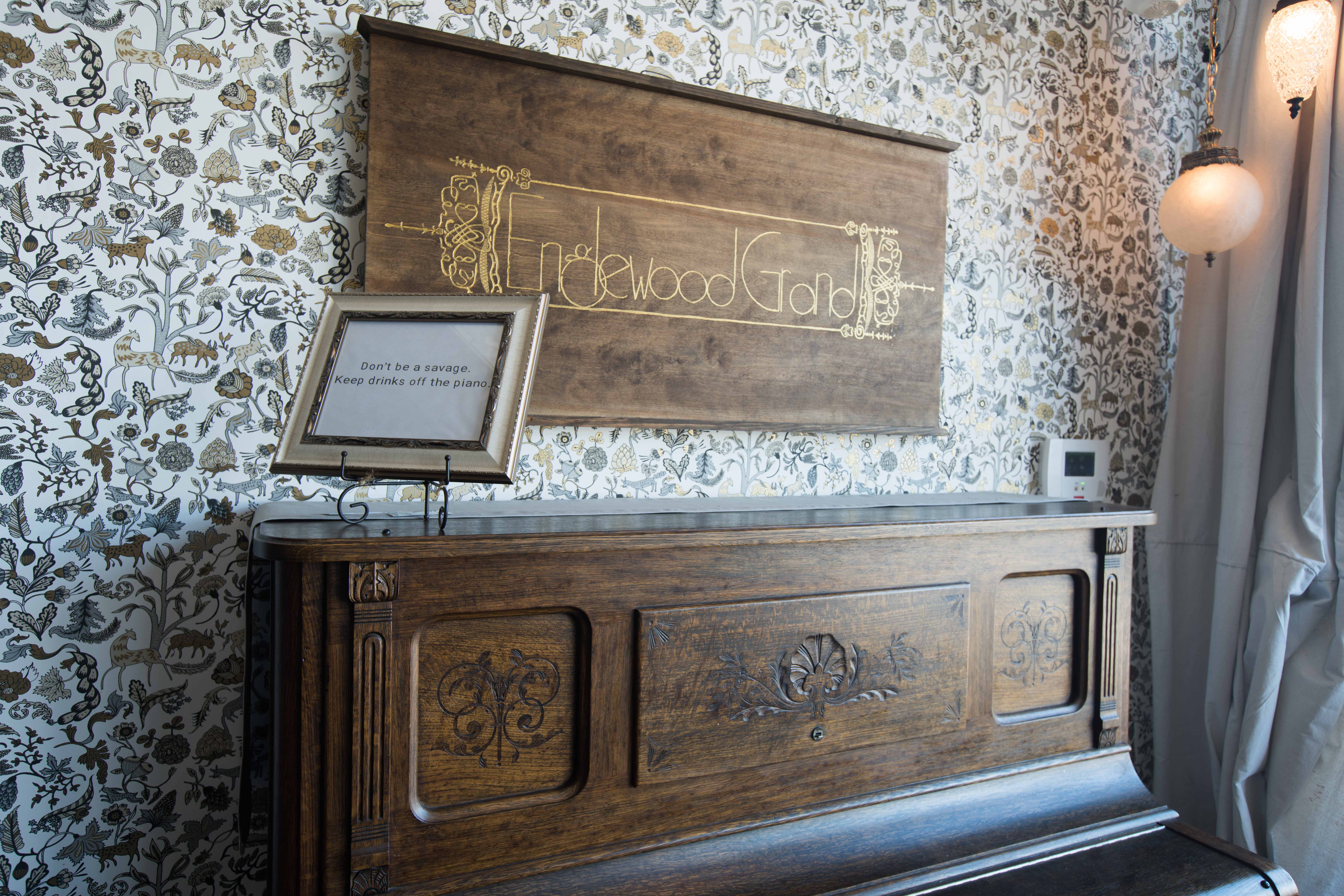 After months of physical labor, blood, sweat and a couple of tears — Englewood Grand officially opened on March 10, 2016. The couple managed to transform a formerly gutted empty shell on Broadway into what they envisioned to be the communities newest home away from home. From the “Englewood” mosaic above the door (created one tile at a time by Erika) to the end grain floor that Phil (by hand) built from 16,000 slices of four by four’s, Englewood Grand has quite literally been put together piece by piece. The benches that adorn the right side of the space are nearly 100-year-old antiques from the Englewood Odd Fellow’s Lodge, and those along with many other aspects of this quaint space are locally derived.