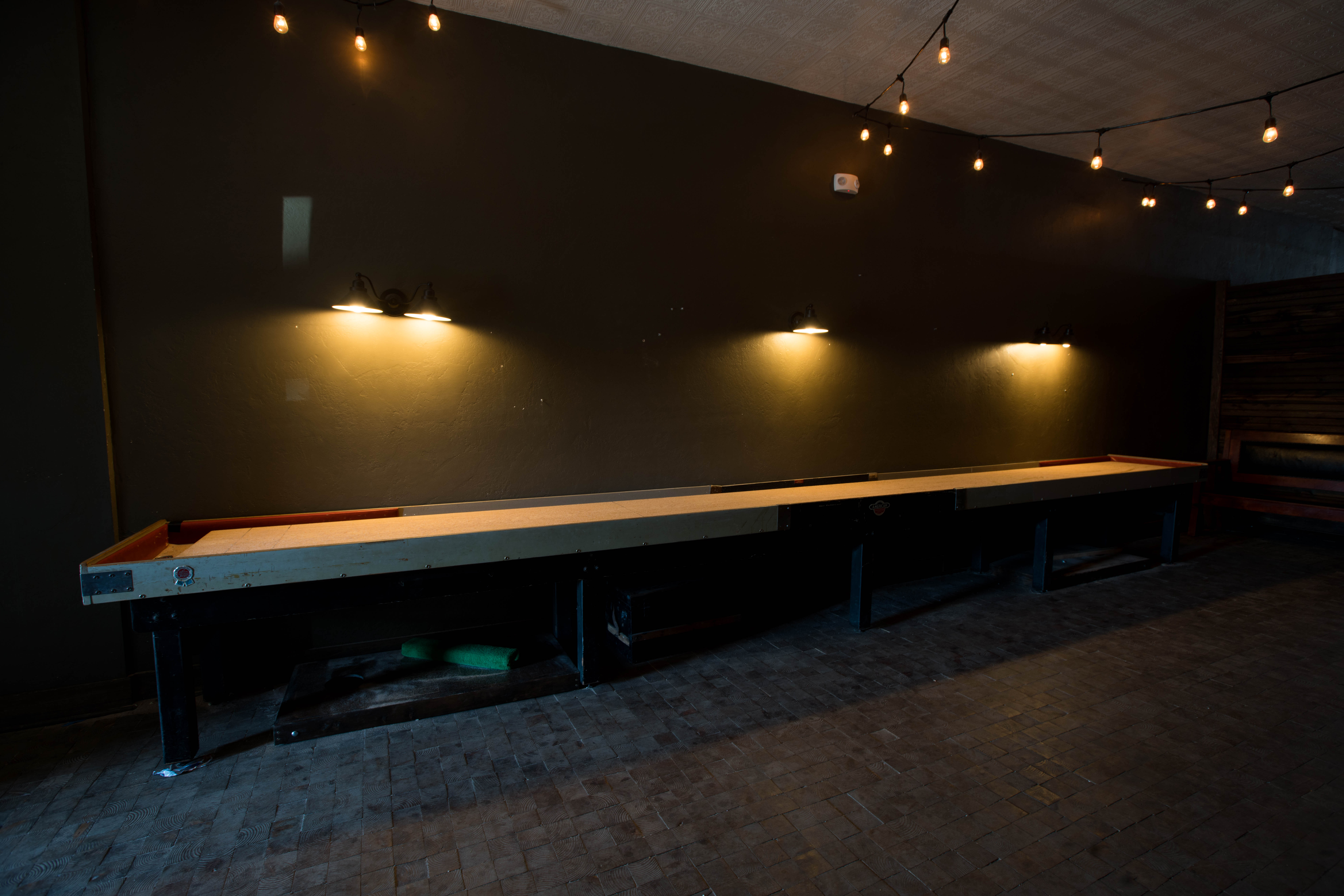 “Phil’s grandfather-figure used to pick him and his brother up after school and take them to the American Legion in Norfolk Nebraska,” explained Erica. “He would sit in the front and drink his whiskey while Phil and his brother would go to the back and play shuffleboard. So when we started construction on Englewood Grand, that bar closed. And Phil and our five-year-old daughter, Fara, got on a train to Nebraska, rented a Uhaul and hauled the table back here. So the table that he grew up playing with is in the back of our bar. It brings a tear to my eye every time I tell that story.”