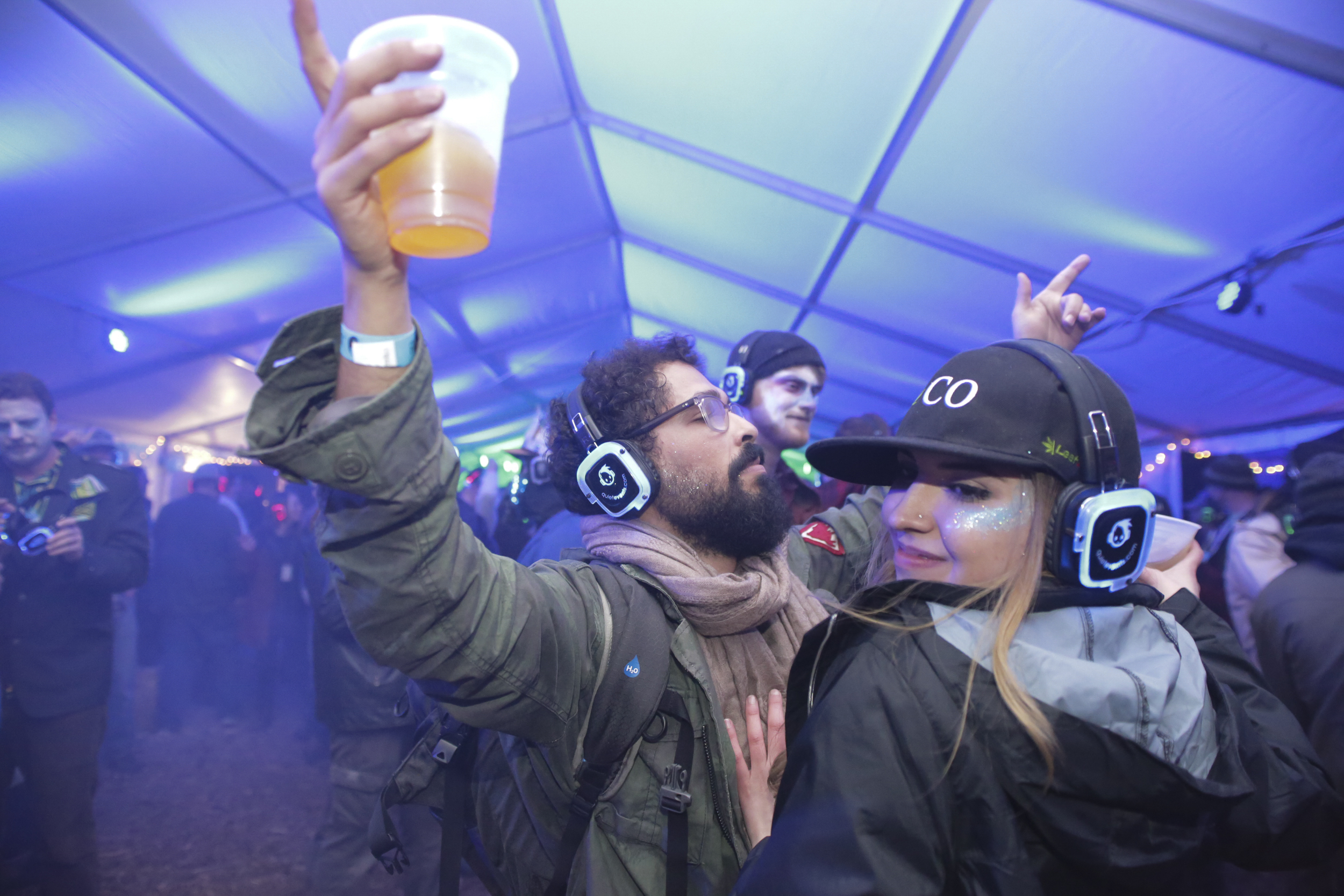 FDGD held many unusual festivities such as the exciting Coffin Races, Frozen T-shirt Contests and the Snowy Human Foosball. These events attracted people from all walks of life to watch and participate in. The music kicked off on Friday night with live performances from Flash Mountain Flood, Electric Toast & Buttery Friends and Dead Floyd. Each night after the bands finished playing there was a silent disco featuring three different DJs. Red, blue and green headphones bounced up and down inside the main tent with music from pop to hip-hop and EDM. The silent disco allowed individuals to have their own beautiful, musical experience while still being able to enjoy the environment and converse with other people. Happiness filled the tents during FDGD, with non-stop dancing and all around good vibes.