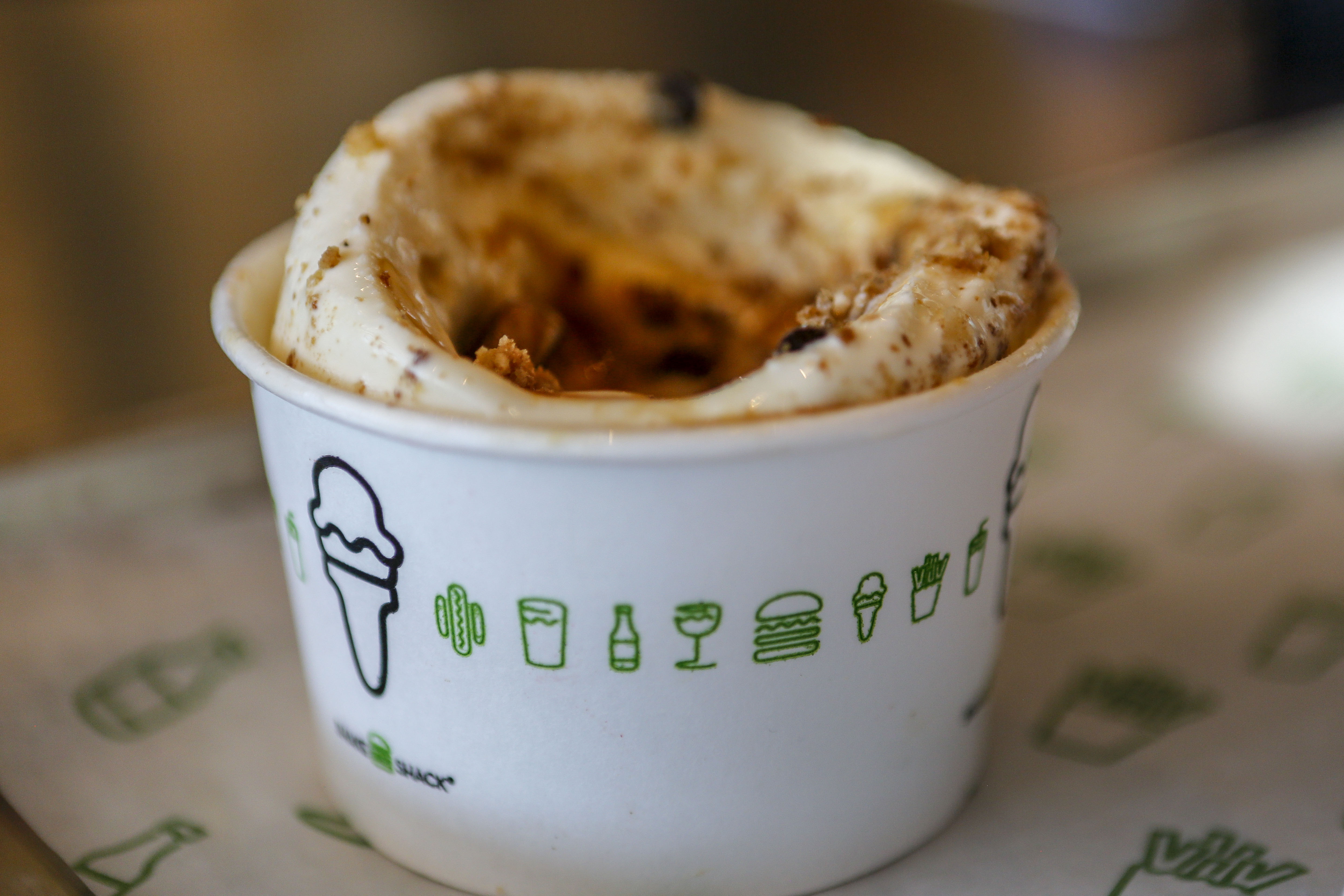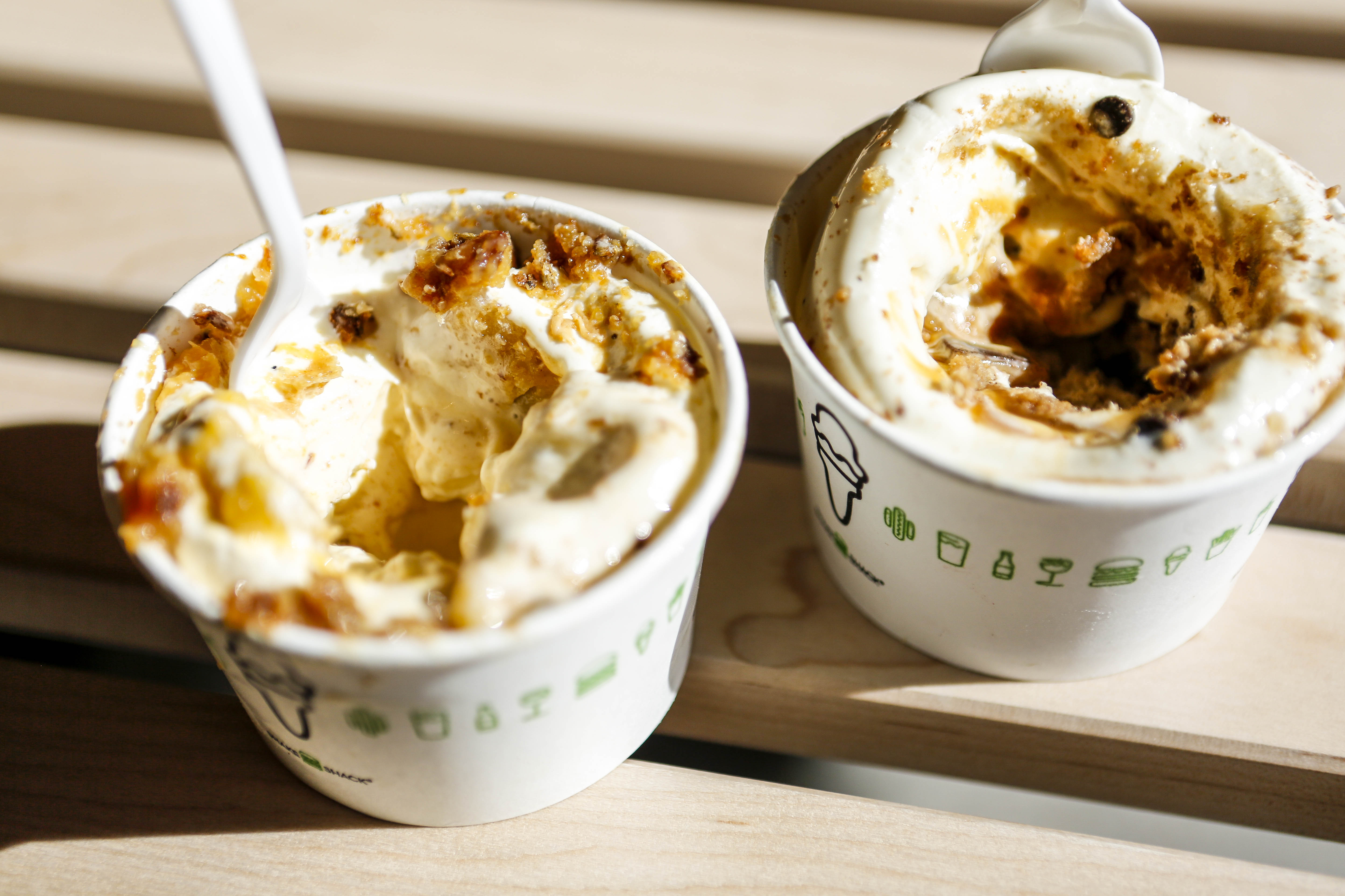 And, if you do bring fido to the patio, don’t forget to order him or her the dog dessert — a Pooch-ini with vanilla custard, peanut butter sauce and signature ShackBurger dog biscuits.