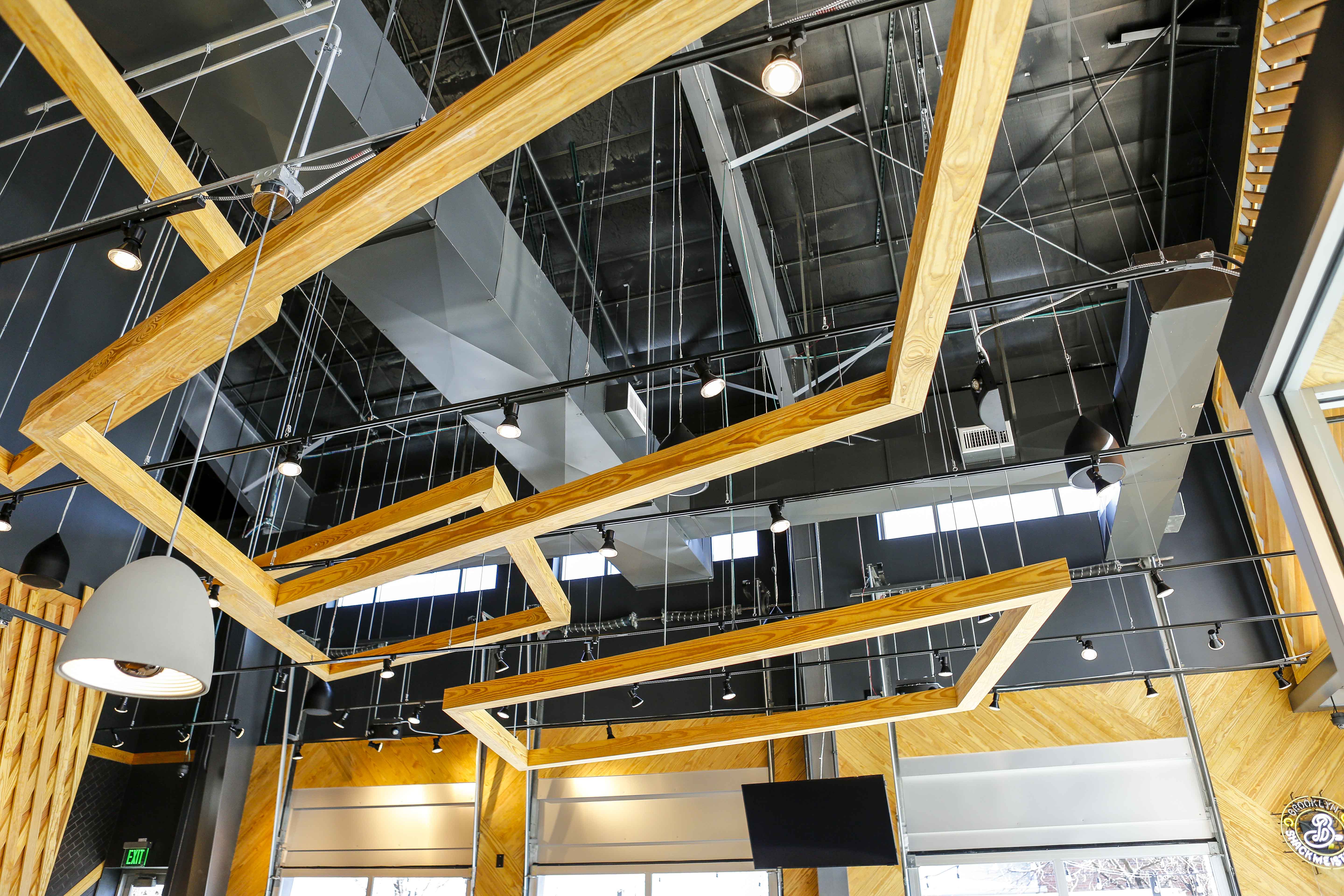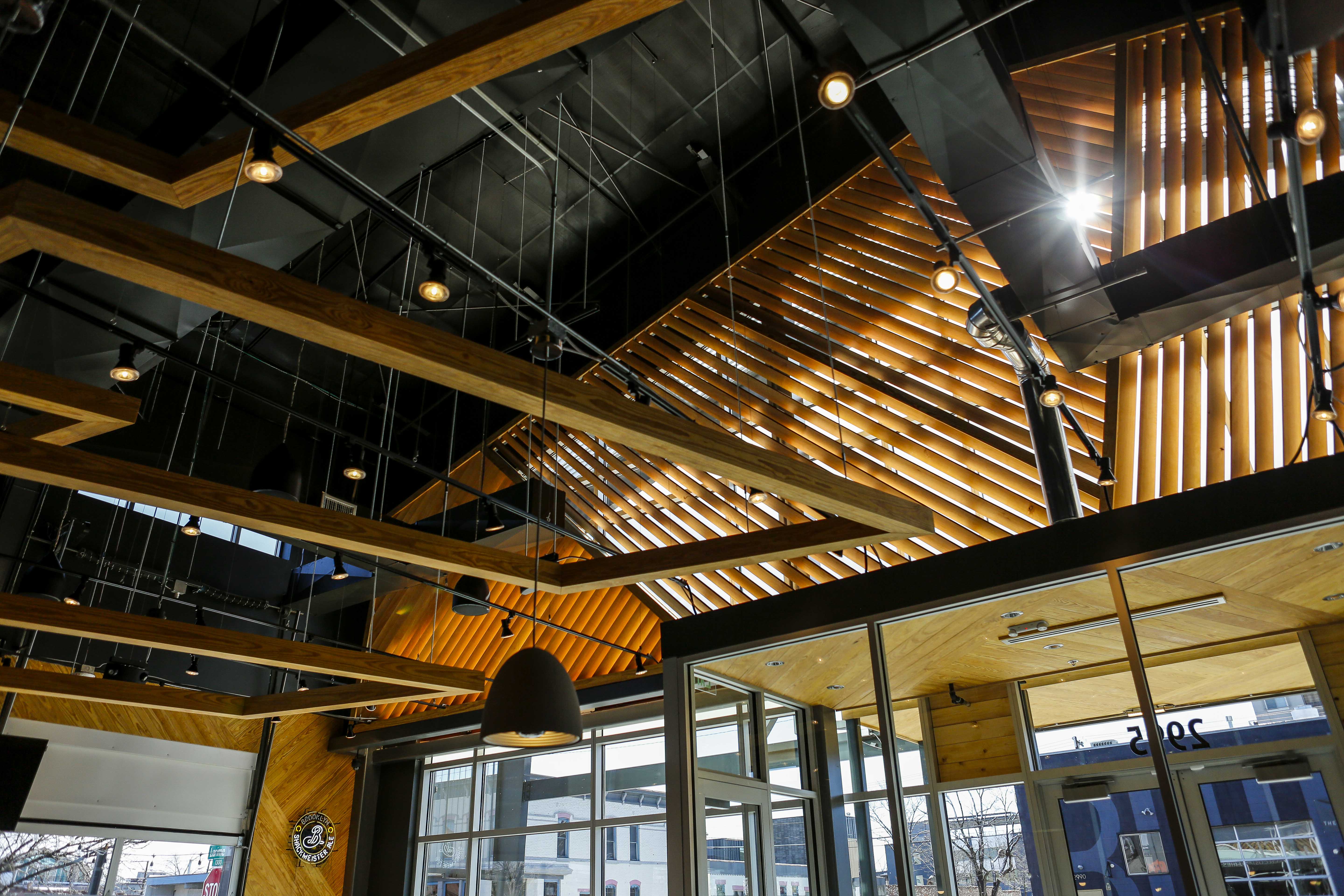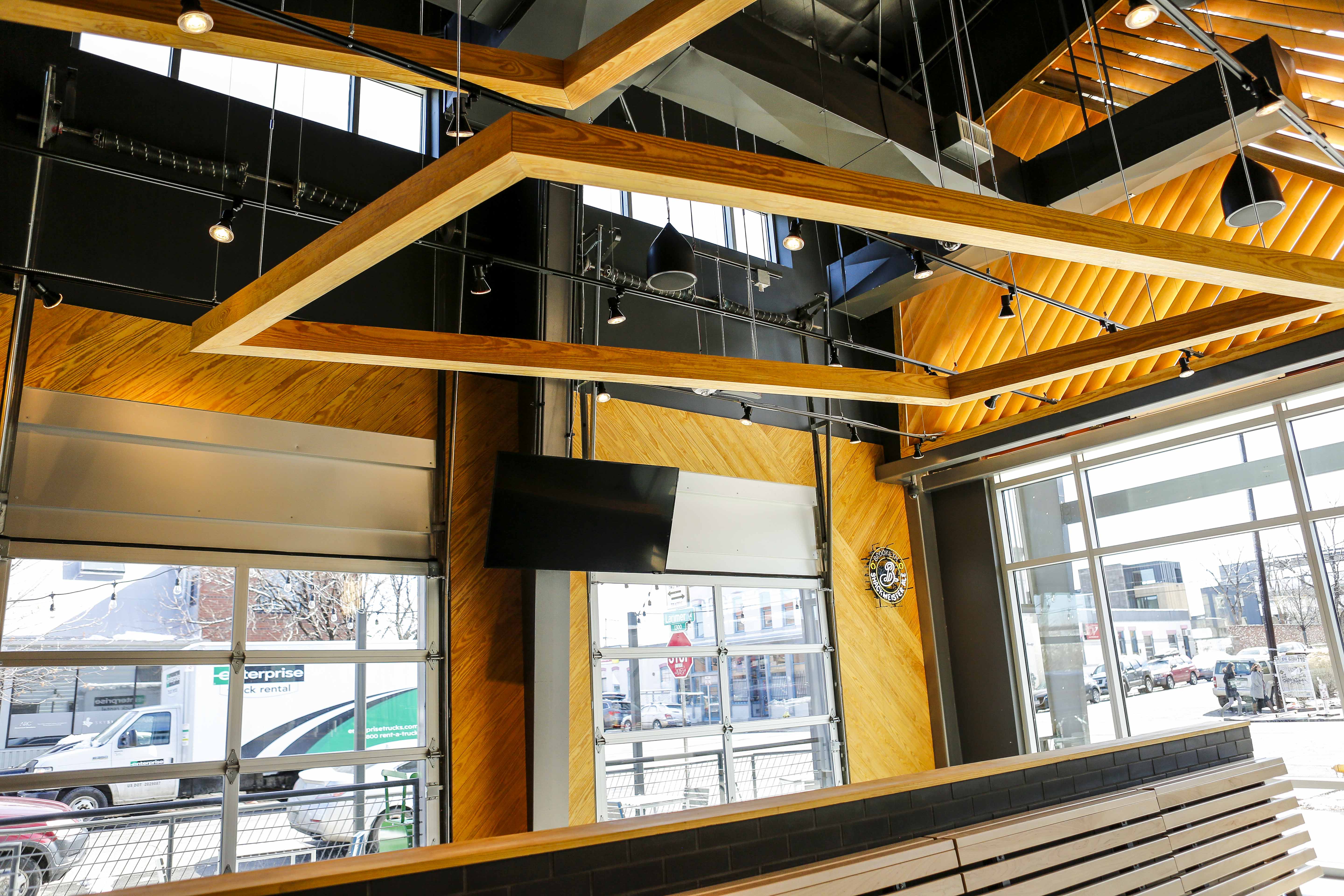 Like other locations, the wooden tabletops are made from reclaimed bowling alley lanes and the chairs are built with a mix of sustainable materials. Booths are made with lumber certified by the Forest Stewardship Council. At the front door, you turn to the left to come face to face with the floor-to-ceiling menu, and that’s where the fun begins.