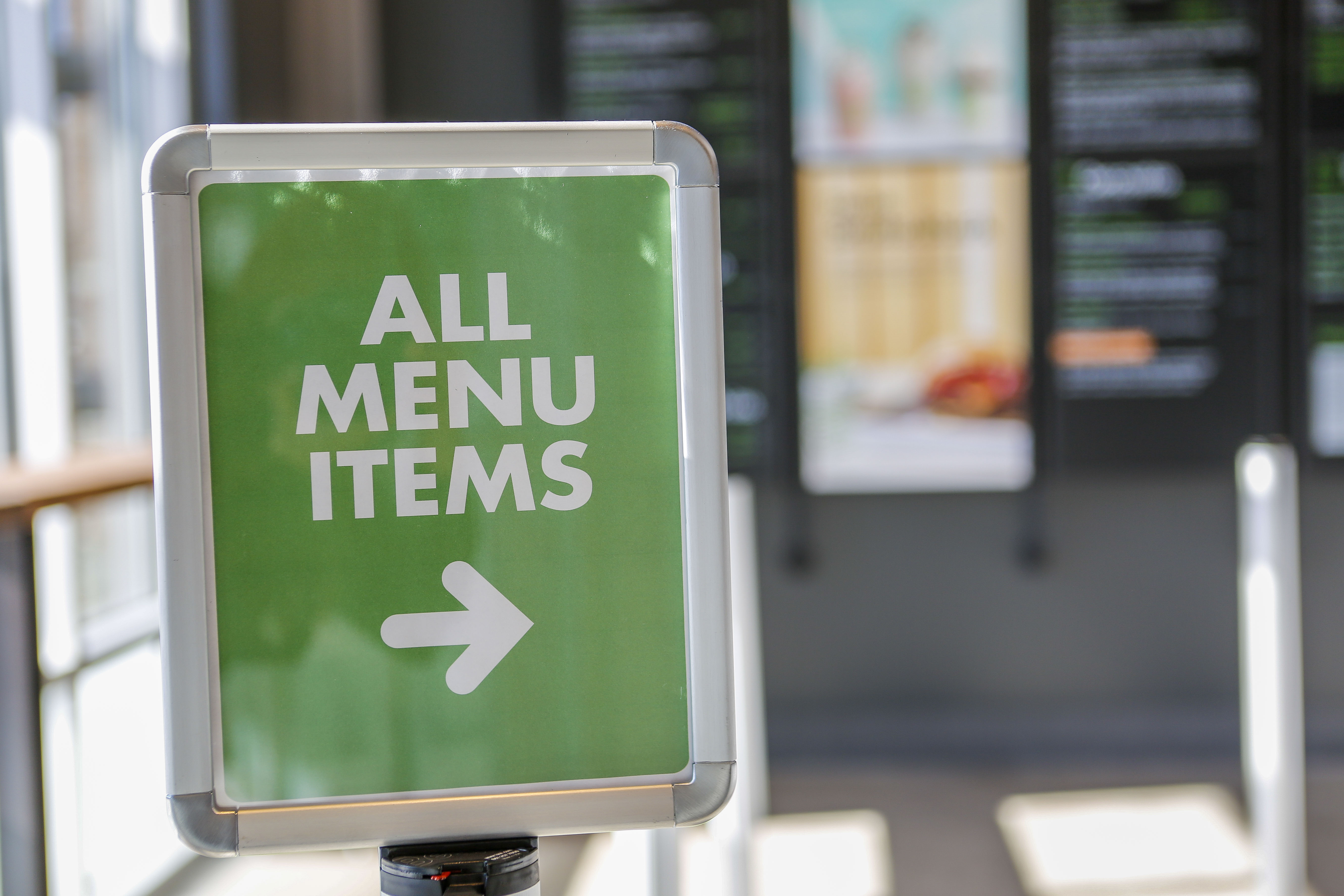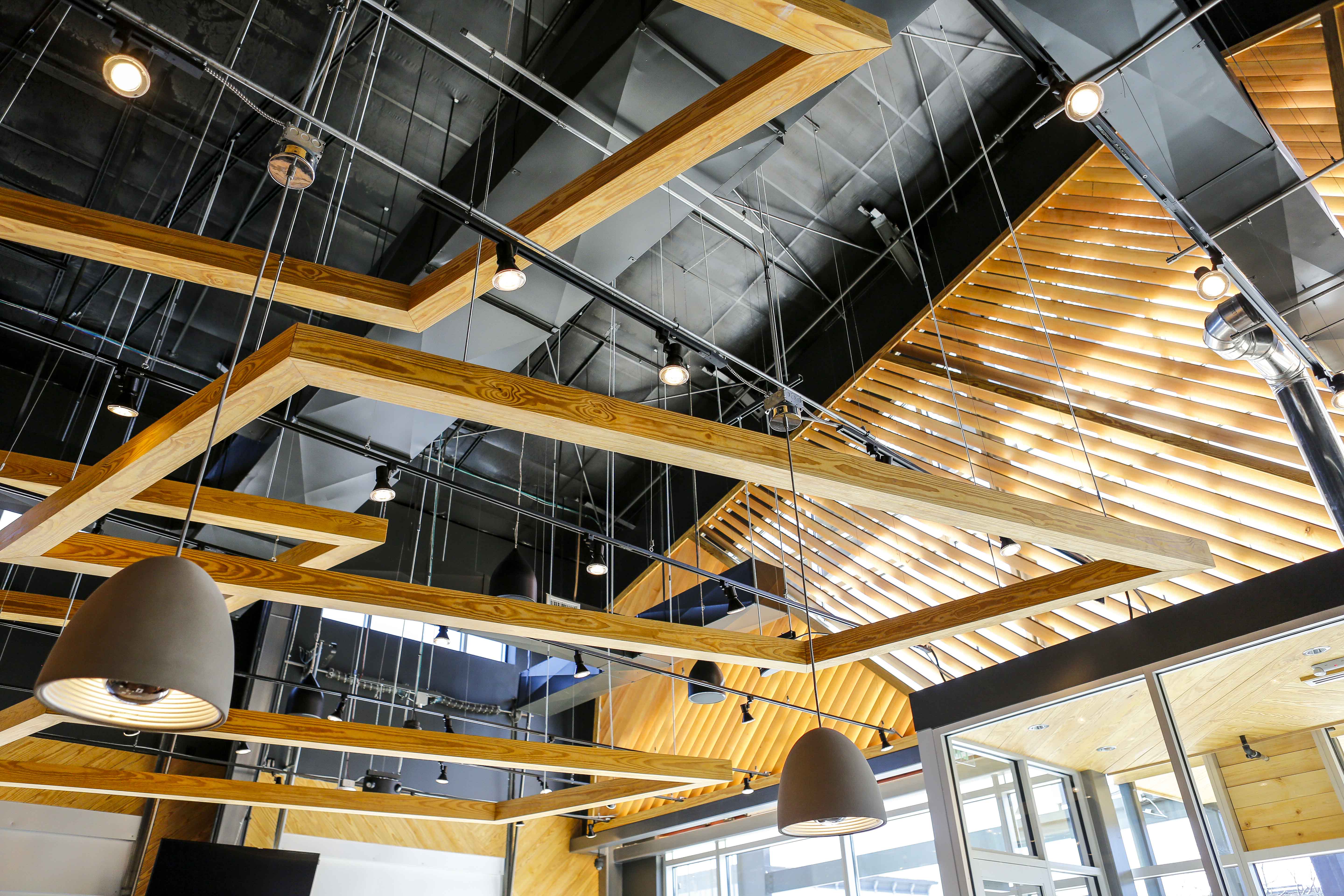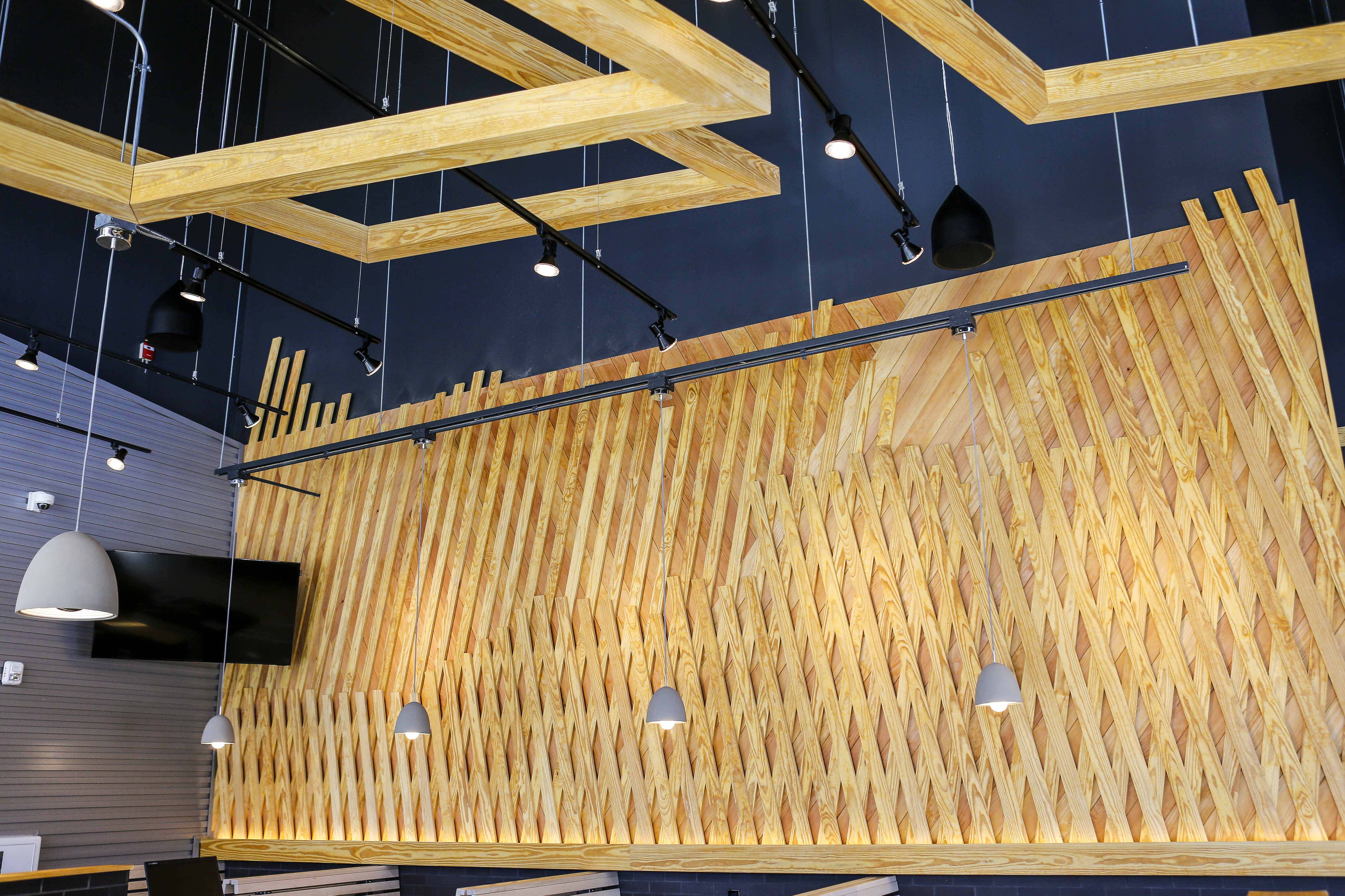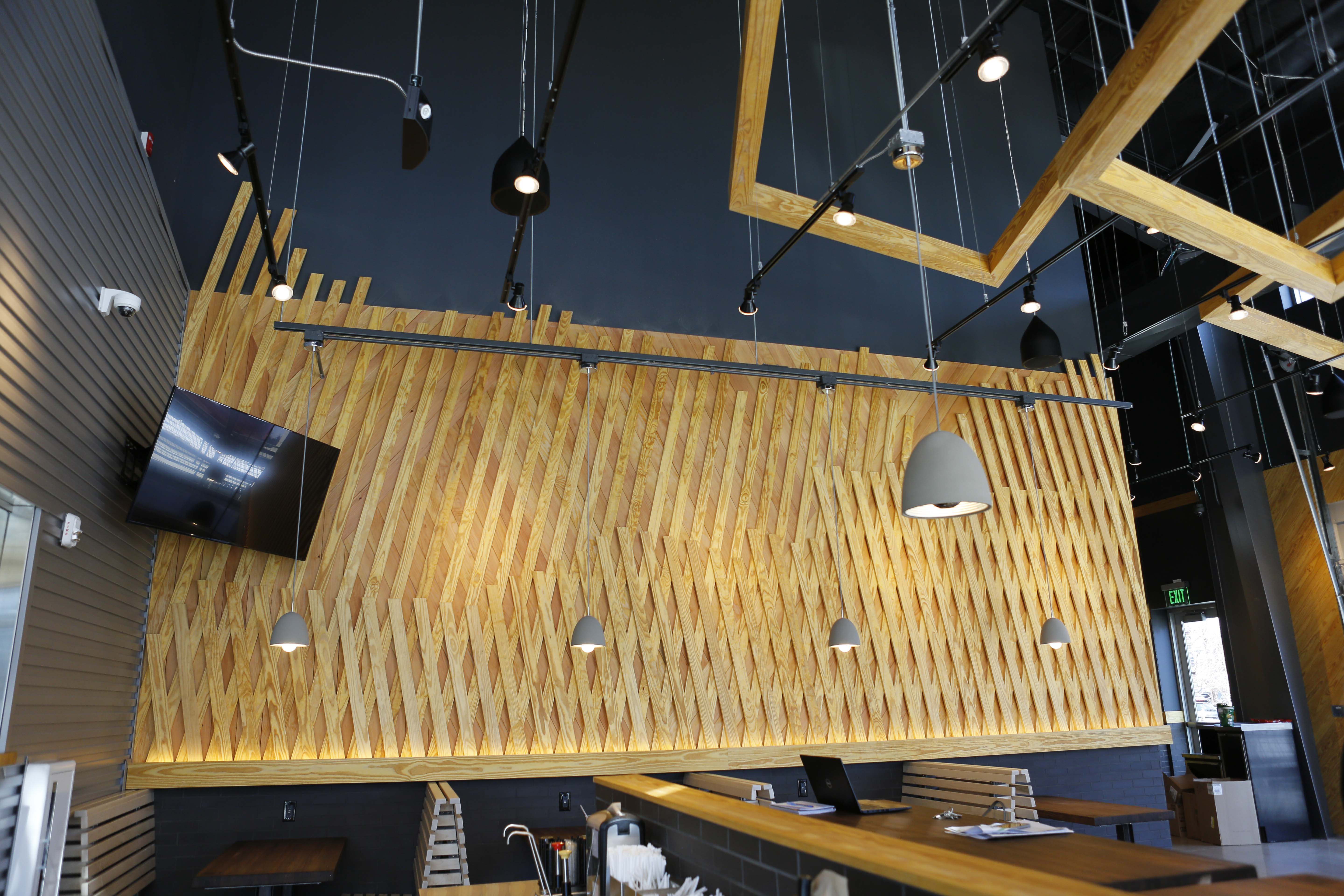 Like other locations, the wooden tabletops are made from reclaimed bowling alley lanes and the chairs are built with a mix of sustainable materials. Booths are made with lumber certified by the Forest Stewardship Council. At the front door, you turn to the left to come face to face with the floor-to-ceiling menu, and that’s where the fun begins.
