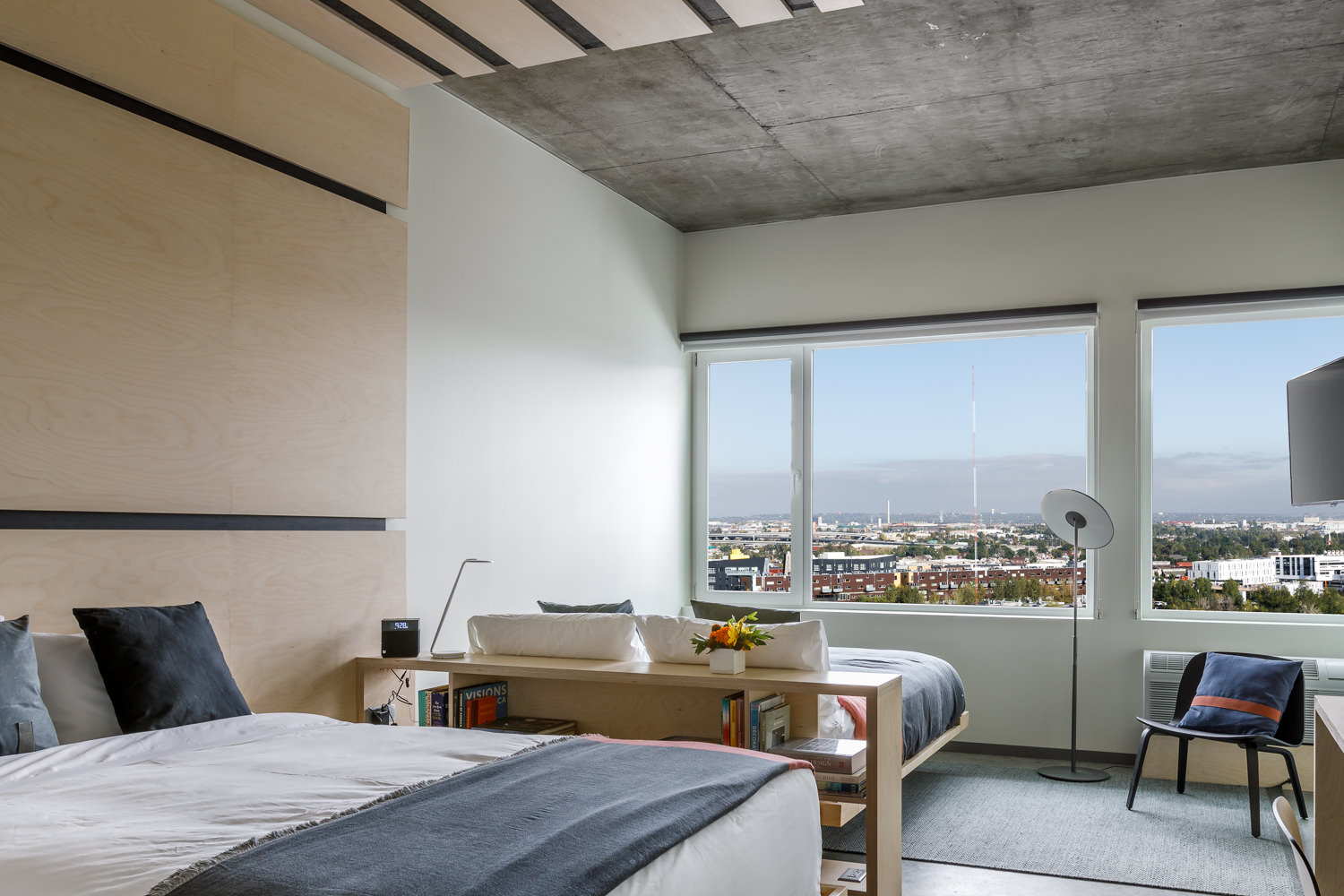 As many may know, The Source Marketplace occupies a historic 1880s warehouse. However, the hotel is a contemporary new build, designed by Stephen Dynia from Dynia Architects. To match the feel of its sister space and the low-rise vibes of the RiNo neighborhood, The Source Hotel’s eight stories were designed to be eight distinct, one-story buildings angled and stacked.