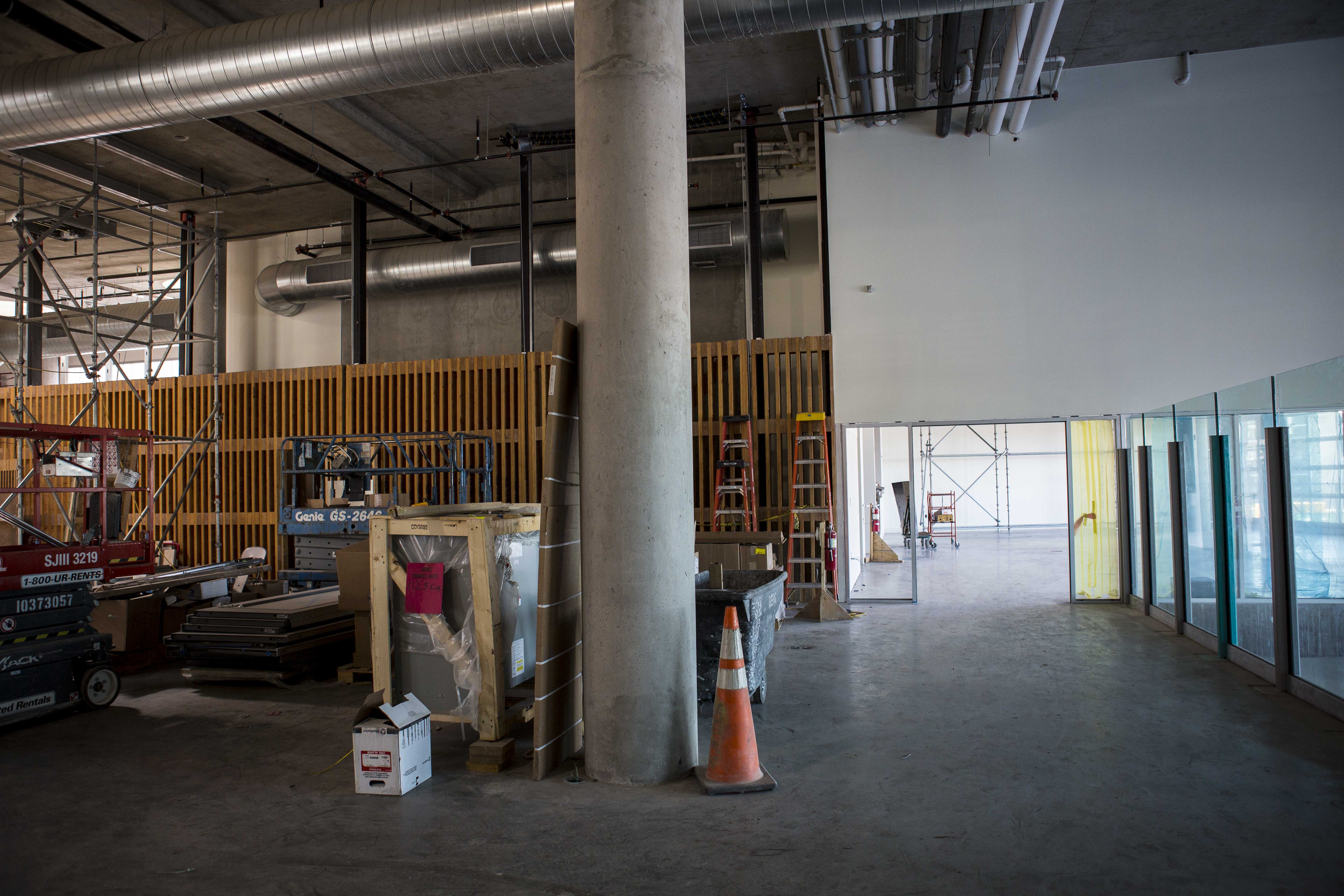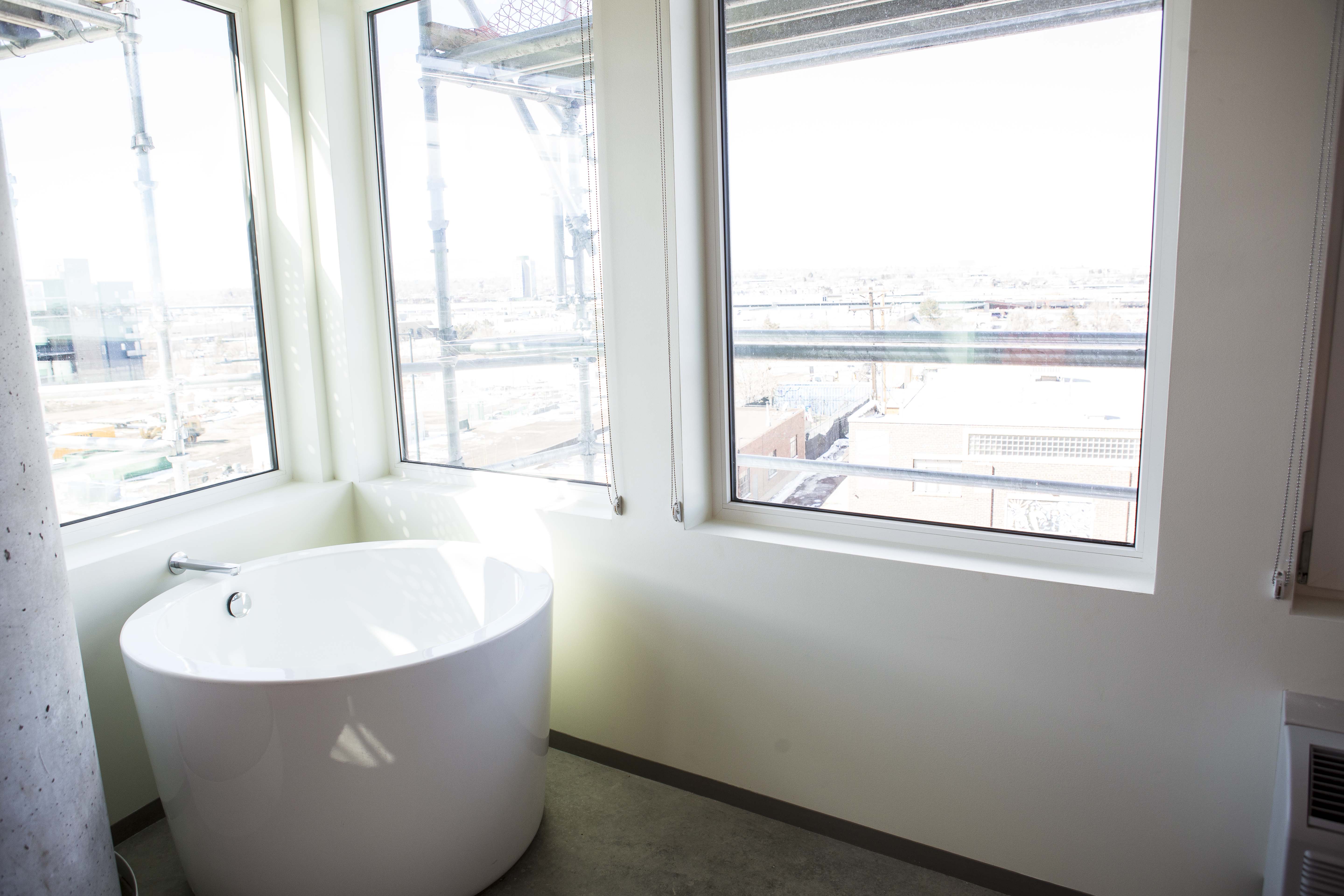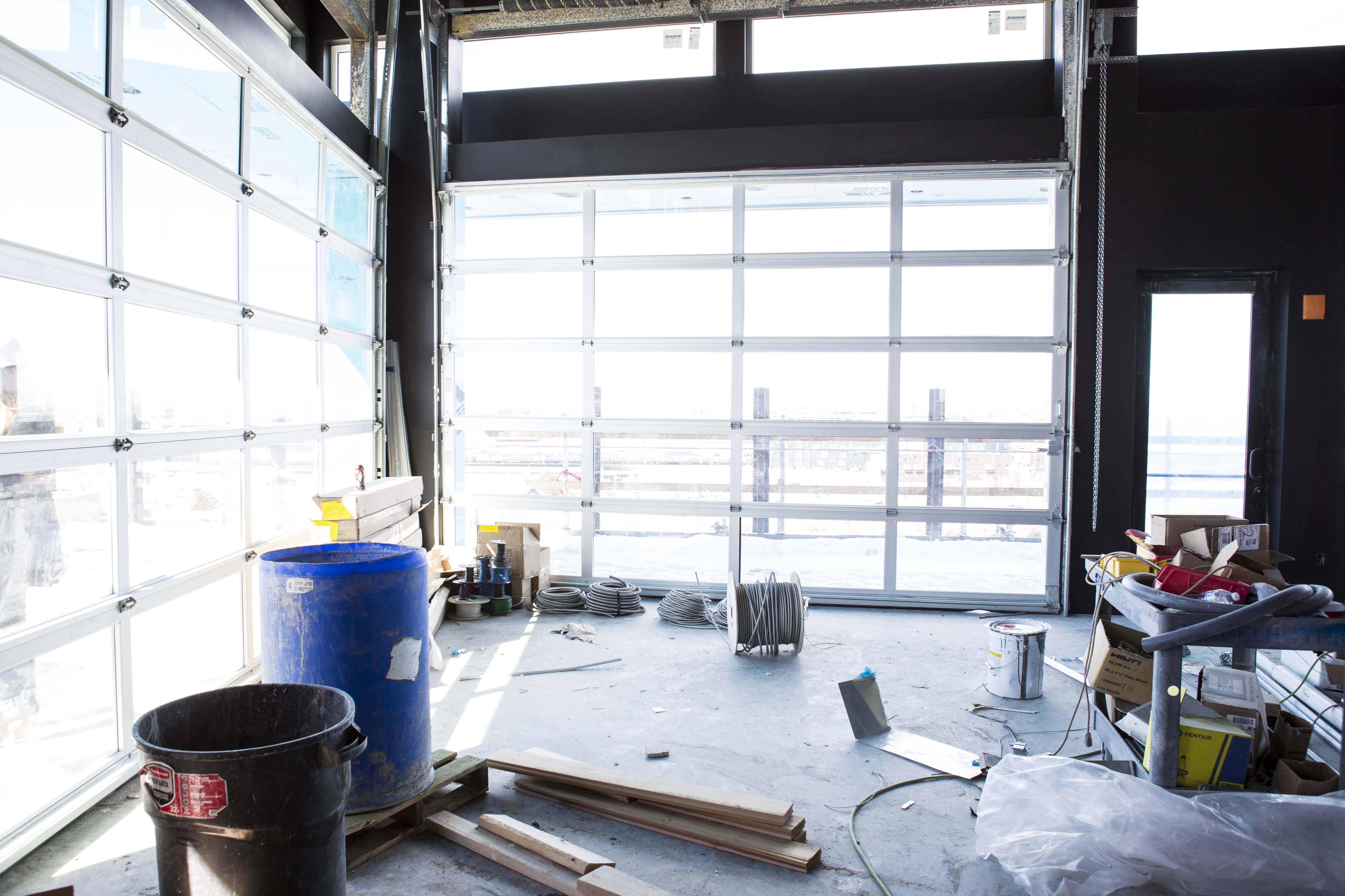 Construction is well on its way inside and outside of the hotel. As you can see from the photos, some of the signature features — like the garage doors and soaking tubs — are already in place. Bigger areas — like the lobby — are beginning to take shape, with an estimated 250 people working on the project daily.