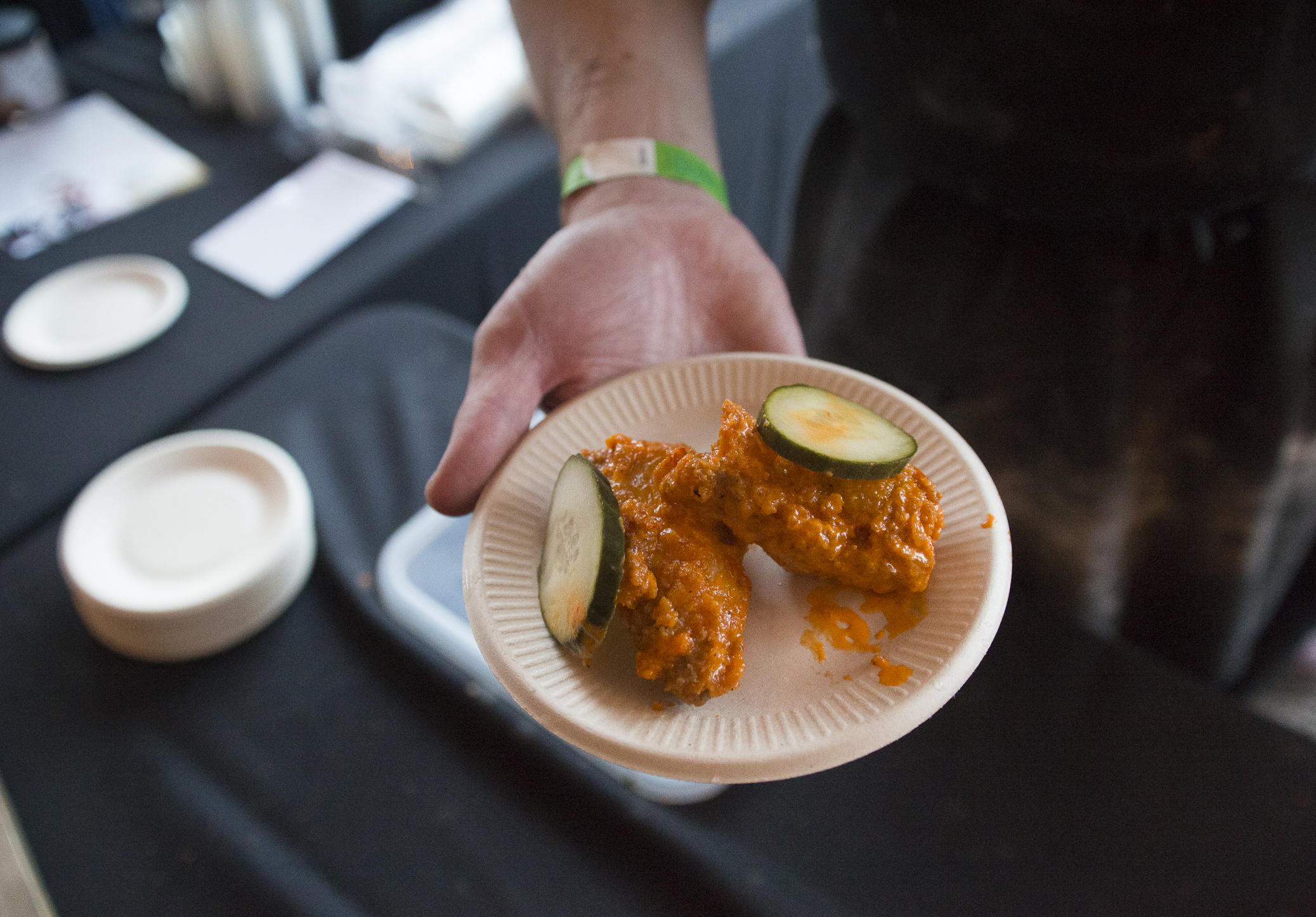 Tequila also made a mark at this year’s fried chicken celebration. Fire on the Mountain partnered with 1800 Tequila to bring a three-part submission: a smoked bone-in wing with a side of bourbon chipotle dipping sauce and a miniature waffle cone finished with Nashville chicken tenders and maple syrup. The cocktail to pair resembles an elevated sunrise and is dubbed Fizz on the Mountain — a mix of silver tequila, blood orange San Pellegrino and grenadine. Brider — an award-winning competitor last year — partnered with Milagro Tequila to pair a secret sauce, a rotisserie smoked wing and a spicy pineapple margarita. Lola and Codigo Tequila went for a battered fried chicken and agave mole paired with a straight shot of wine barrel aged reposado or añejo tequila.