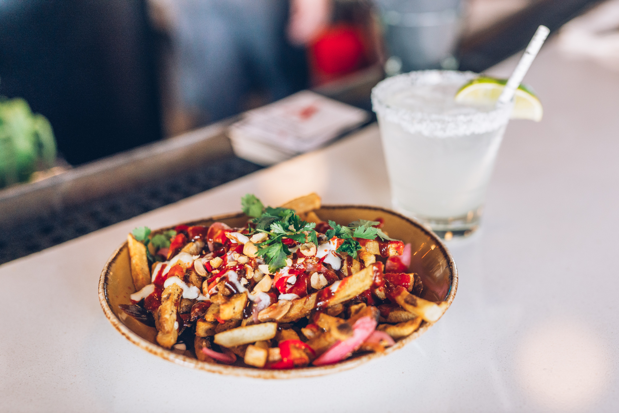 The Lowdown: The massive interior at Punch Bowl Social features a full bowling alley, a sizeable bar and plenty of additional games and activities. It also has an impressive happy hour featuring great drink specials and a solid selection of food. You can get classic cocktails for $6, house wine and well drinks for $5, and “old man cans” — including PBR, Budweiser, Coors and Rolling Rock — for $2.50. Food-wise, the sriracha peanut fries ($7) — with hoisin, sriracha, garlic mayo, pickled chilies and crushed peanuts — is not to be missed.