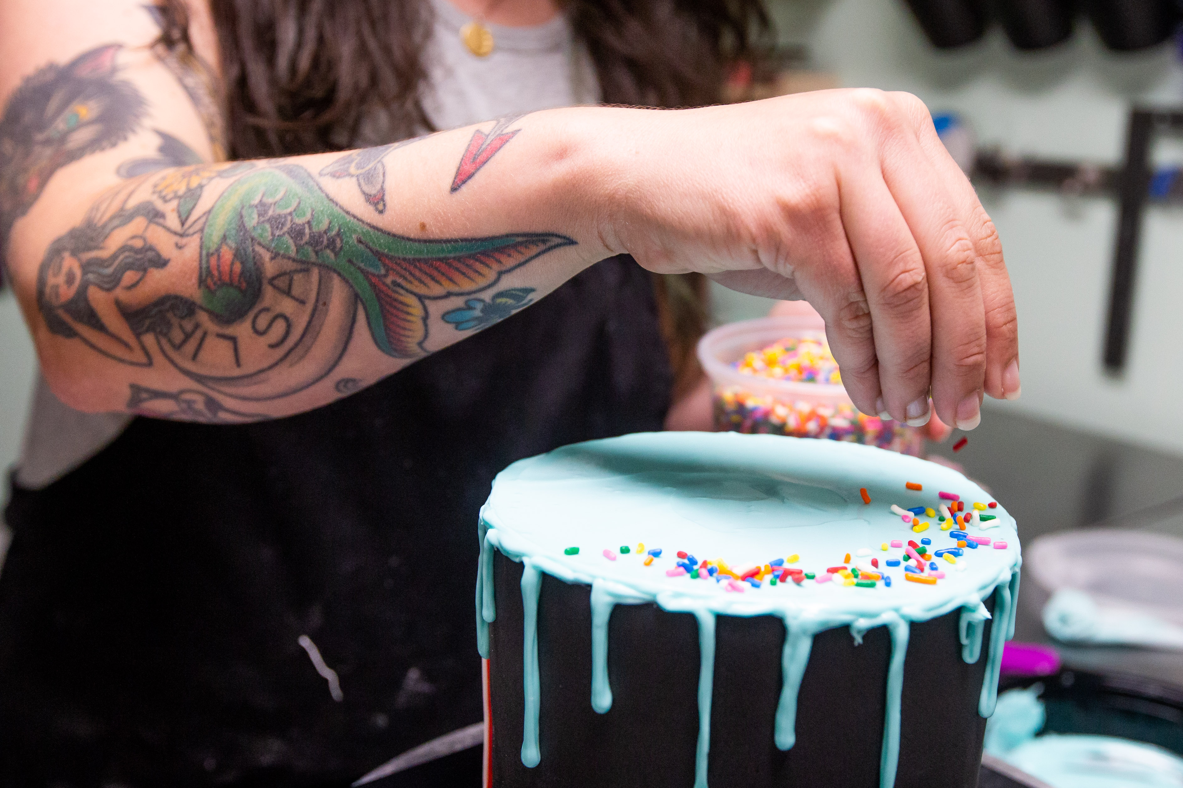 SS: We made a life-size man for a fetish ball. Naked, bound and gagged — it was the size of this table. It was huge. Any of the erotic cake orders really — people come in and it’s either they’re really gross when they ask you or they’re so embarrassed and you’re like, “just tell me… you can say the word penis in front of me.” And some people are like, “let me send you a picture of me.” And I’m like, please don’t.