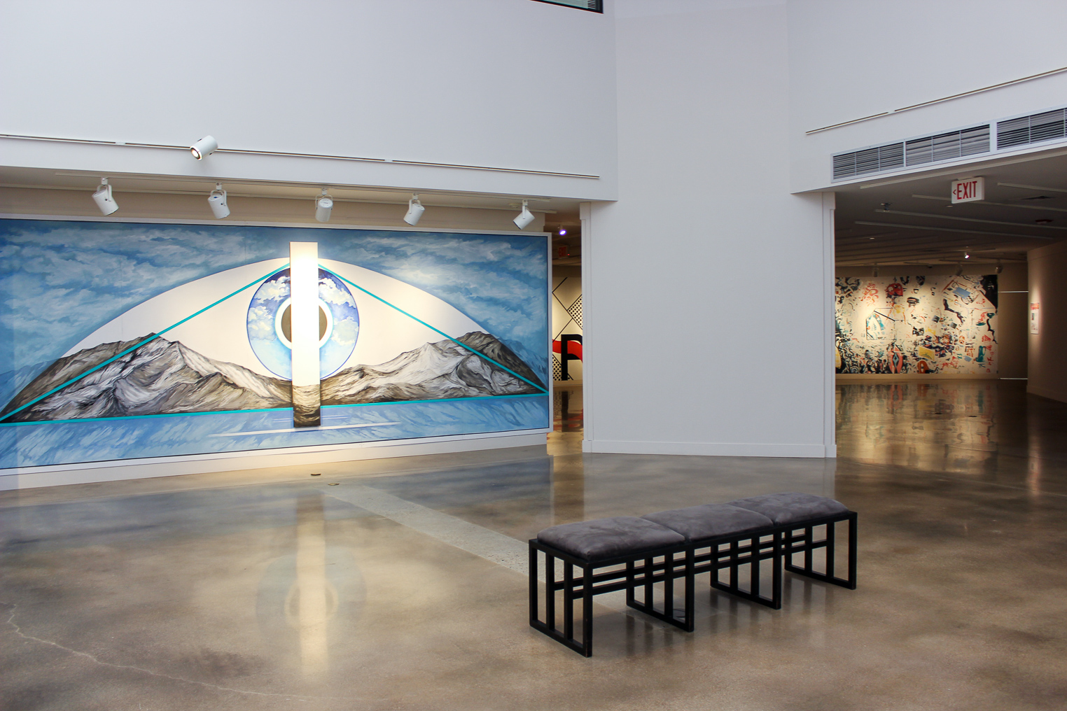 The last two artists in the Main Gallery are Charles Parson and Jessica Forrestal. Parson is, in fact, related to the curator Collin Parson (it’s his father) — but the reason he’s included is that Collin’s inspiration for the show came from him and the story of a mural very similar to the one Charles displayed in this show. Spread over several panels, Charles painted a grayscale mountain range with a disembodied eye in the middle. which gives his mural the appearance of a stylized dollar bill, though any good Coloradan will surely find a way to relate to this one in other ways, too.