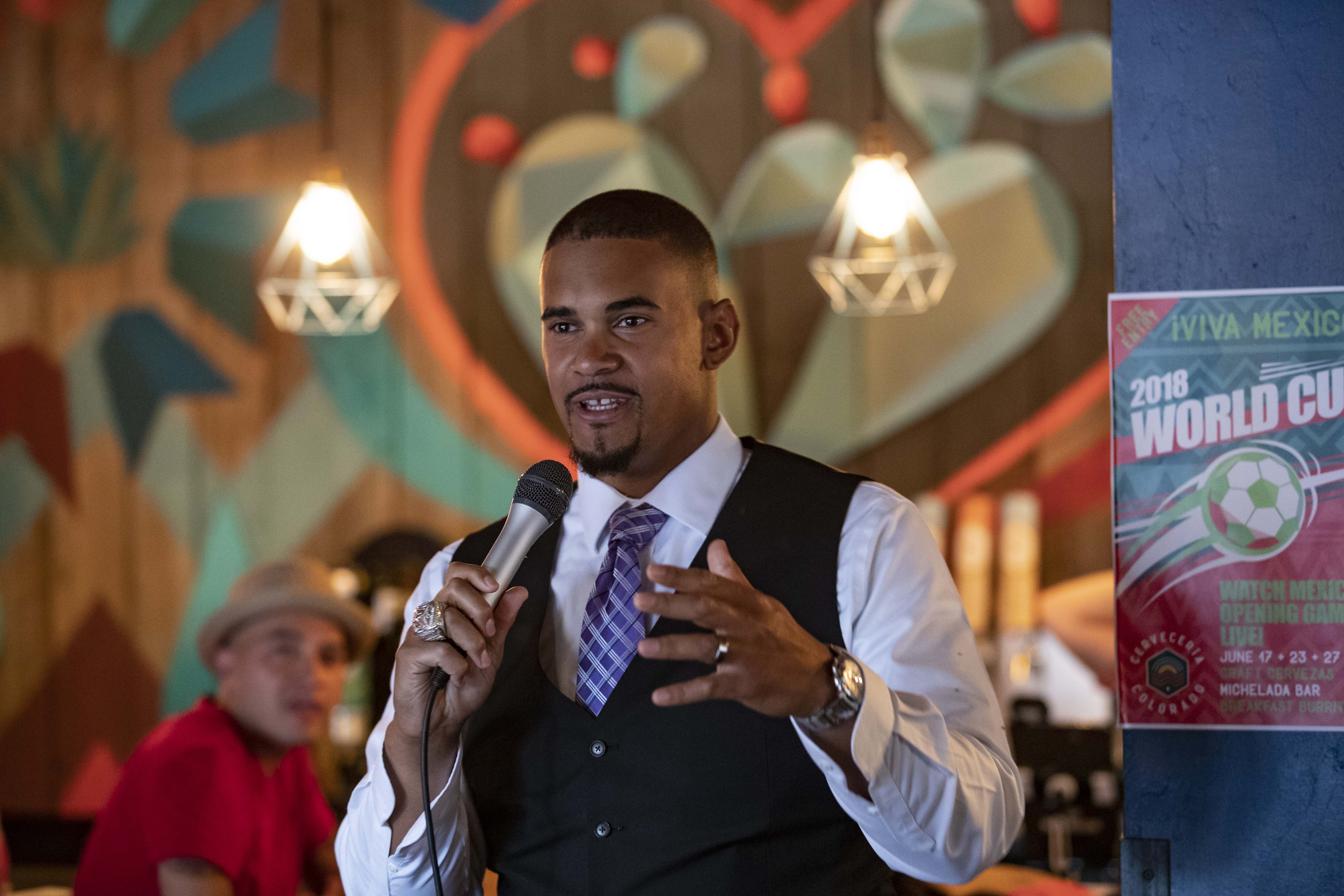 Chips with fiery housemade salsa were followed by a moving narrative by Harris, in which he discussed his experience working on the border and how it shaped his current work in advocacy. He went on to discuss immigrant exploitation, widespread indentured servitude and the deeply impoverished conditions of immigrants both legal and illegal. “What’s human? What would I do? What can I do?” closed Harris. Seth gave an impassioned speech about the success of his apprenticeship program as people gorged themselves on tacos. His commitment to ensuring that students have the opportunity to get into college regardless of legal status —  something he assured the audience he had arranged in-part with the University of Colorado Denver — was truly admirable.
