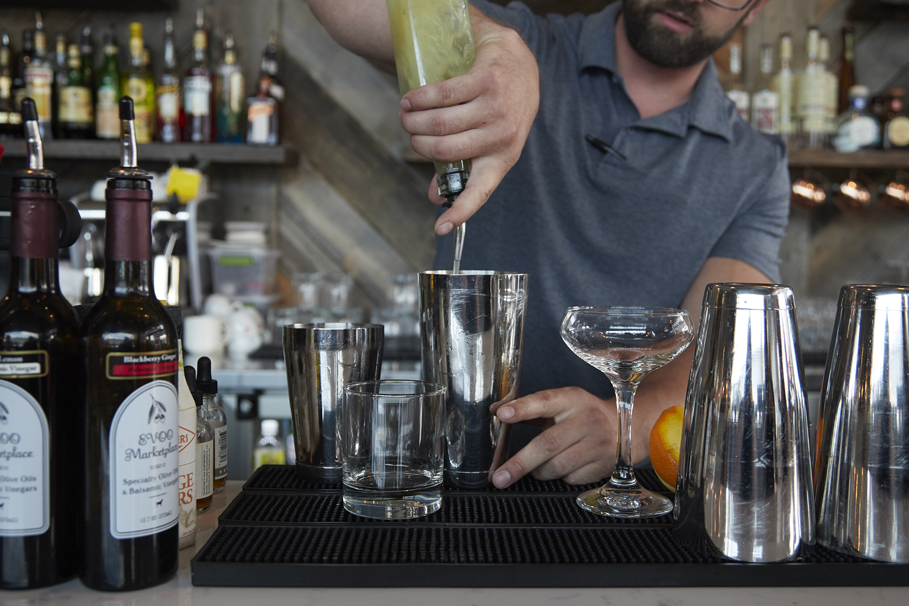 And that’s exactly what he did. From farm fresh cheeses to Front Range steaks and locally baked ciabatta, Viàle and chef Pusateri have only continued to elevate since opening. Their menu is a testament to that. With dishes like Mussels Classico ($13) with locally sourced Italian sausage, white wine and shallots to shrimp scampi ($18) with lemon and their new summer pizza ($15) topped with locally grown tomatoes and a balsamic reduction — the team is keeping quality approachable. And that approachable quality extends past the kitchen. Viàle isn’t on any list for the cities best bars and you certainly won’t see them while flipping through the Denver Passport, but this small space is shaking up some cocktails worth noticing.